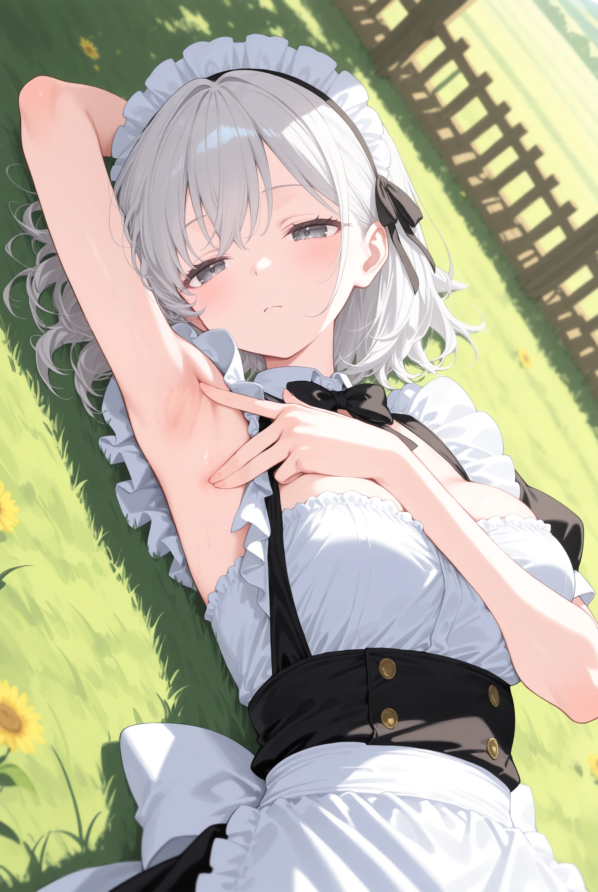 While this pose has been studied from the start, the widespread adoption of the concept commonly known as “armpit ?????” has led some artists to depict it with shapes and colors suggesting female ????????? exist under the armpit. I felt the Illustrious style strongly learned this interpretation, so I've changed it to a relatively smooth finish. Additionally, the pose was originally meant to be spread open with fingers, but images often ended up showing just a peace sign in front of the armpit. I've corrected this to make it look like the fingers are buried and spreading it open.