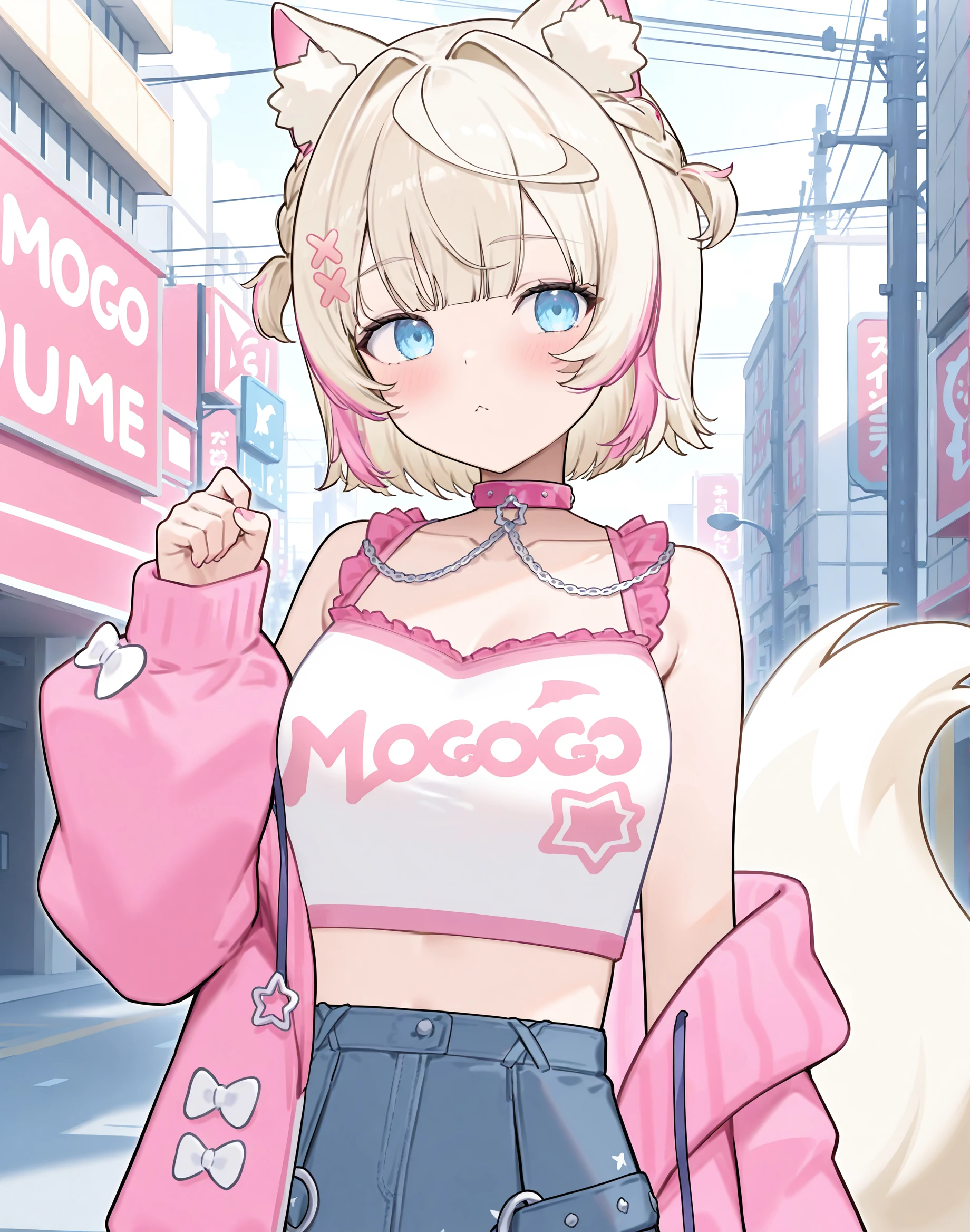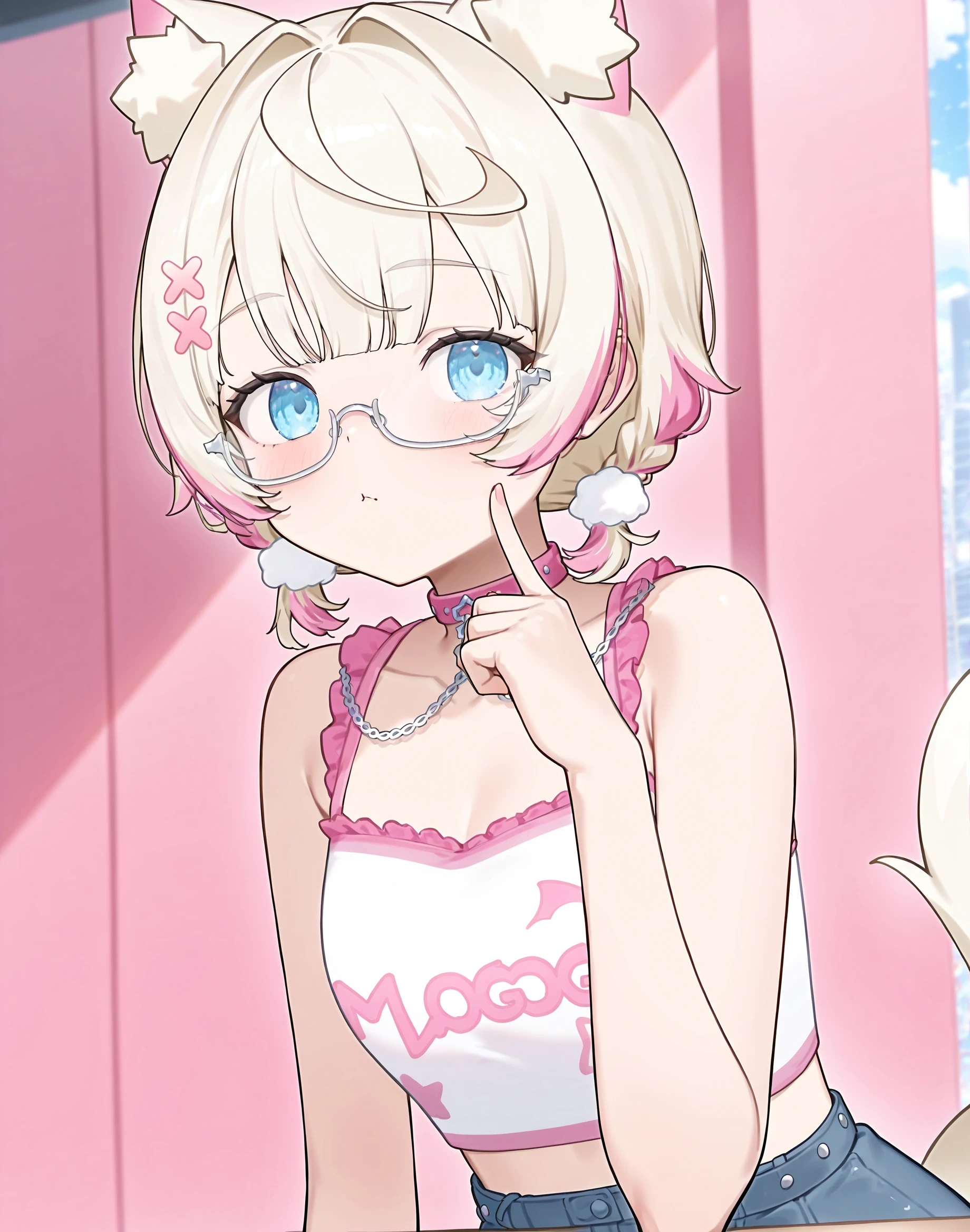 mococasual, low twintails, jacket, glasses,