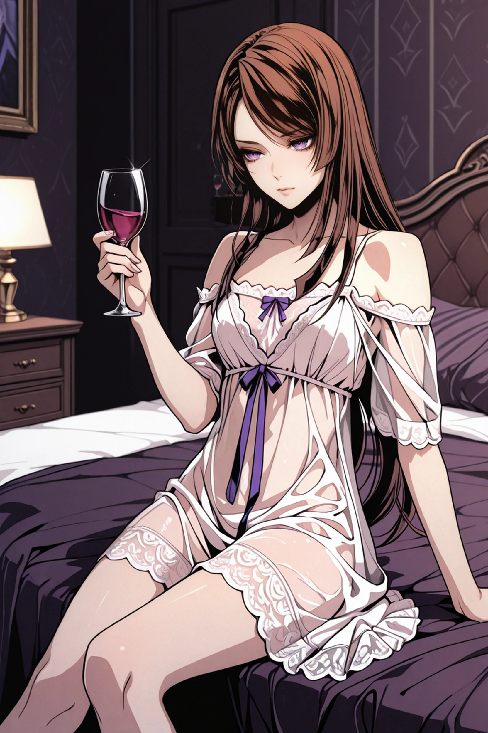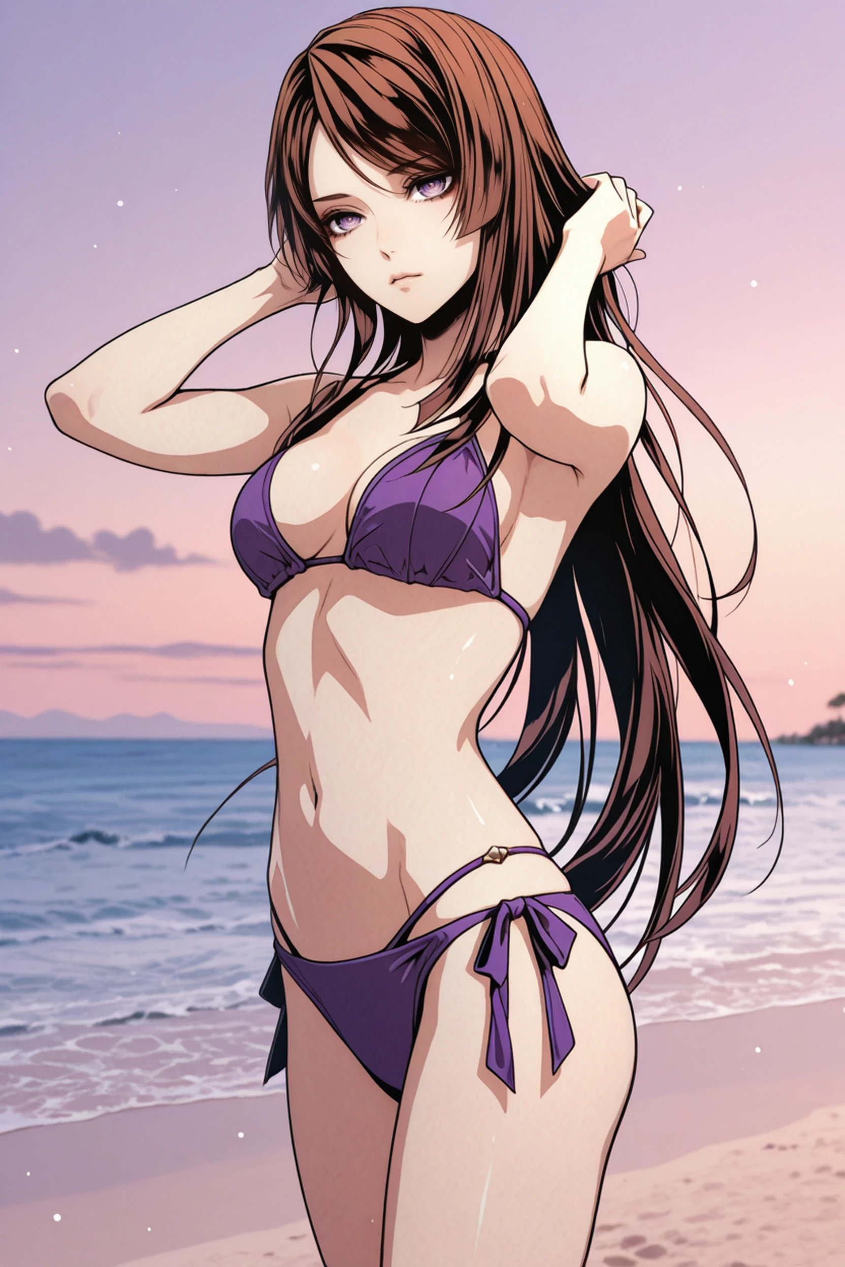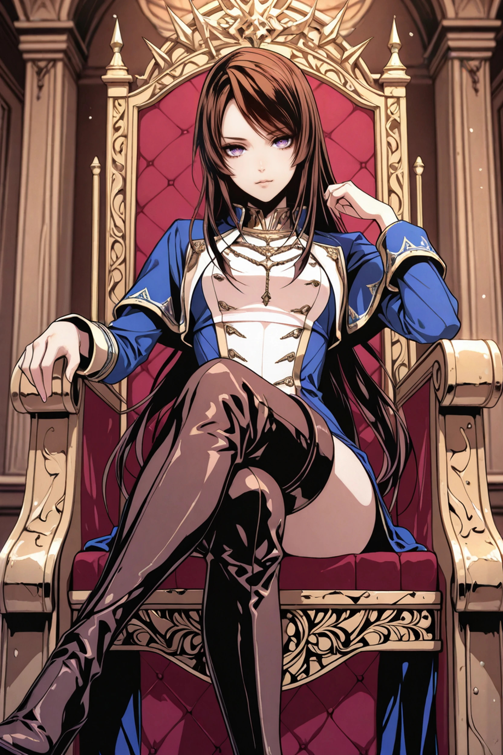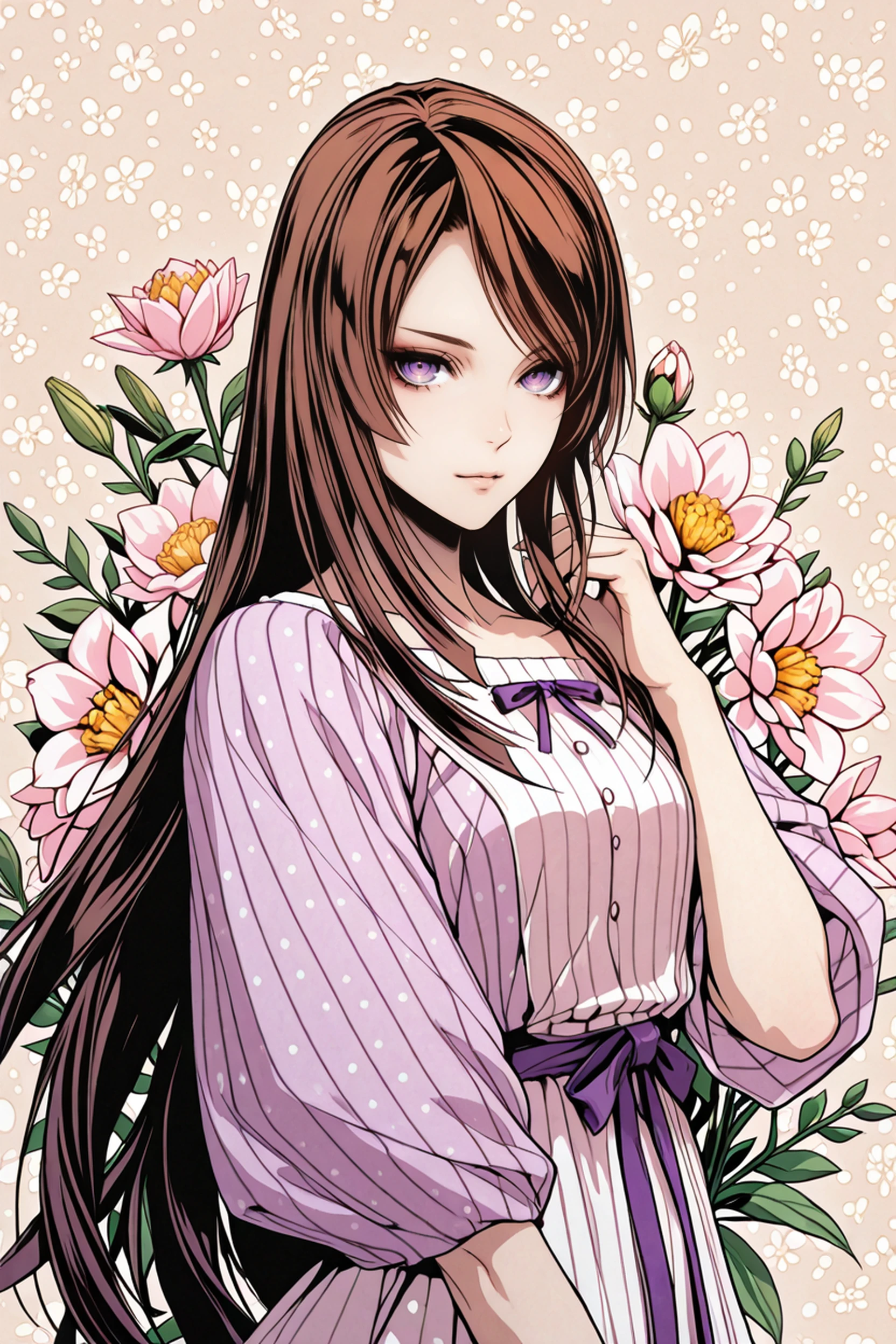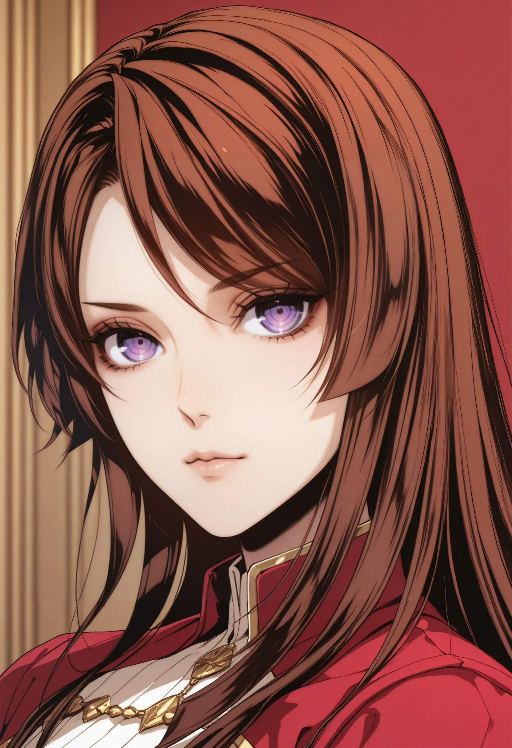 VBHibari, 1girl, purple eyes, brown hair, long hair