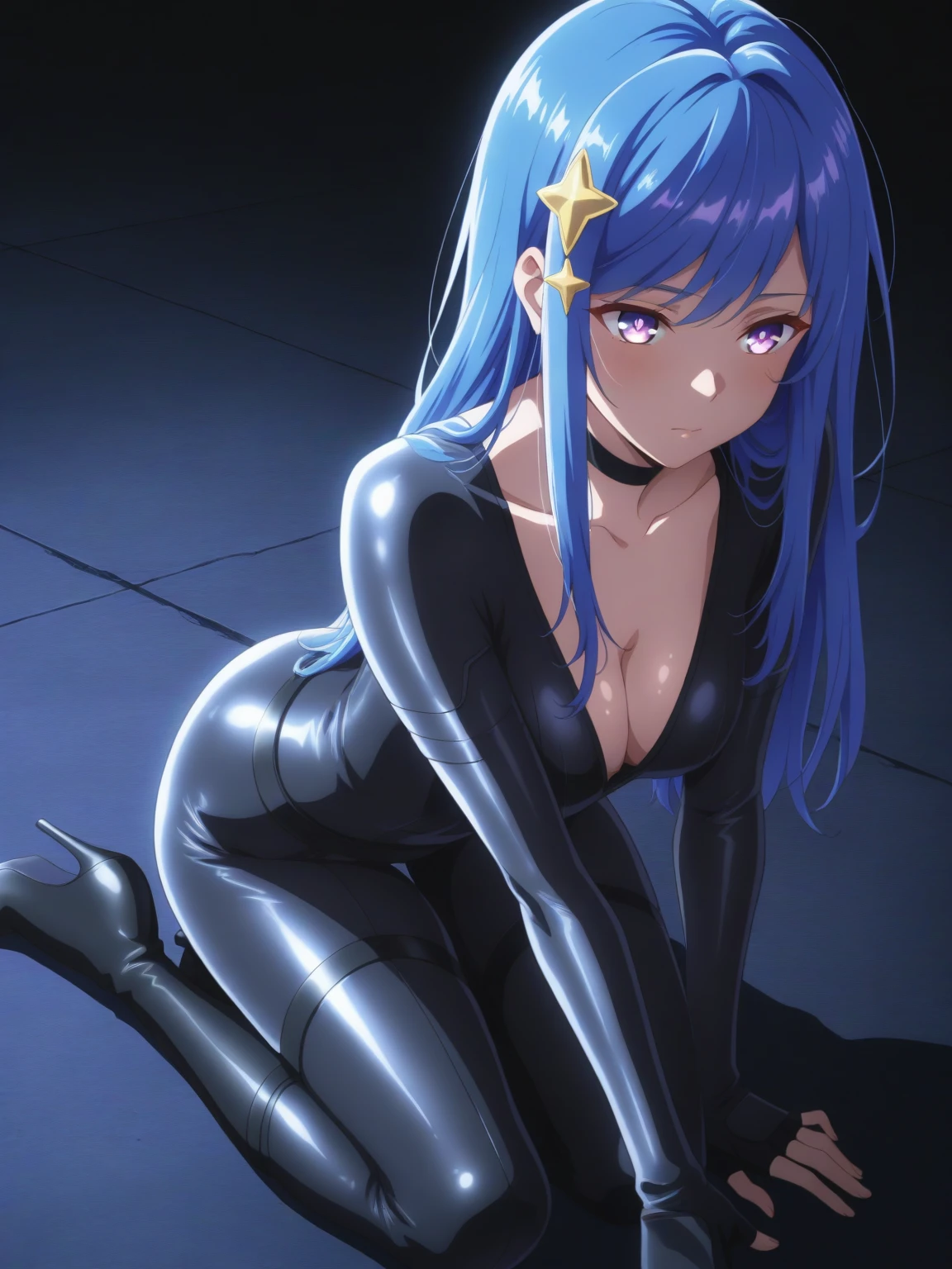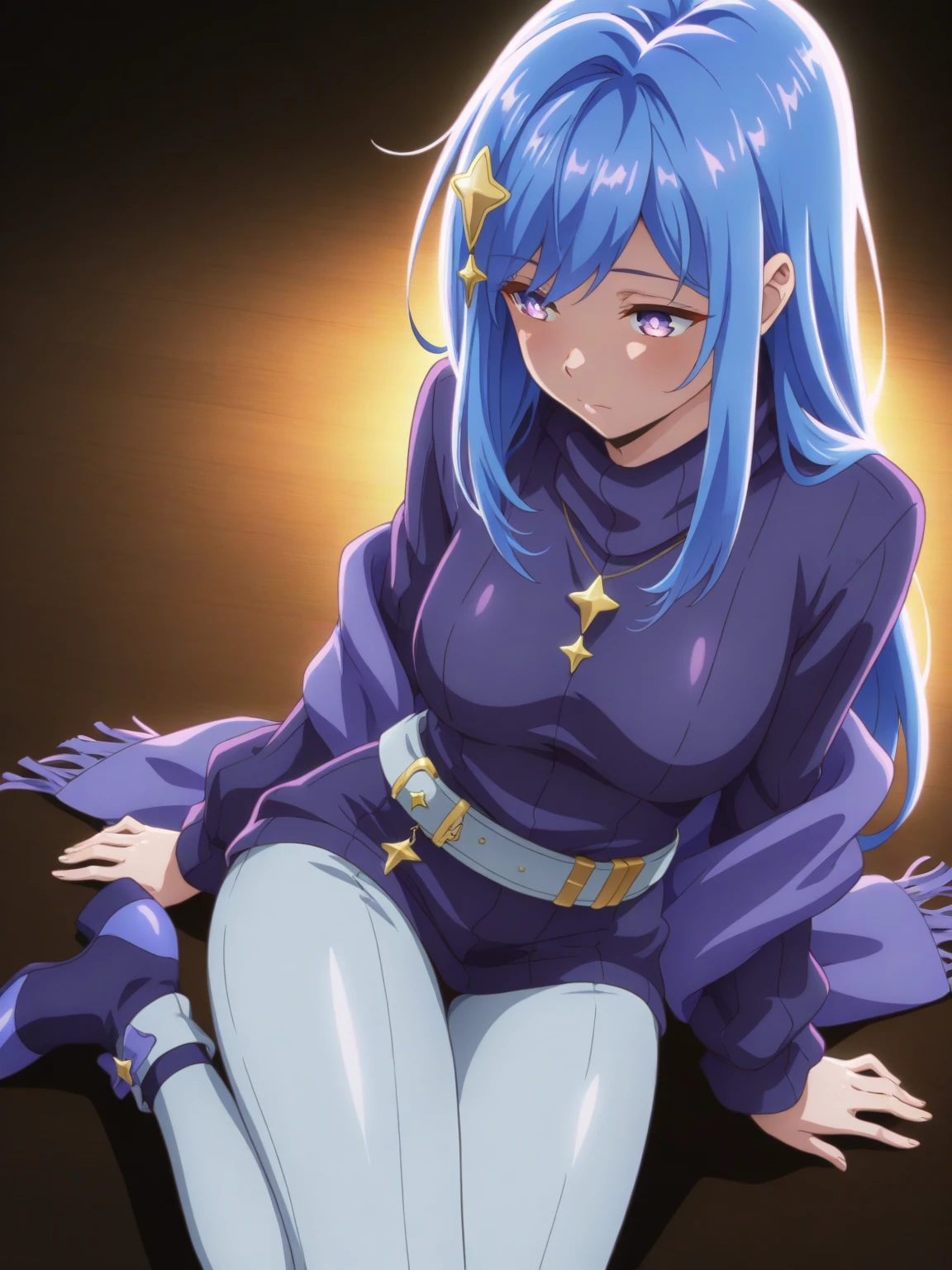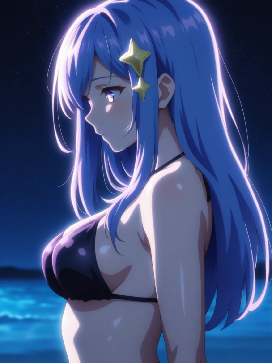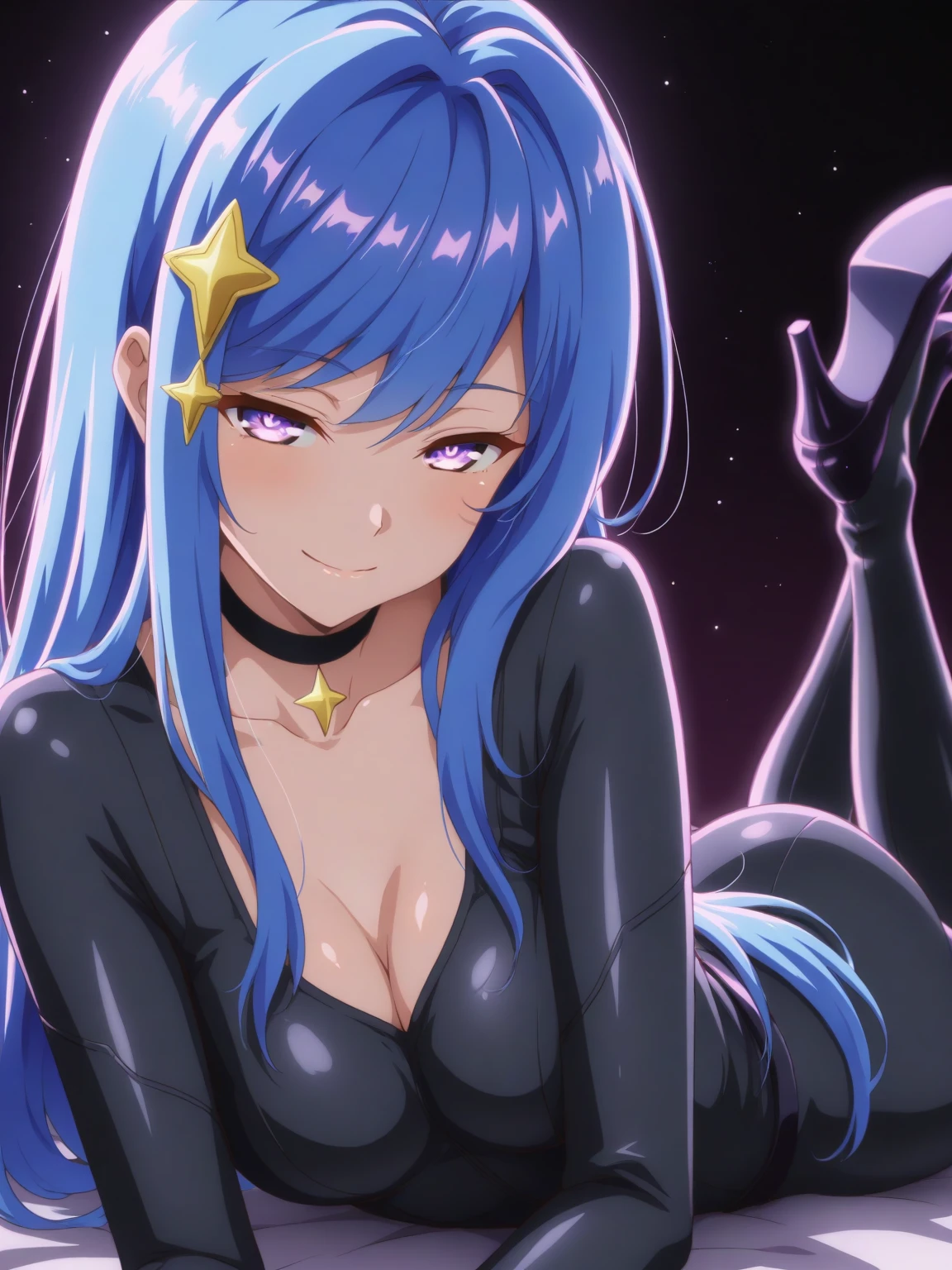 Character: (MahaTuathaDe, purple eyes, blue hair, long hair, star hair ornament)