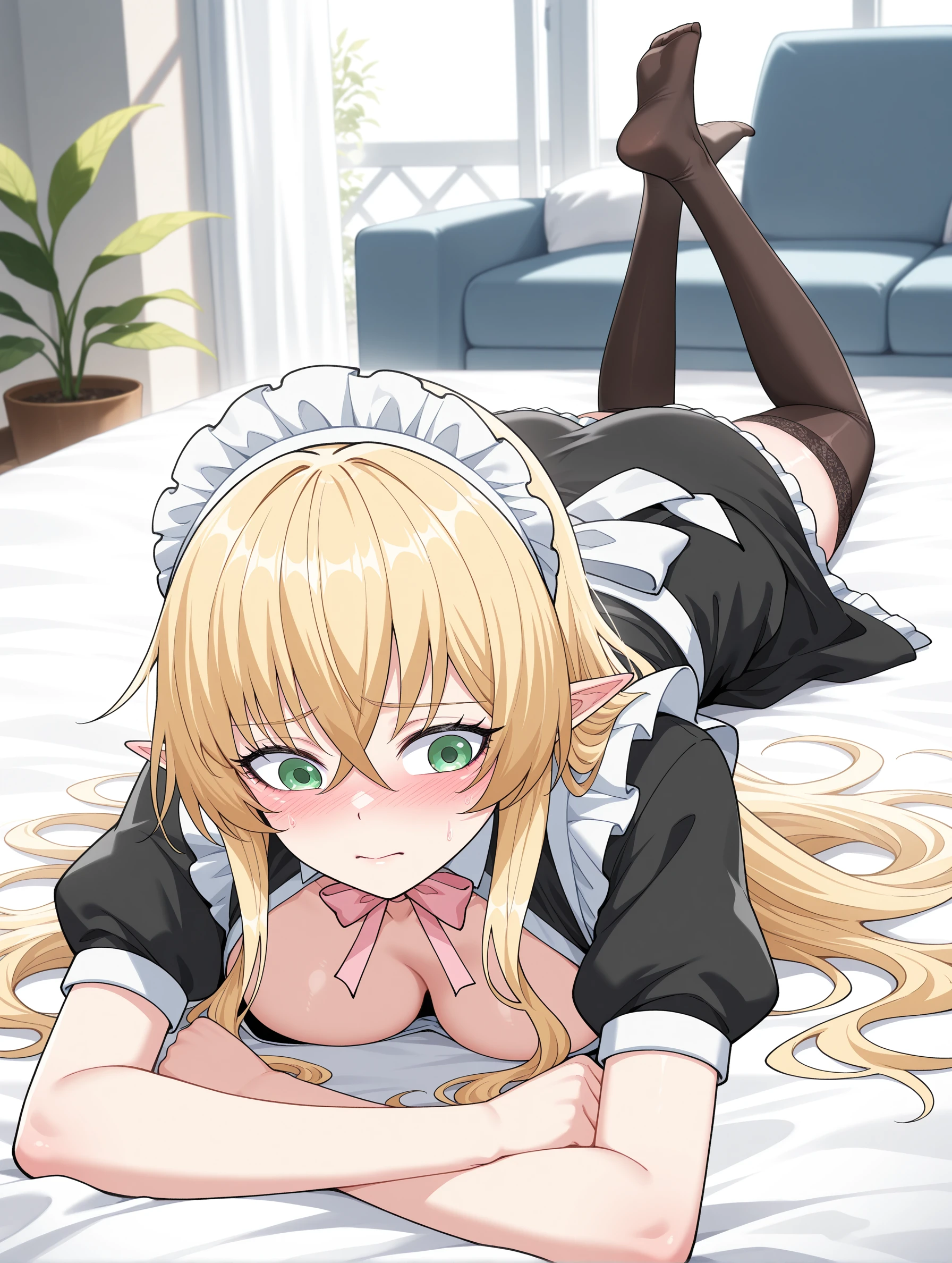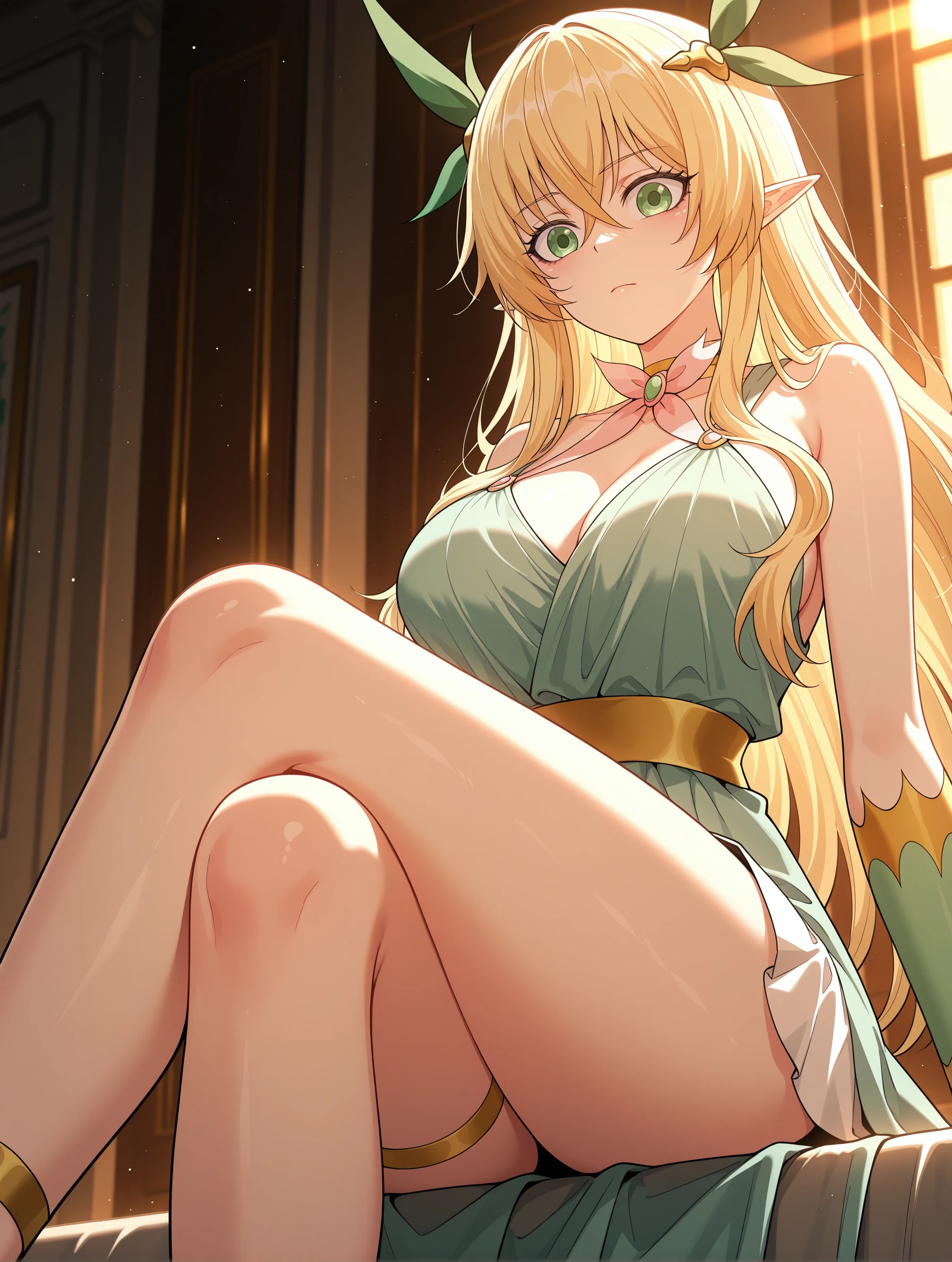 god_elf,pointy ears,green eyes,blonde hair,long hair,