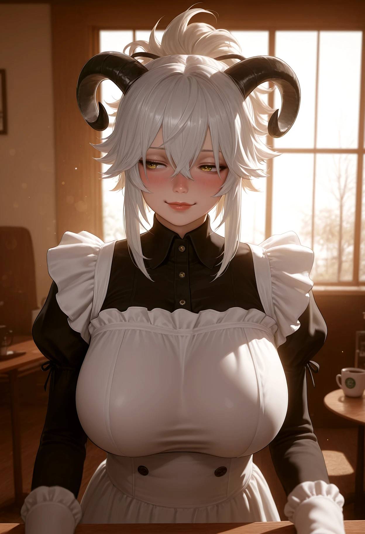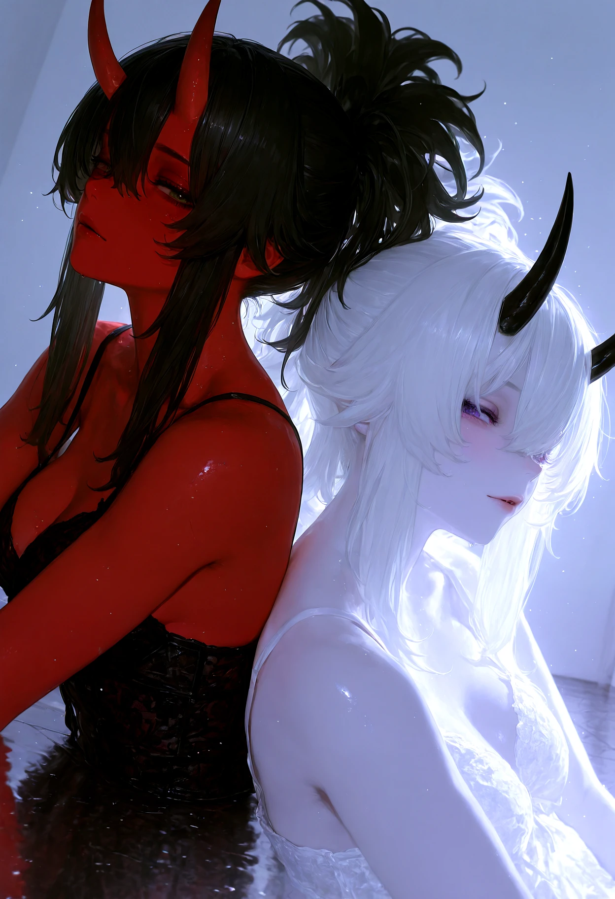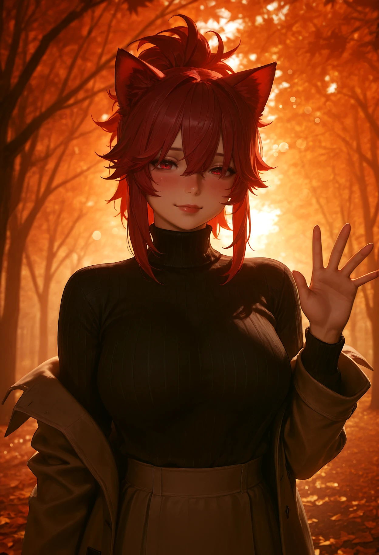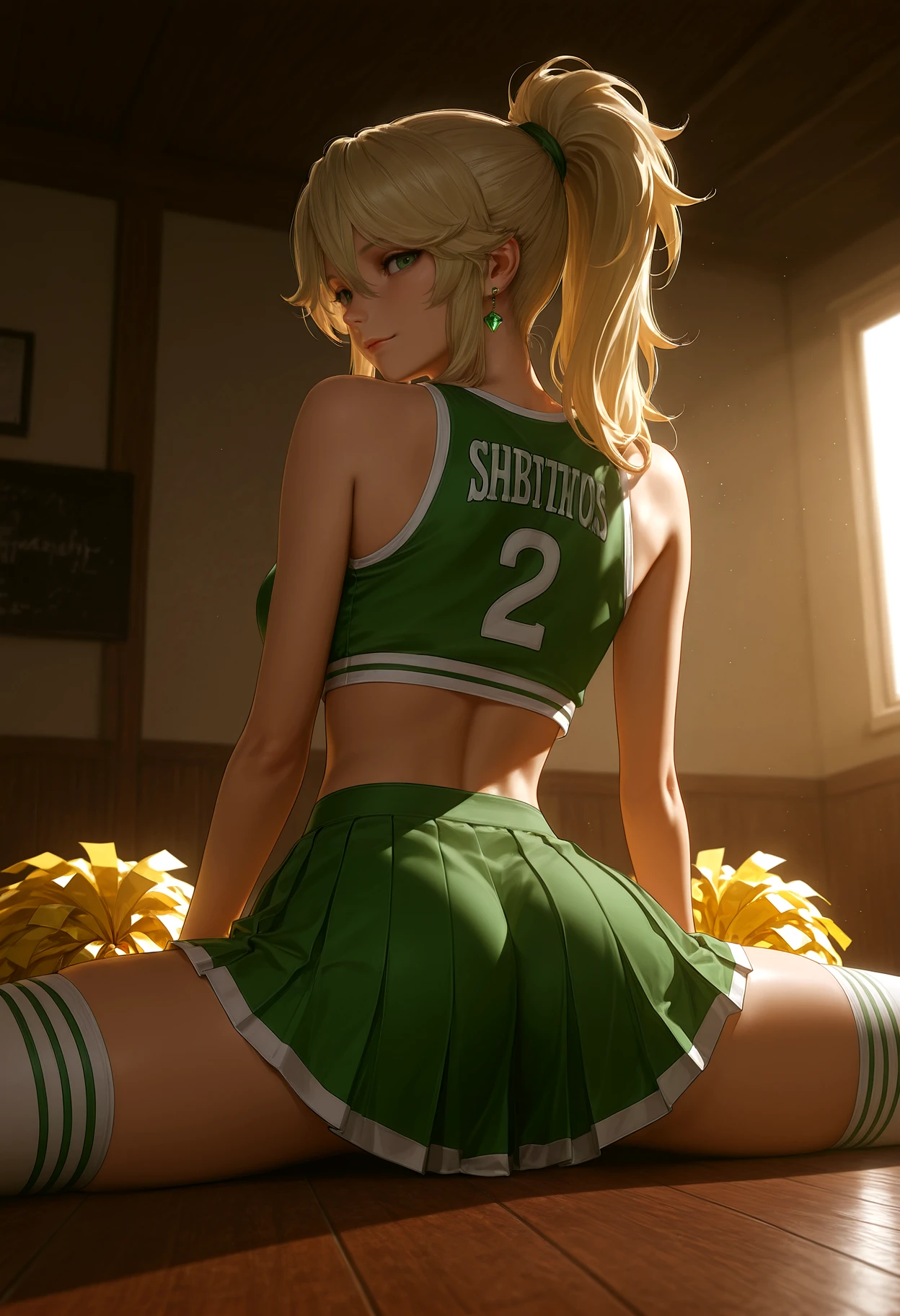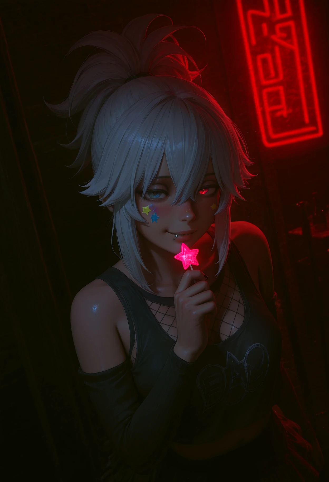 high-spiked ponytail, ponytail, chunky hair, layered bangs, hair tendrils, hair between eyes, sidelocks,