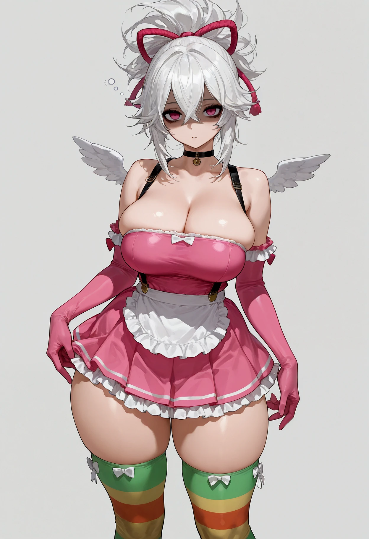 high-spiked ponytail, ponytail, chunky hair, layered bangs, hair tendrils, hair between eyes, sidelocks,hair ornament, ribbon, hair ribbon, rope,Description
