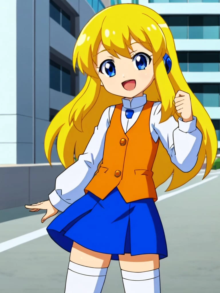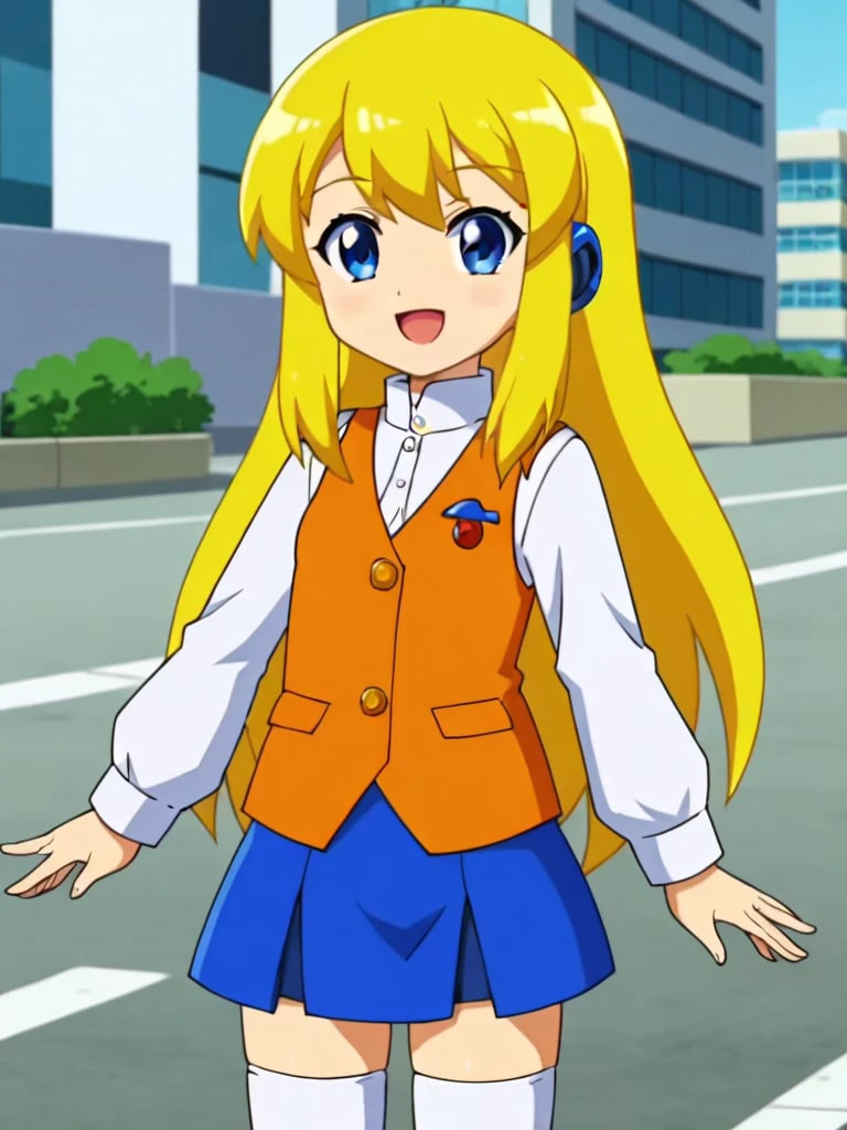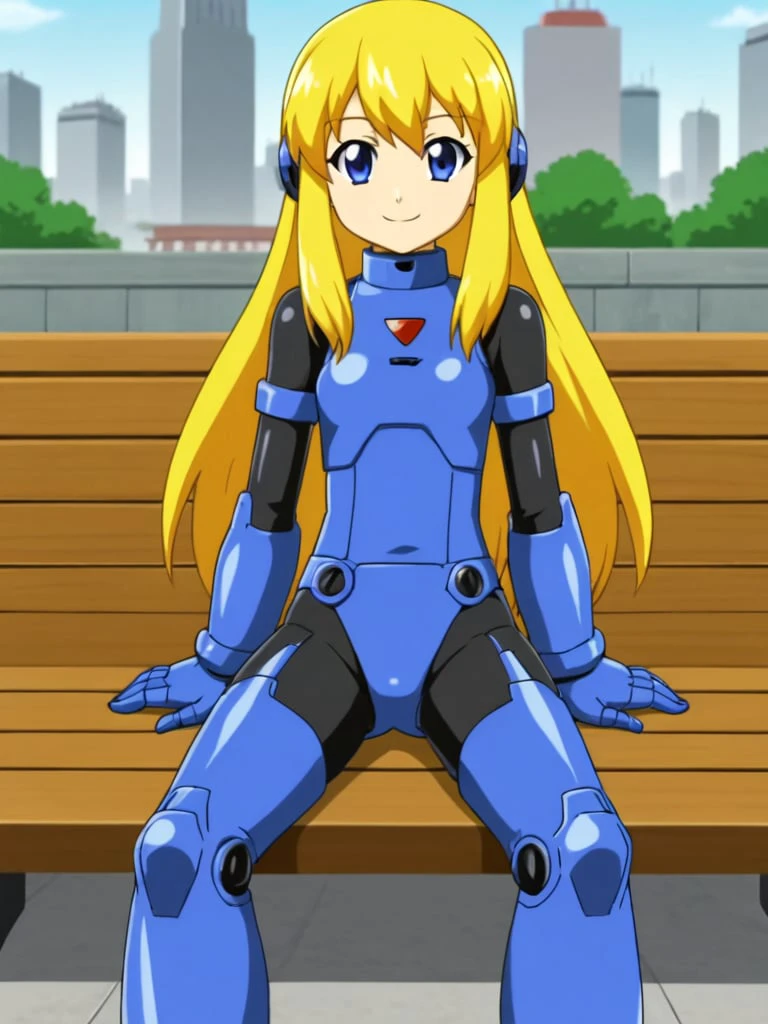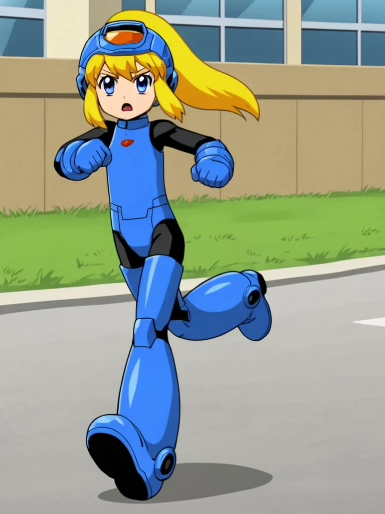 rokkotyan, android, armor, bodysuit, helmet, blonde hair, ponytail, blue eyes