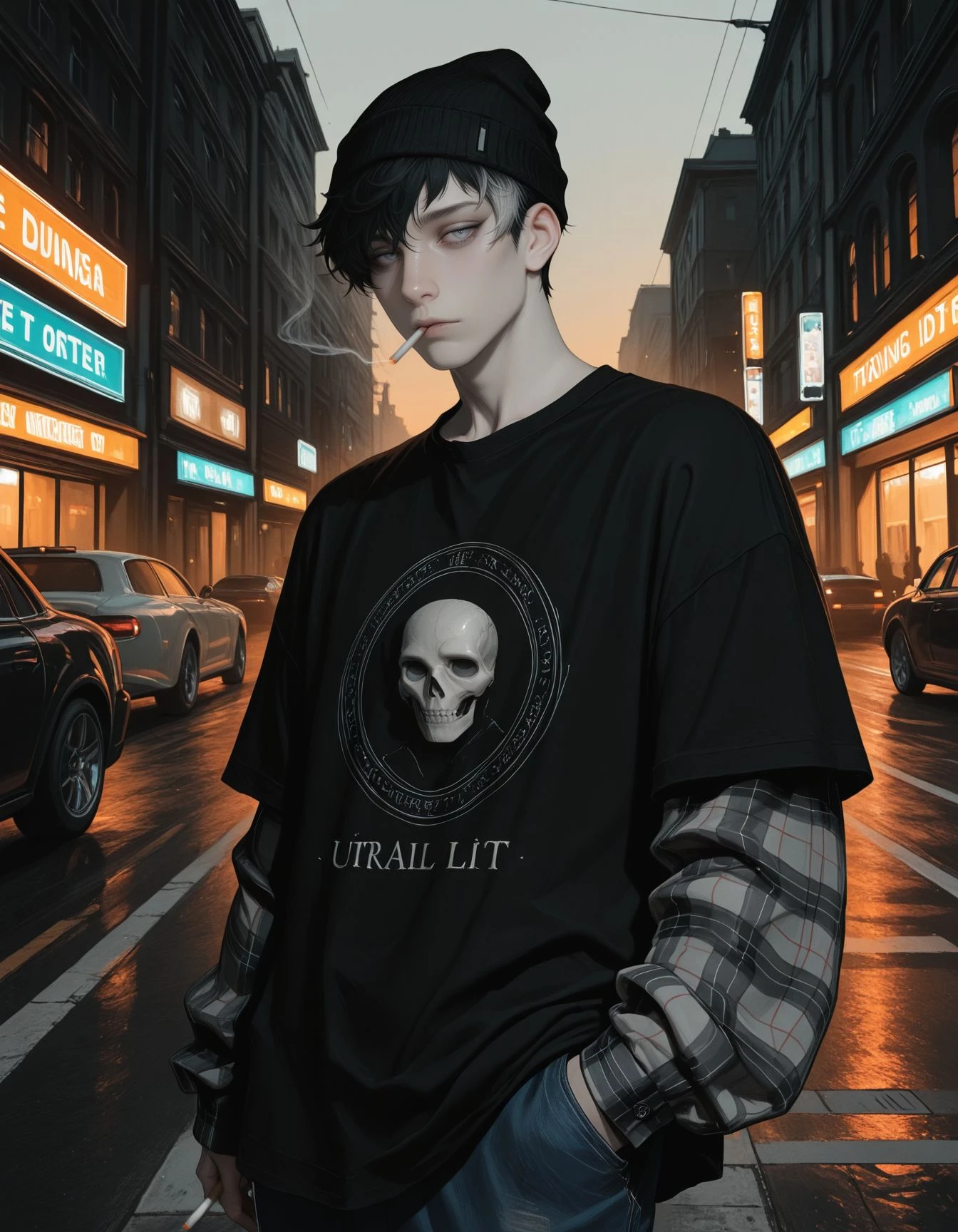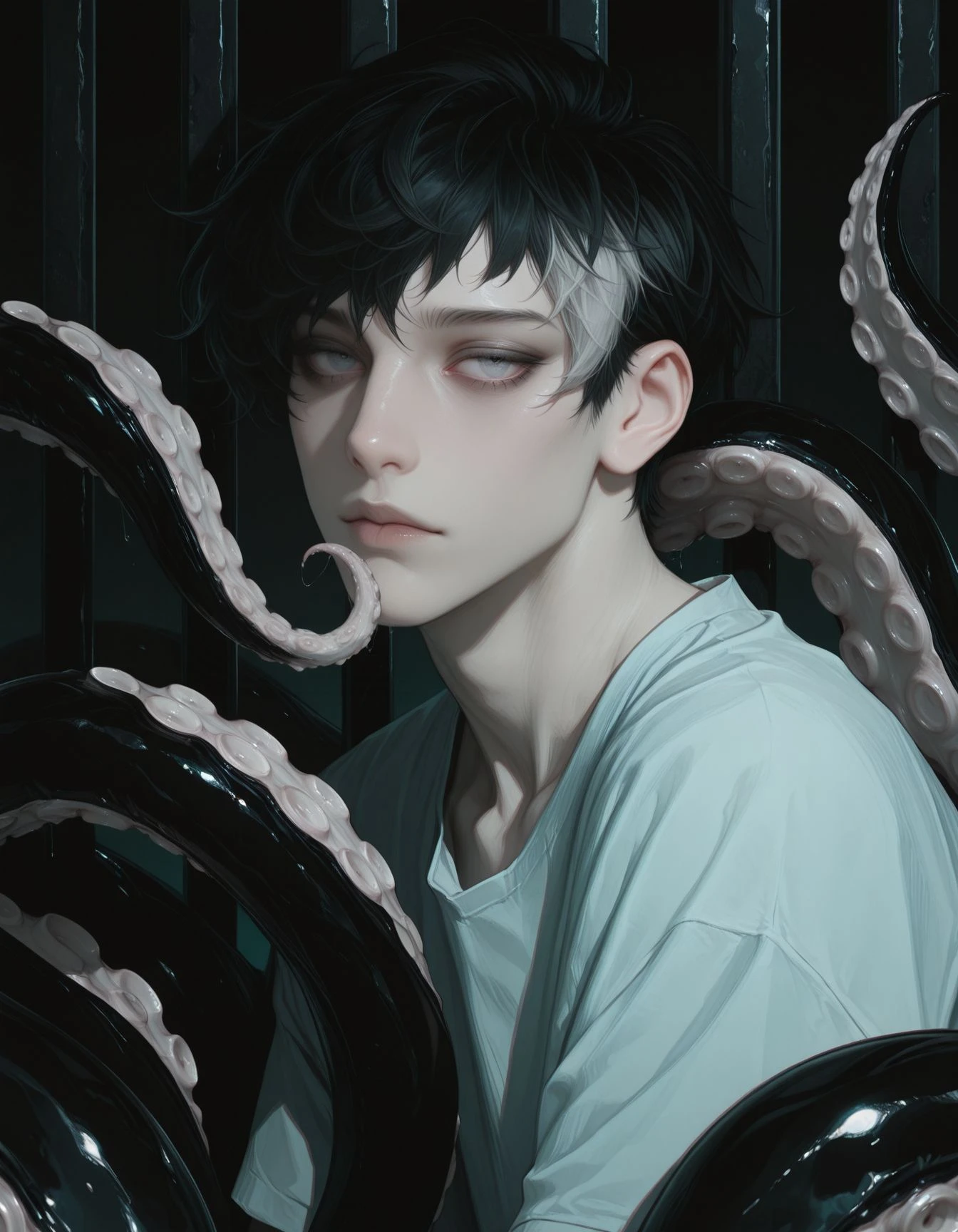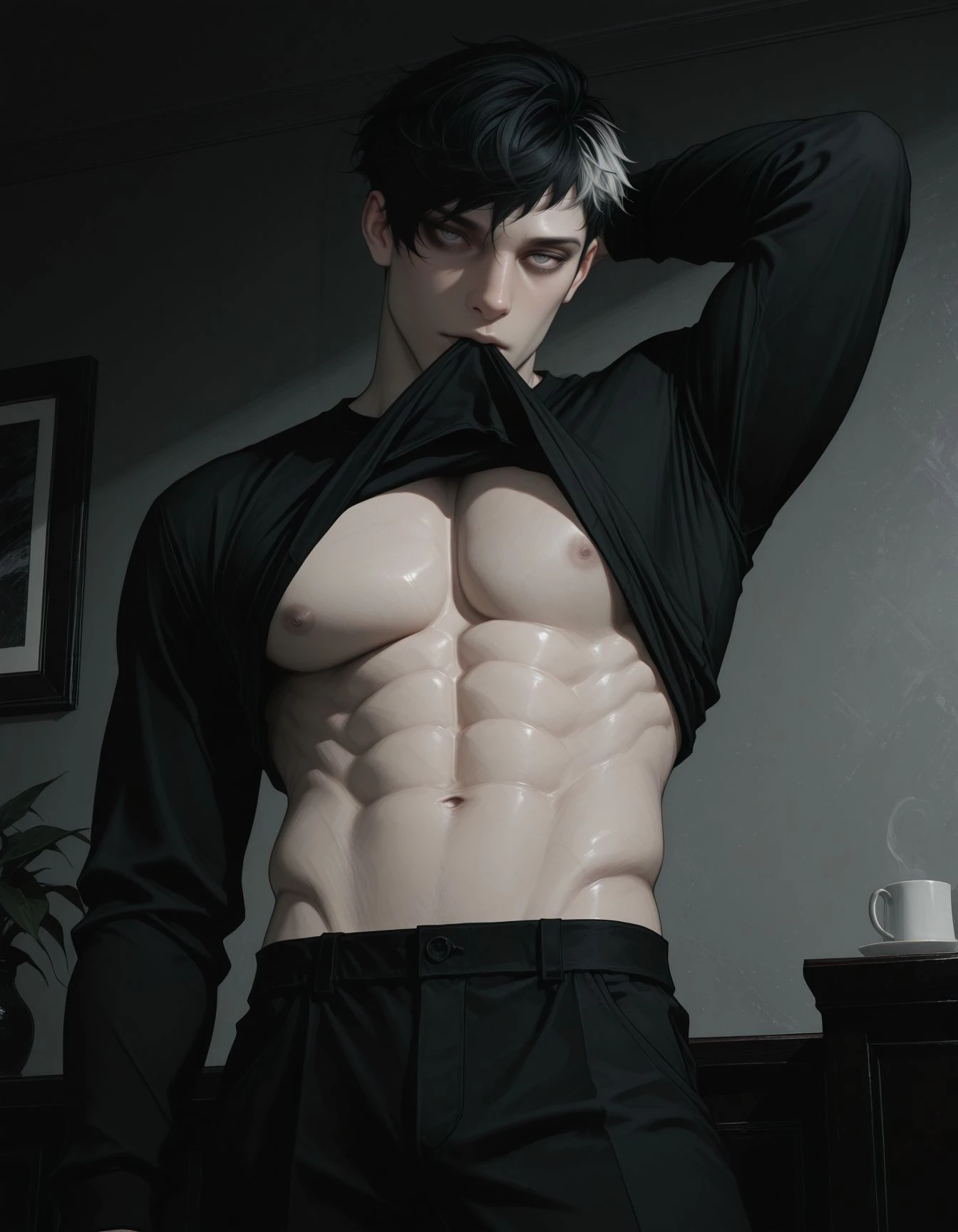 OCS1m0n, 1boy, male Focus, black hair, two-tone hair, Grey eyes, Grey eyes, short hair