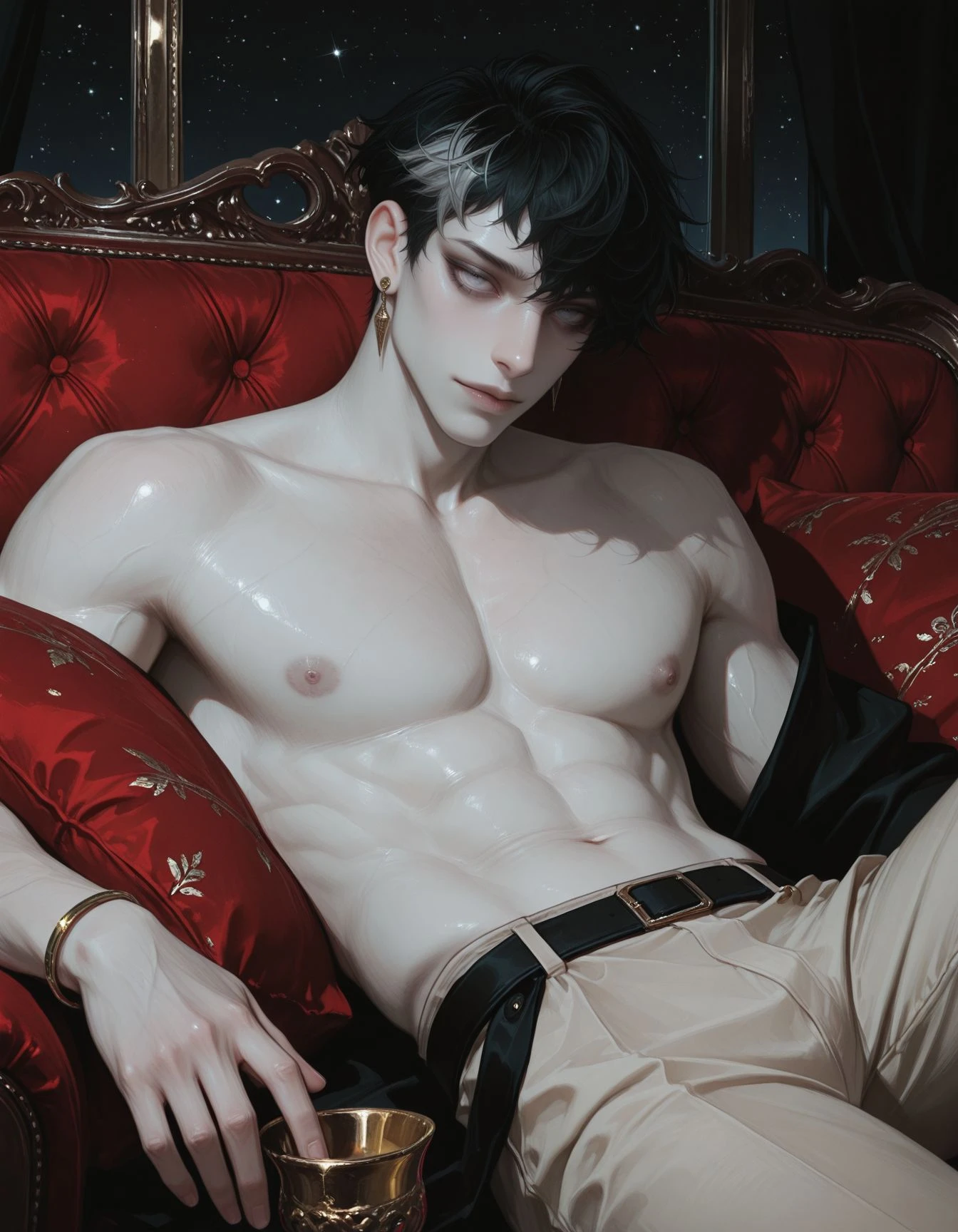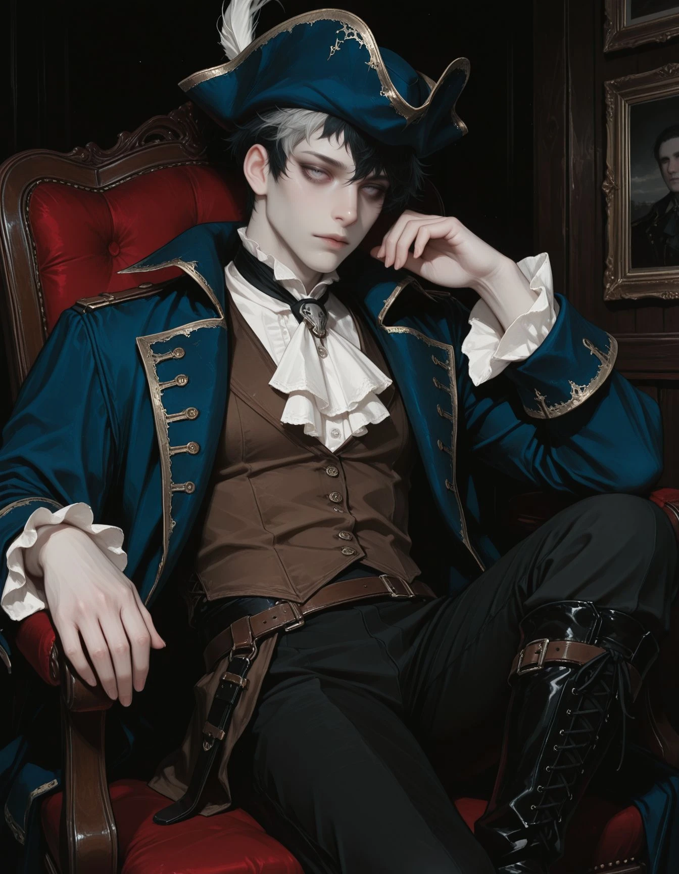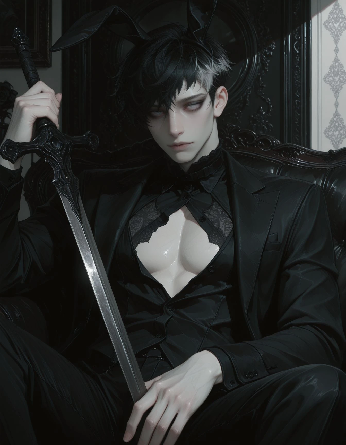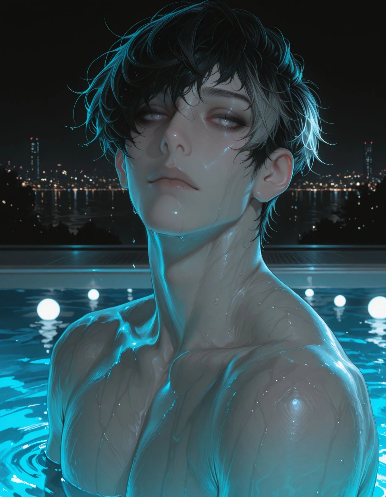 OCS1m0n, 1boy, male Focus, black hair, two-tone hair, Grey eyes, Grey eyes, short hair