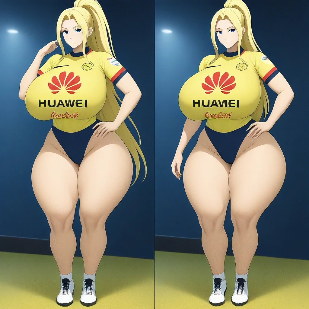 yellow shirt, sports jersey, blue biefs, blue V shaped bottom, thight clothes