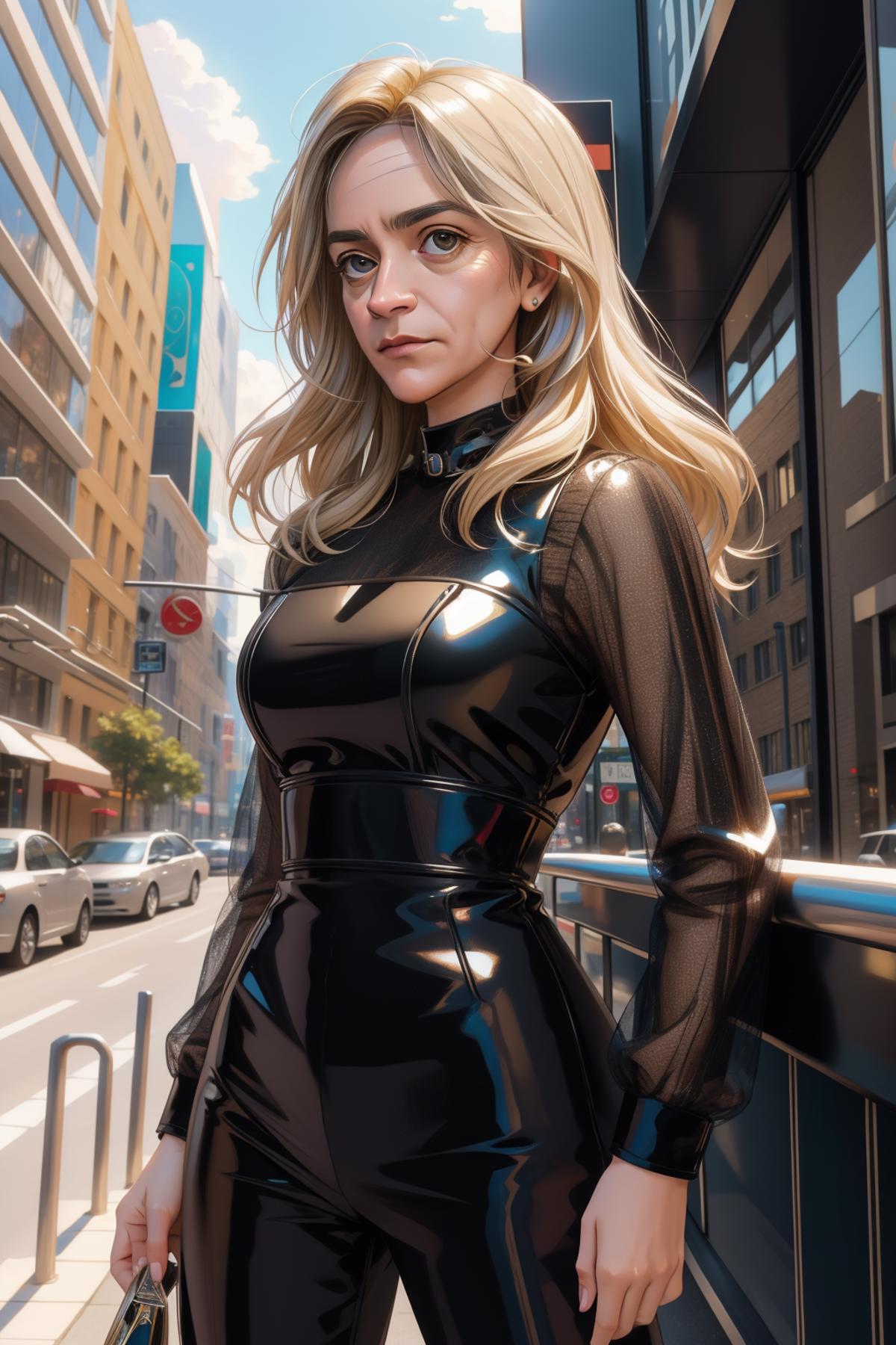 This is another attempt at speeding up my Faceapp method, and actually happened really quickly. I grabbed a face from a previously completed piece of art, put it in faceapp, tweaked it a little and then face-transfered it onto a previously existing set of images. Faceapp tends to pretty-up the resultant face, so I added some more tweaks in Faceapp to the dataset to try and keep the original's look. It's turned out pretty much as I hoped. She's certainly not one of the glam Nobodies.