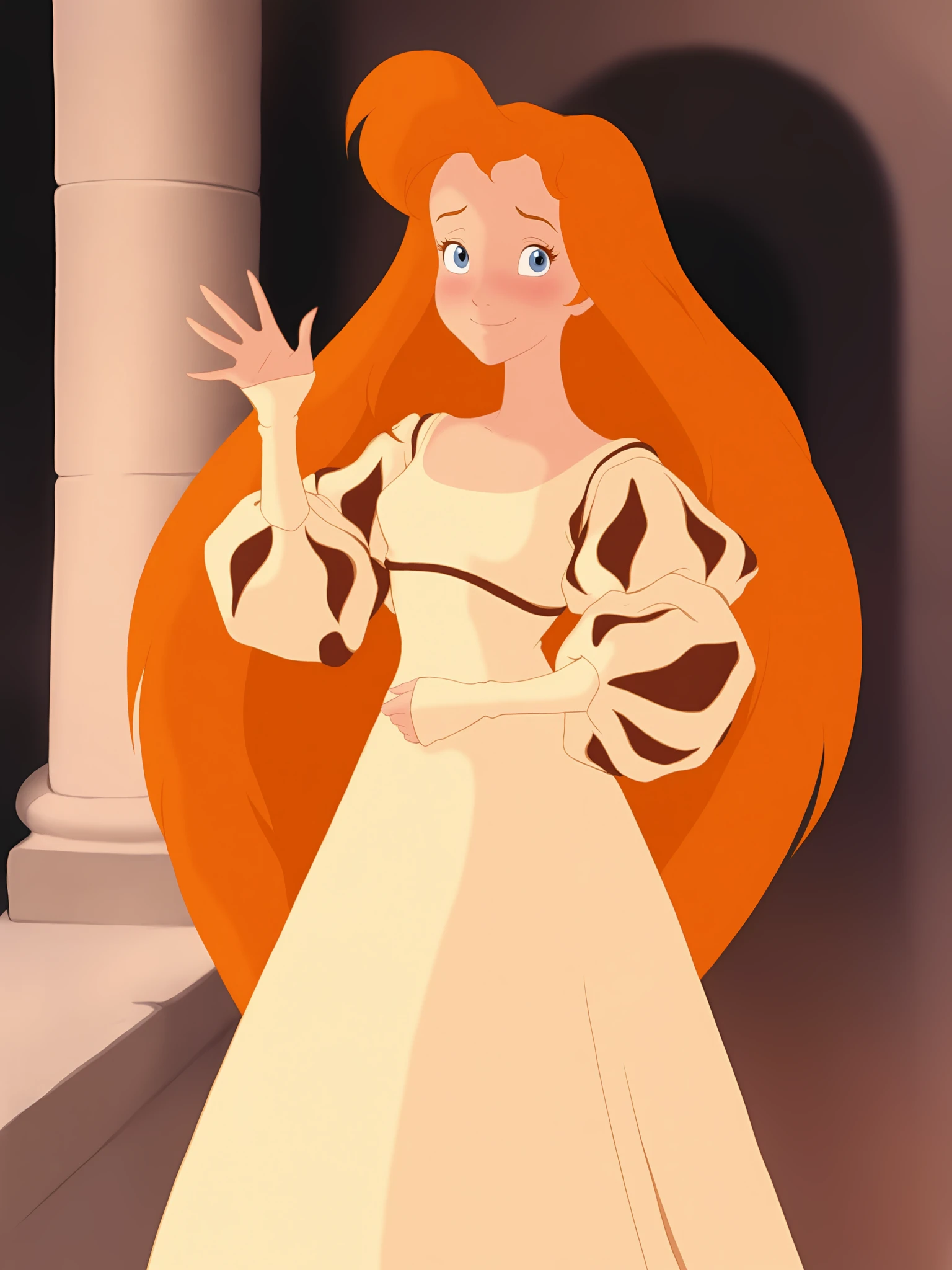 GretaPS, long hair, long sleeves, closed eyes, 1girl, orange hair, very long hair, dress