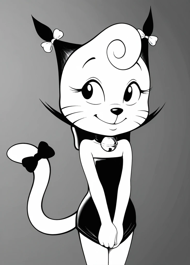 Nymphie, 1girl, furry female, tail, whiskers, cat ears, flat chest, strapless, bare shoulders, sleeveless, dress, neck bell, tail bow