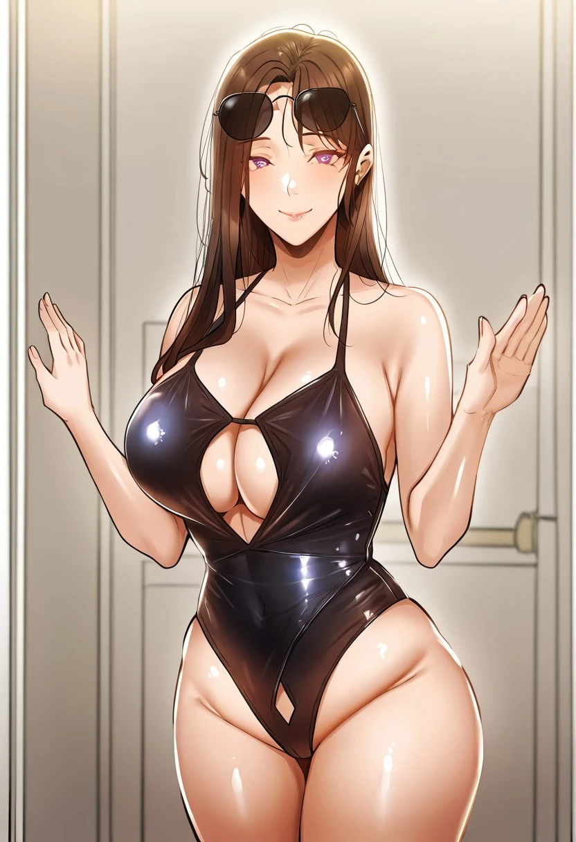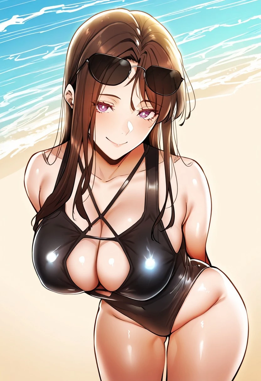 11. ((???? ?????? ??????? black deeply cut-out swimwear, luxury black sunglasses on forehead, ))