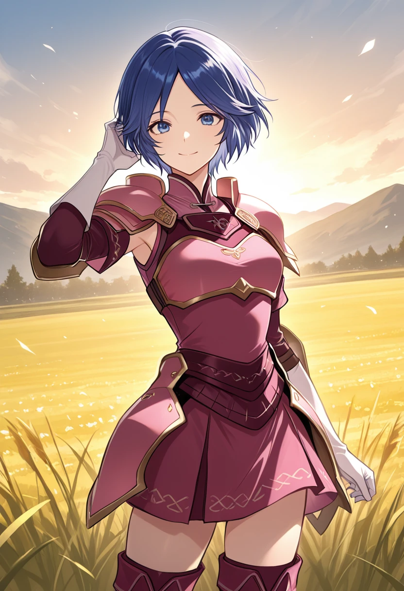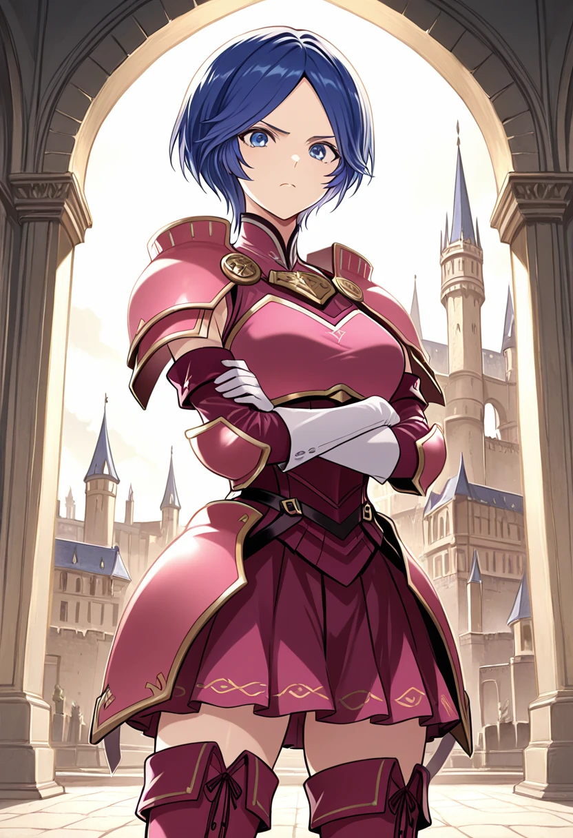 Trigger Words (Regular Outfit): MidiaOG, pink armor, gold trim, pink armored bandeau, pink shirt, shoulder pads, pink skirt, short skirt, detached sleeves, pink sleeves, elbow guards, elbow gloves, white gloves, hip armor, thigh boots, pink boots, [Add 'stomach armor' to negatives for consistency]