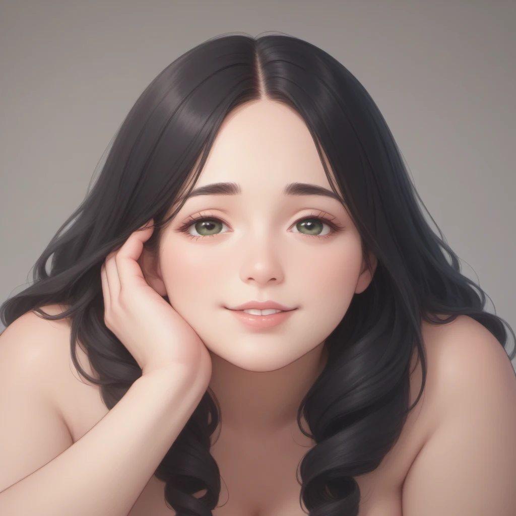 score_9, score_8_up, score_7_up, score_6_up, source_anime, rating_safe, 1girl, (curly hair), long hair, (black hair), mature female, (parted hair:1.7), (round face), (no_bangs:1.3), (no_fringe:1.6), looking at viewer, (thick eyebrows), (curvy), round-chin, (dark olive green eyes), caucasian, down-turned eyes, <lora:ETO_OCPonyXL:0.5> eto_oc, skindentation, thick thighs, wide hips, busty, voluptuous, ????? curls, lips,