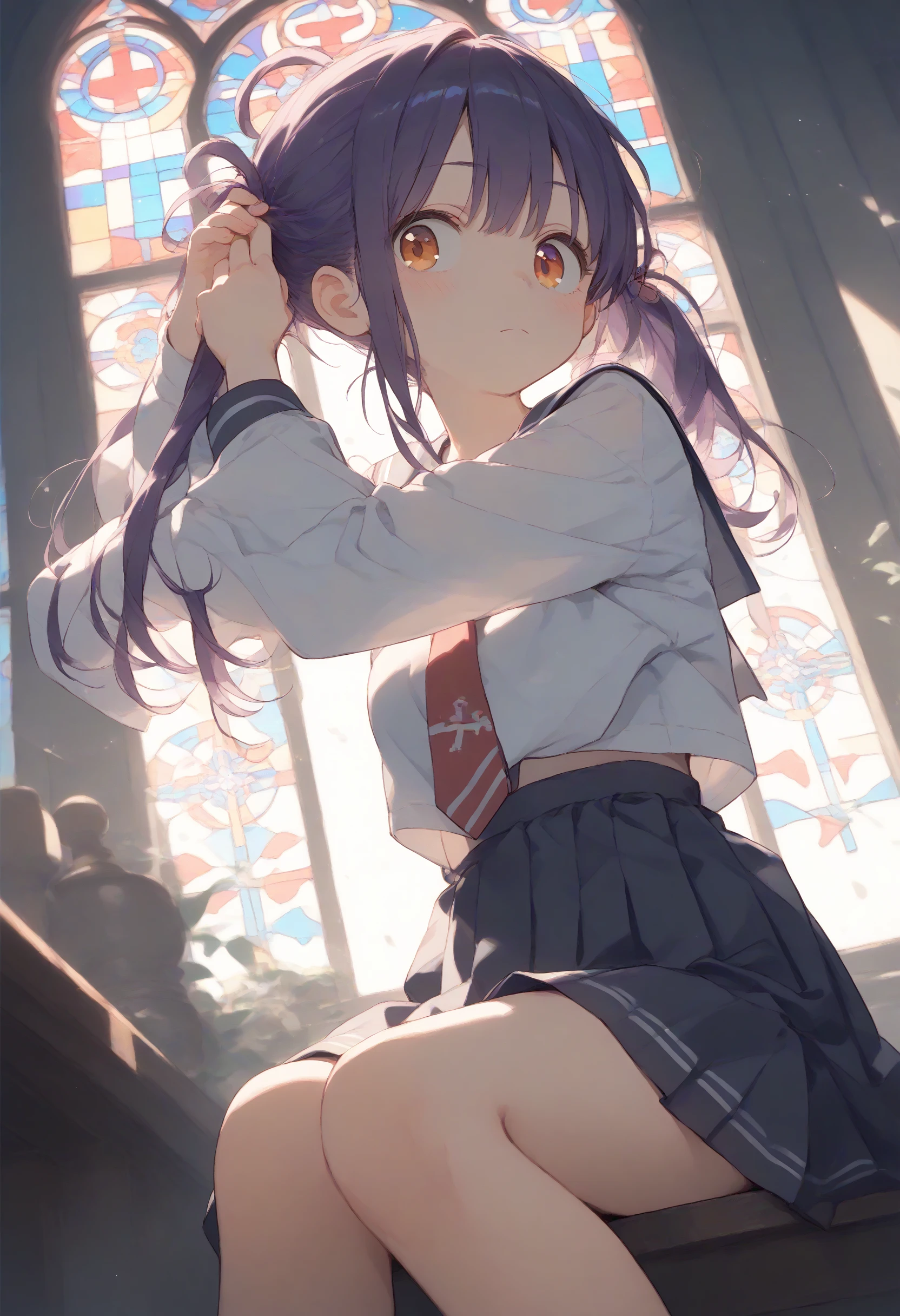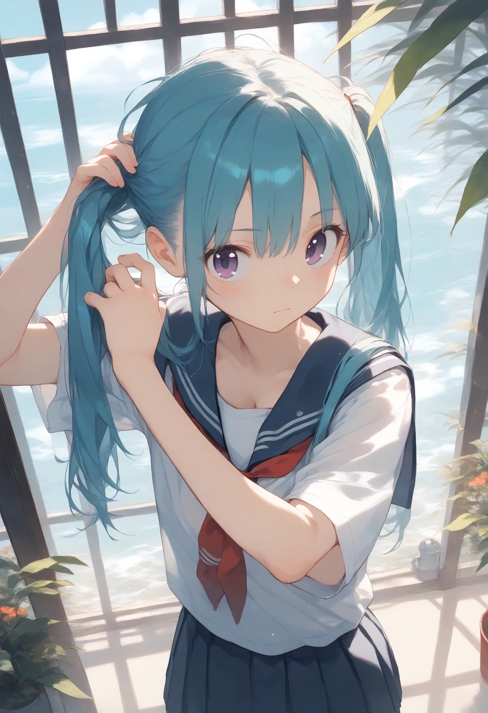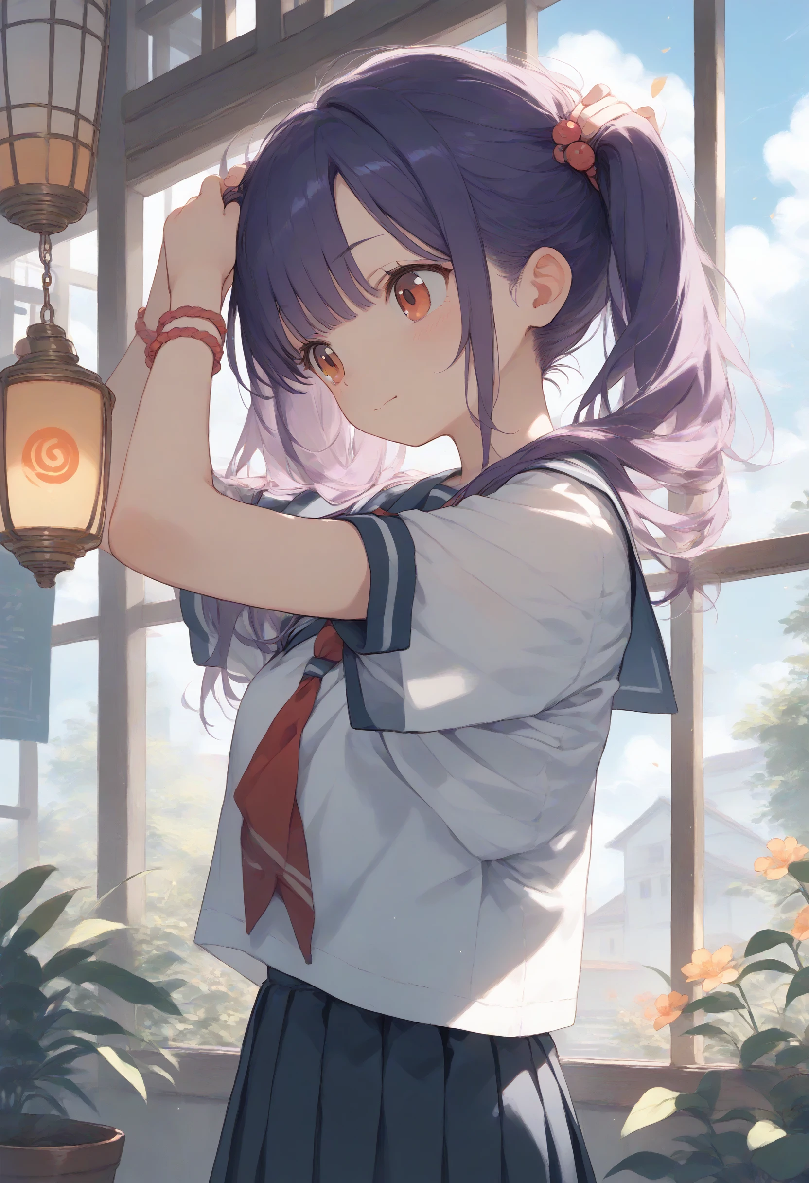 This LoRA creates the condition of grabbing the hair to tie the twin tails.