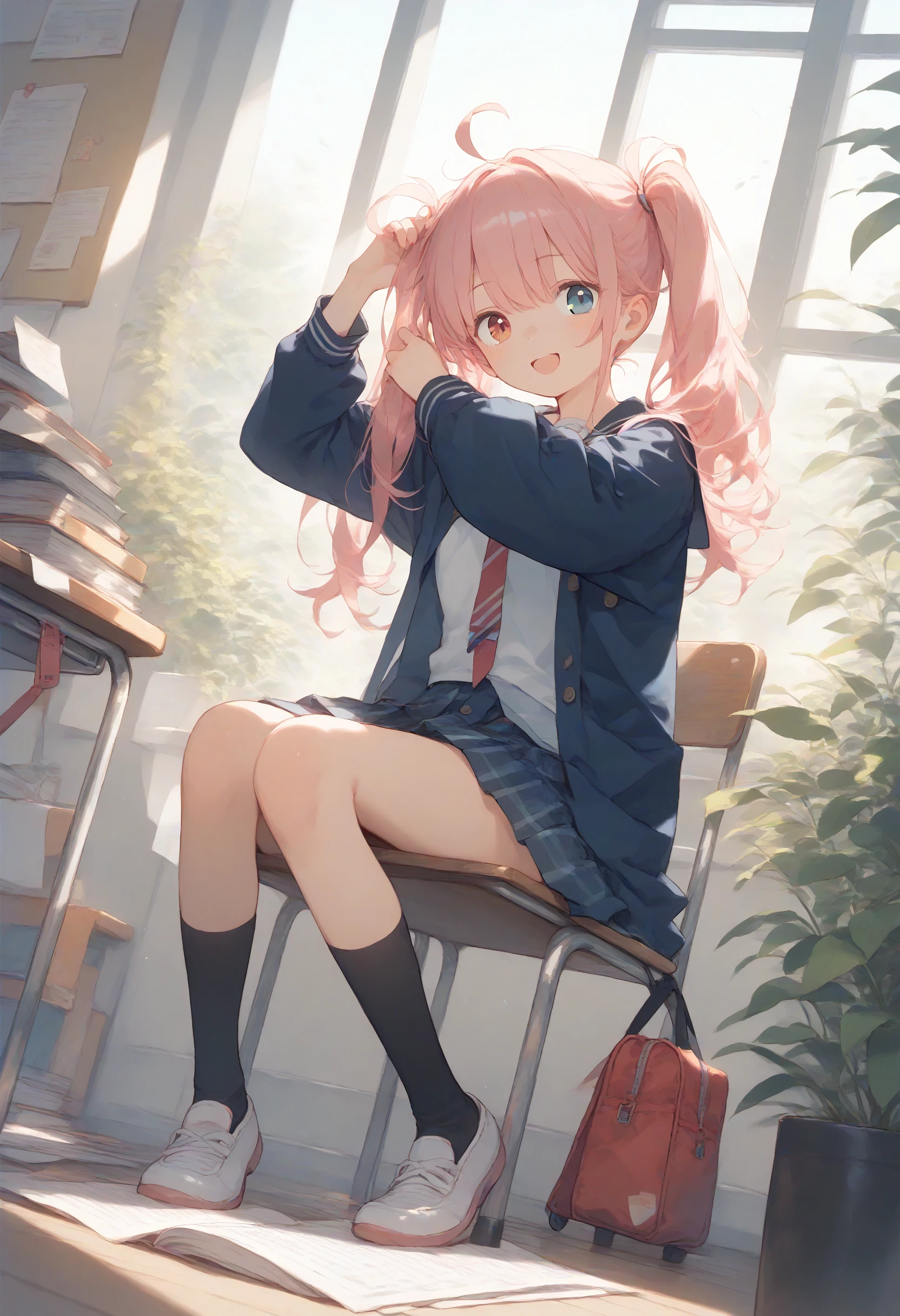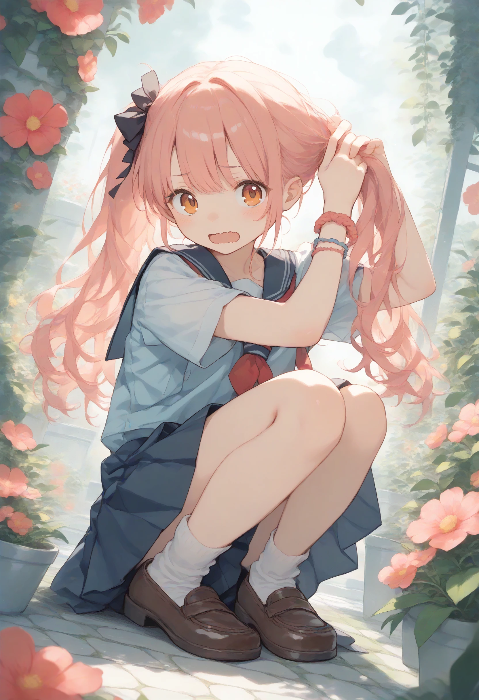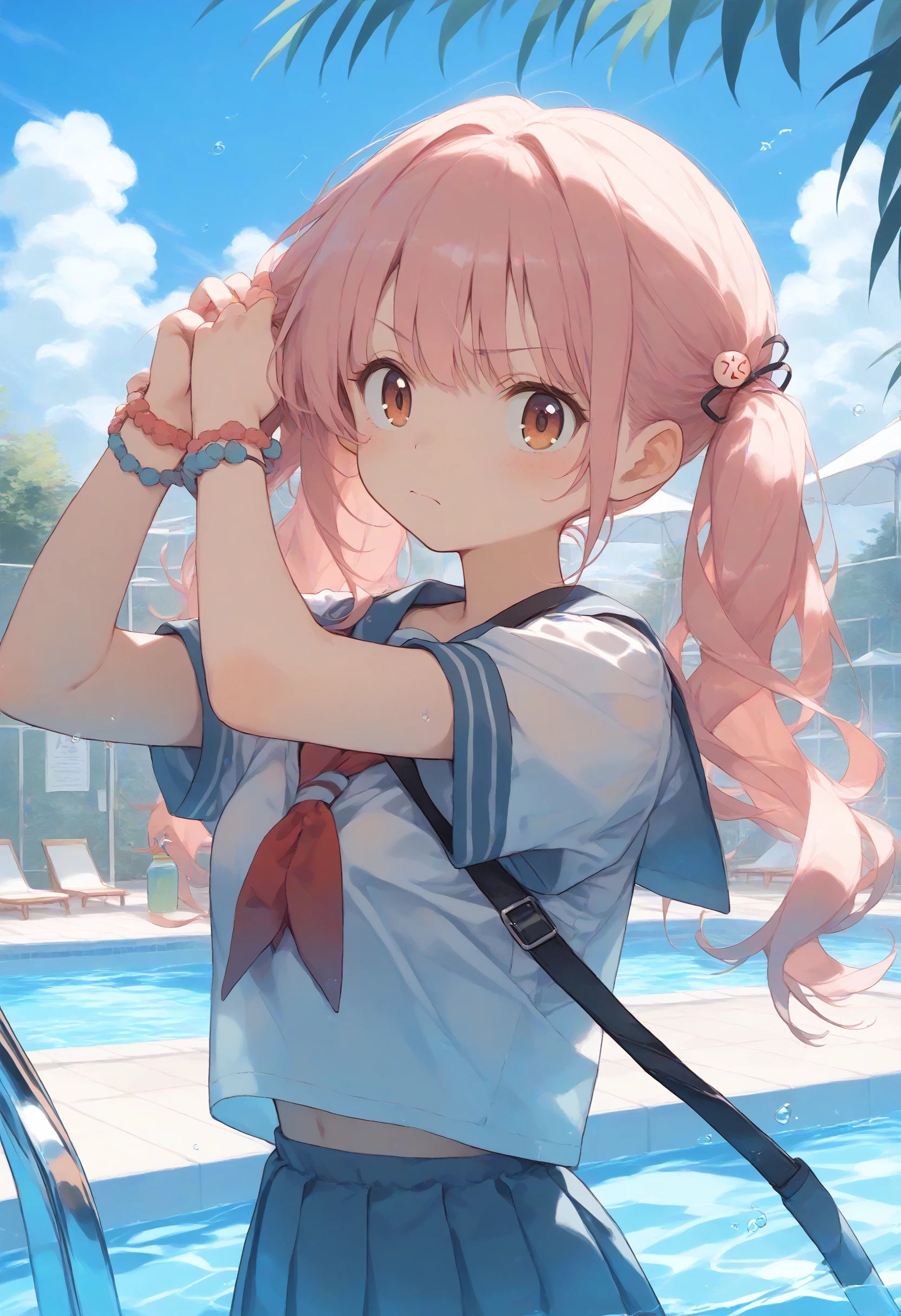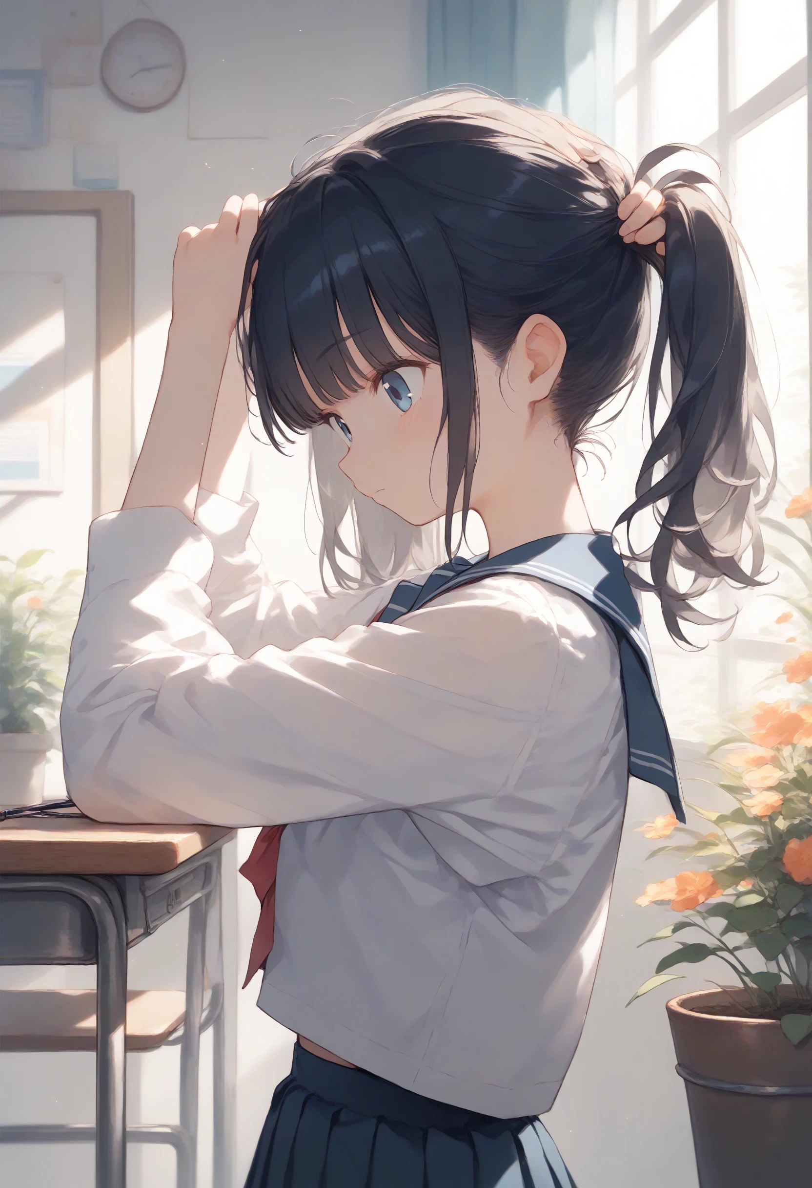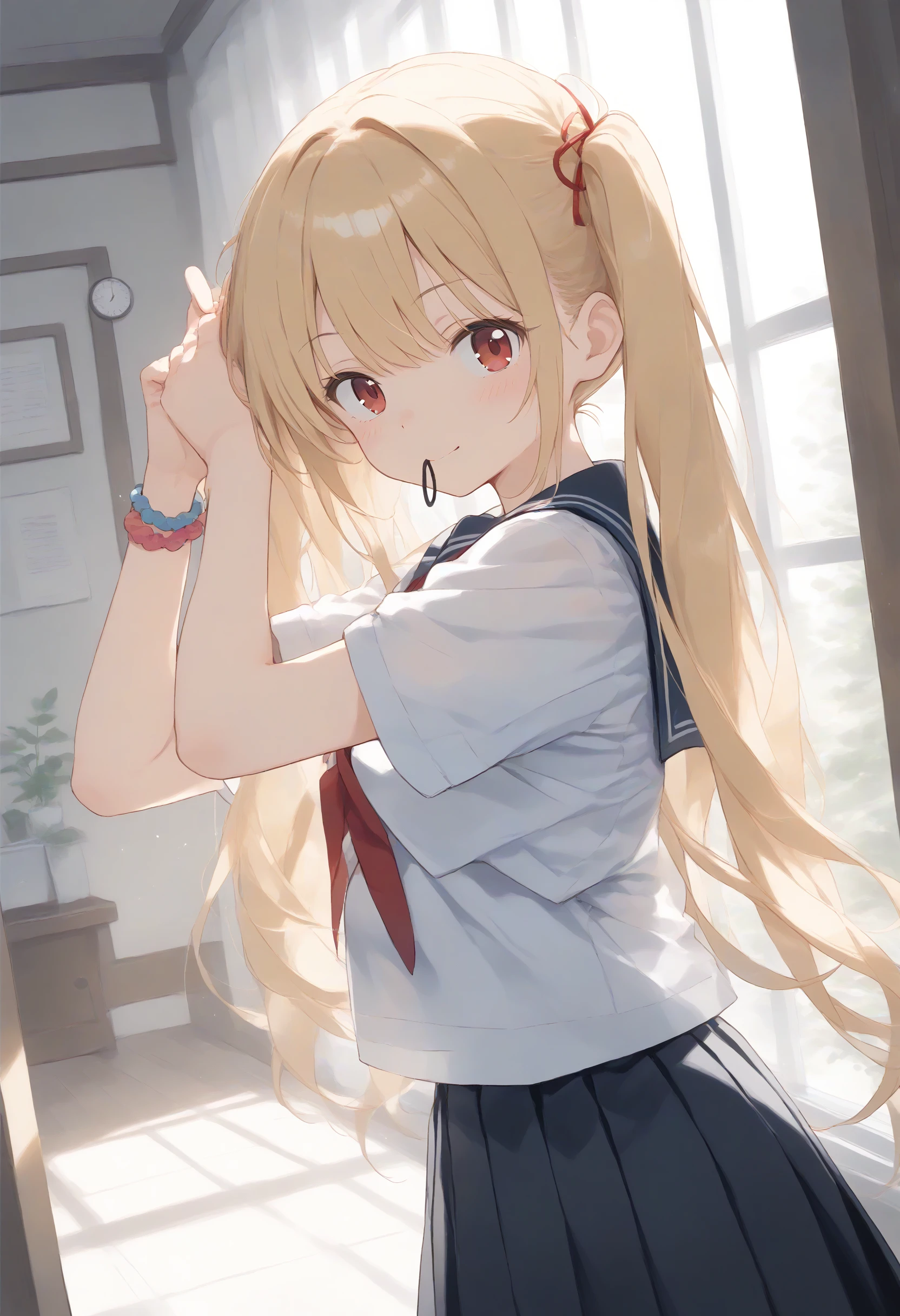 ツインテールを結ぶために髪の毛を掴んでいる状態を作るLoRAです。