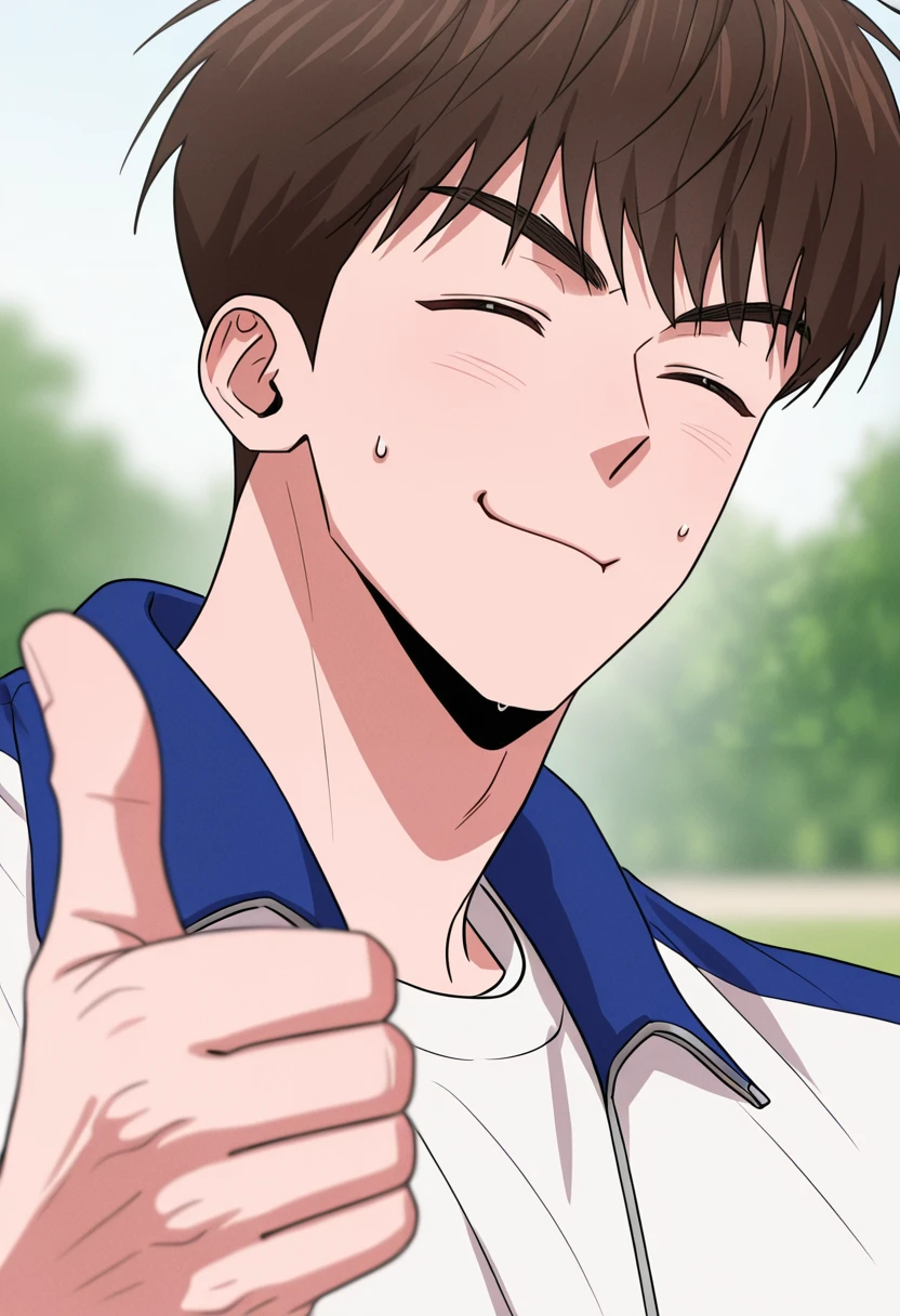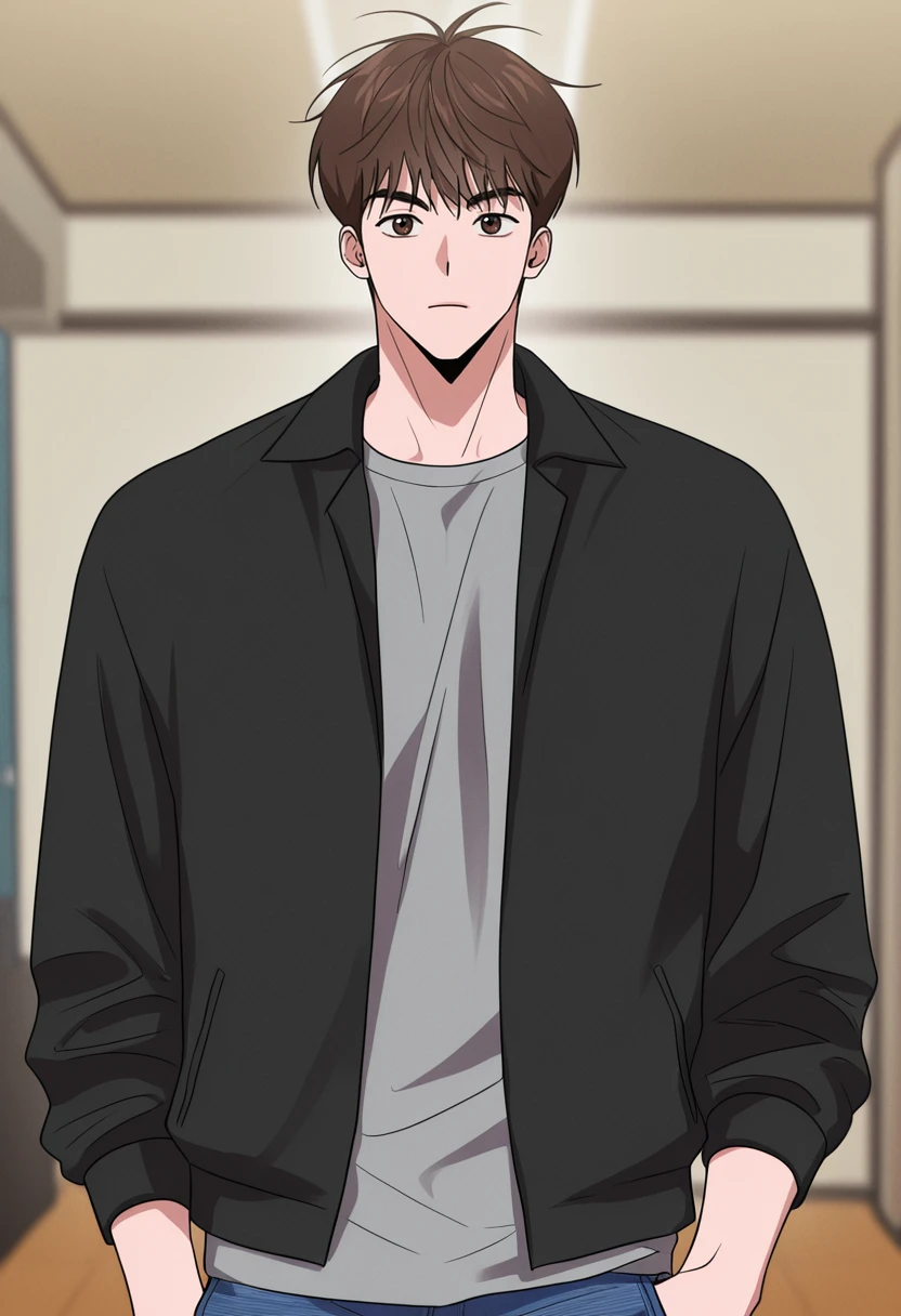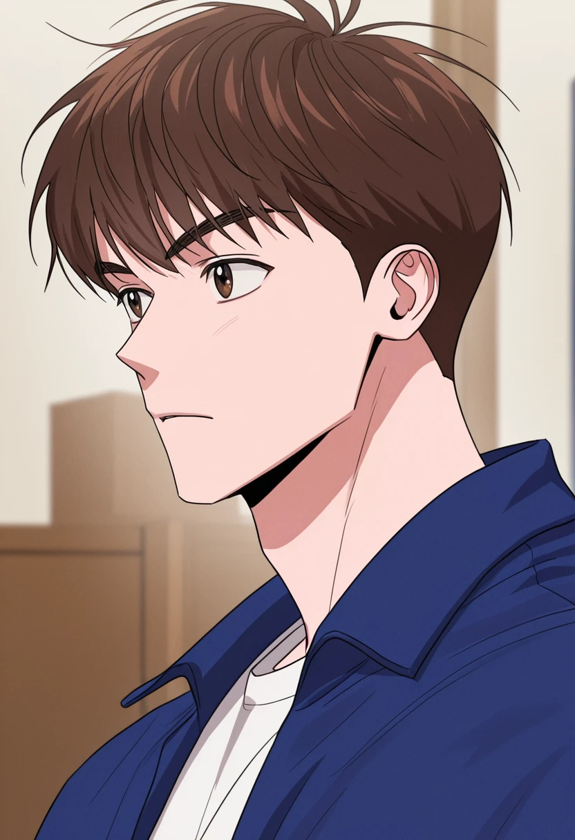 daehan, brown hair, brown eyes, short hair