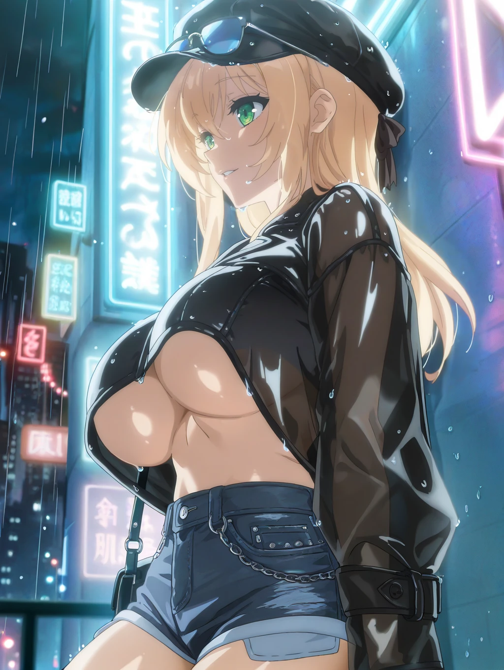 Tags : to_ui,blonde hair large breasts, green eyes, ribbon, hair ribbon,