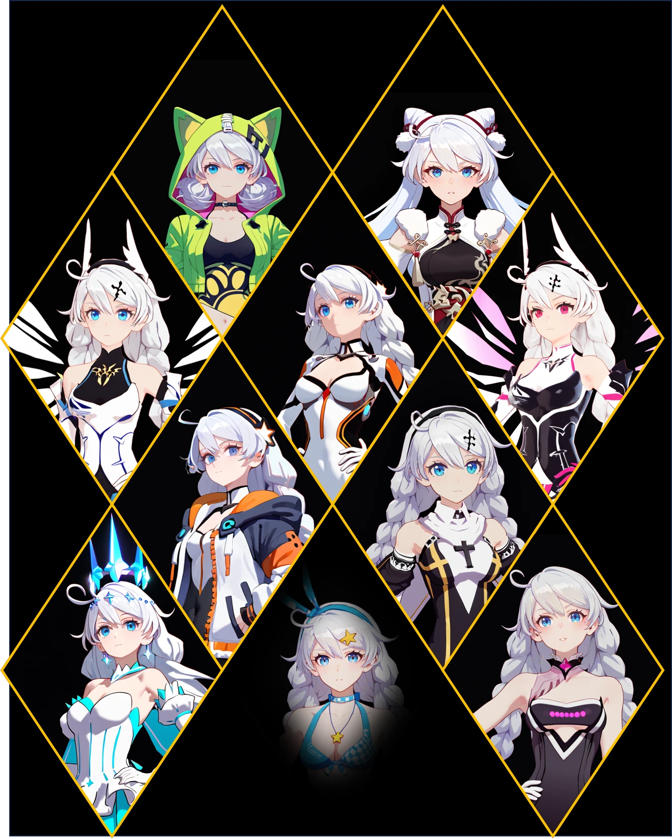 注:应网友需求,本合集同一角色可能分别采用Animagine XL V3,Pony Diffusion V6 XL和Kohaku训练,而对应模型版本会分别标注“A3”,“pony” 或者“kohaku” 。Note: In response to the needs of Civita users, the same character in this collection may be trained with Animagine XL V3,Pony Diffusion V6 XL and Kohaku respectively, and the corresponding model version will be marked with "A3", "pony" or “kohaku”.