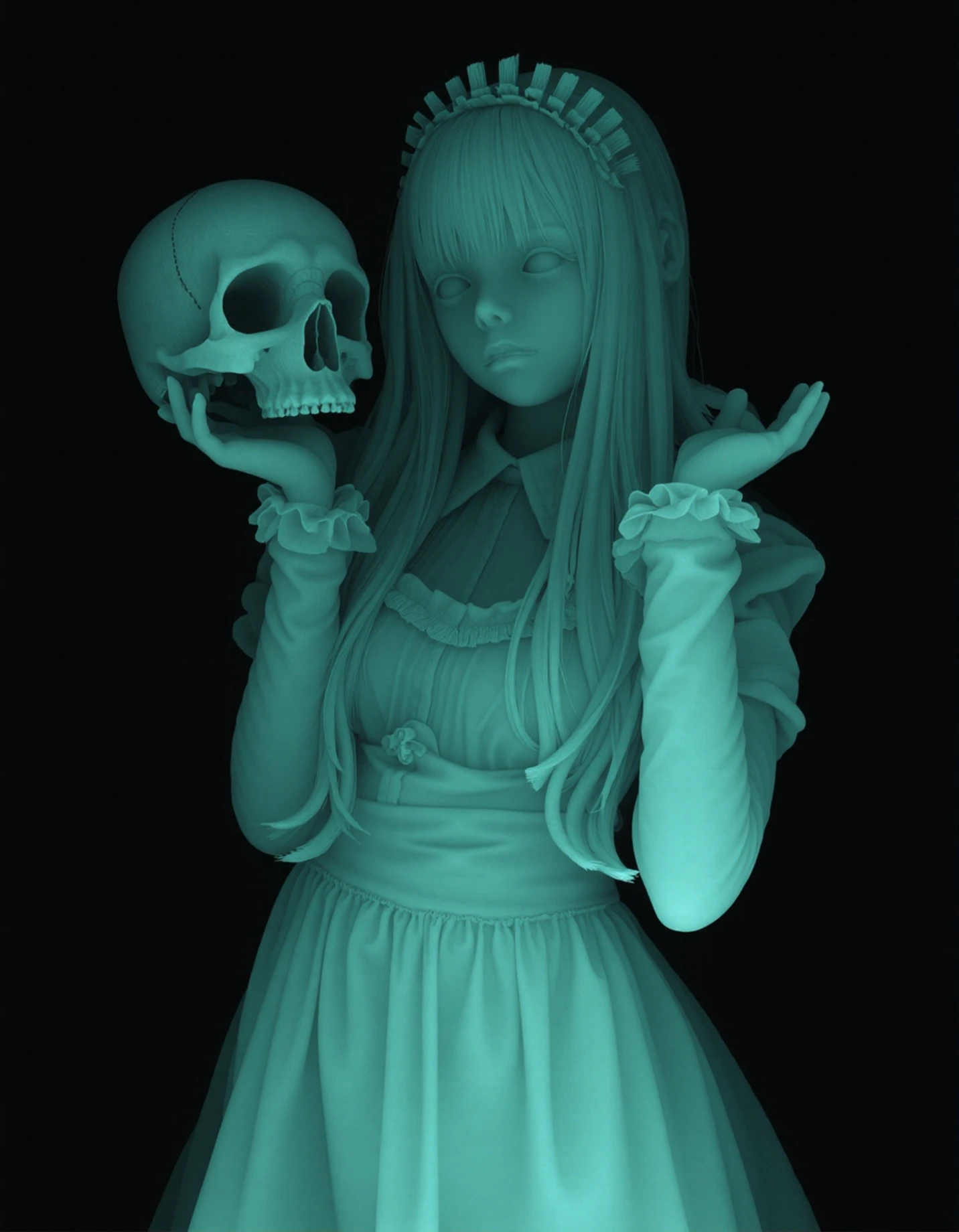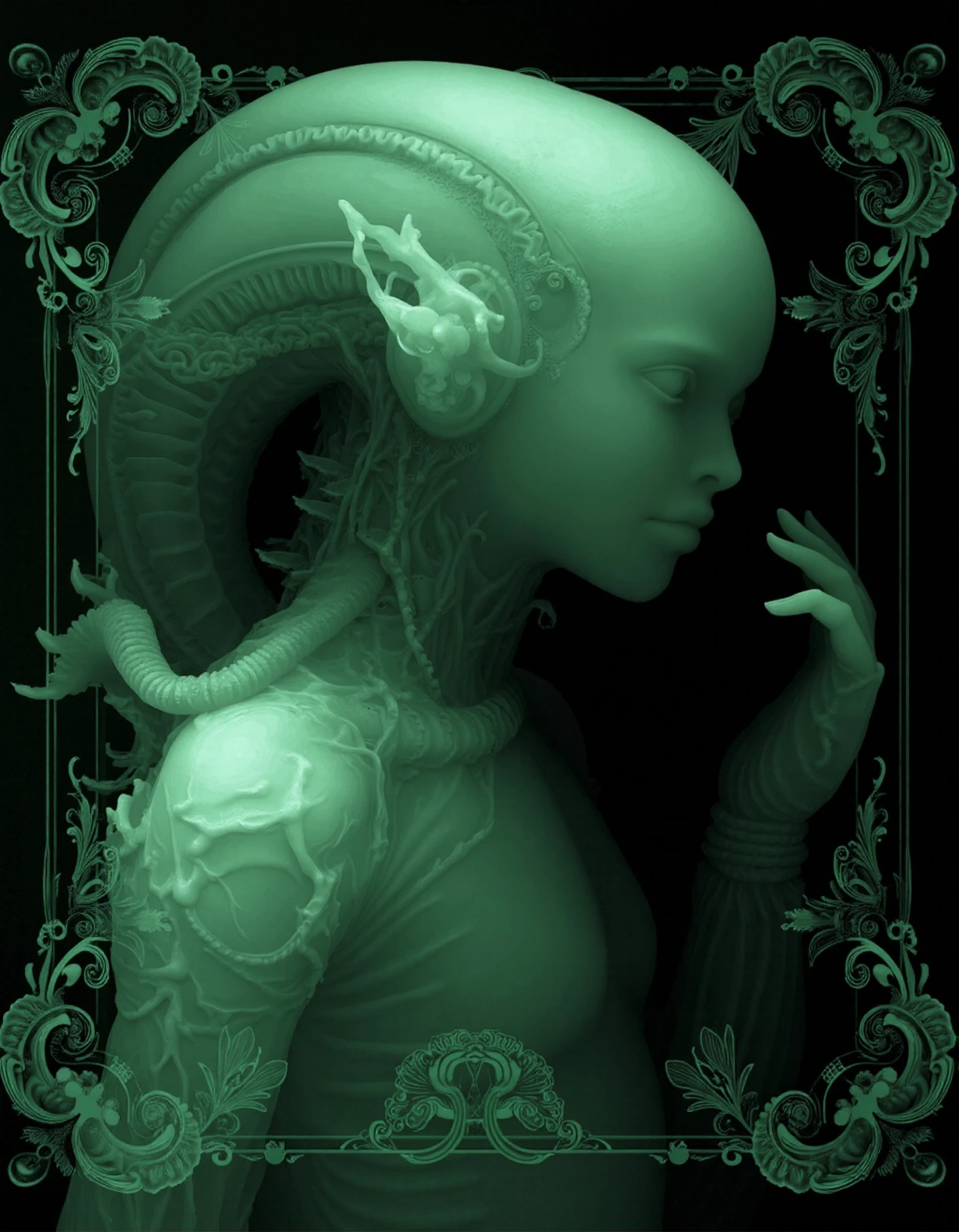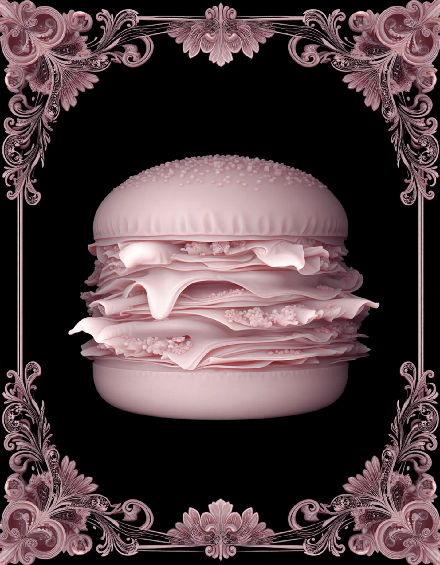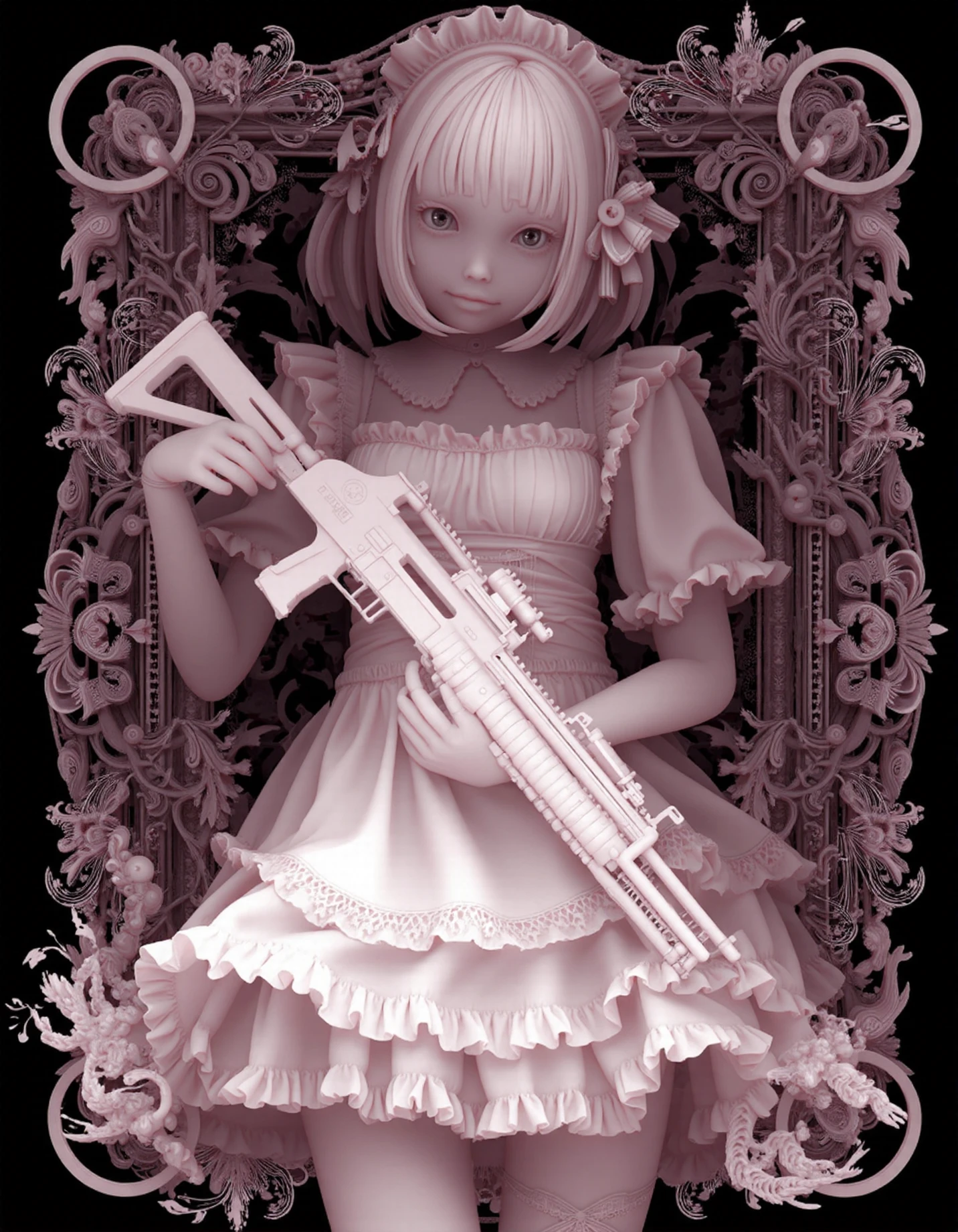 This was meant to replicate the style of Kazuki Takamatsu, known for his work combining depth mapping and intricate ornate patterns (and young girls in lingerie).