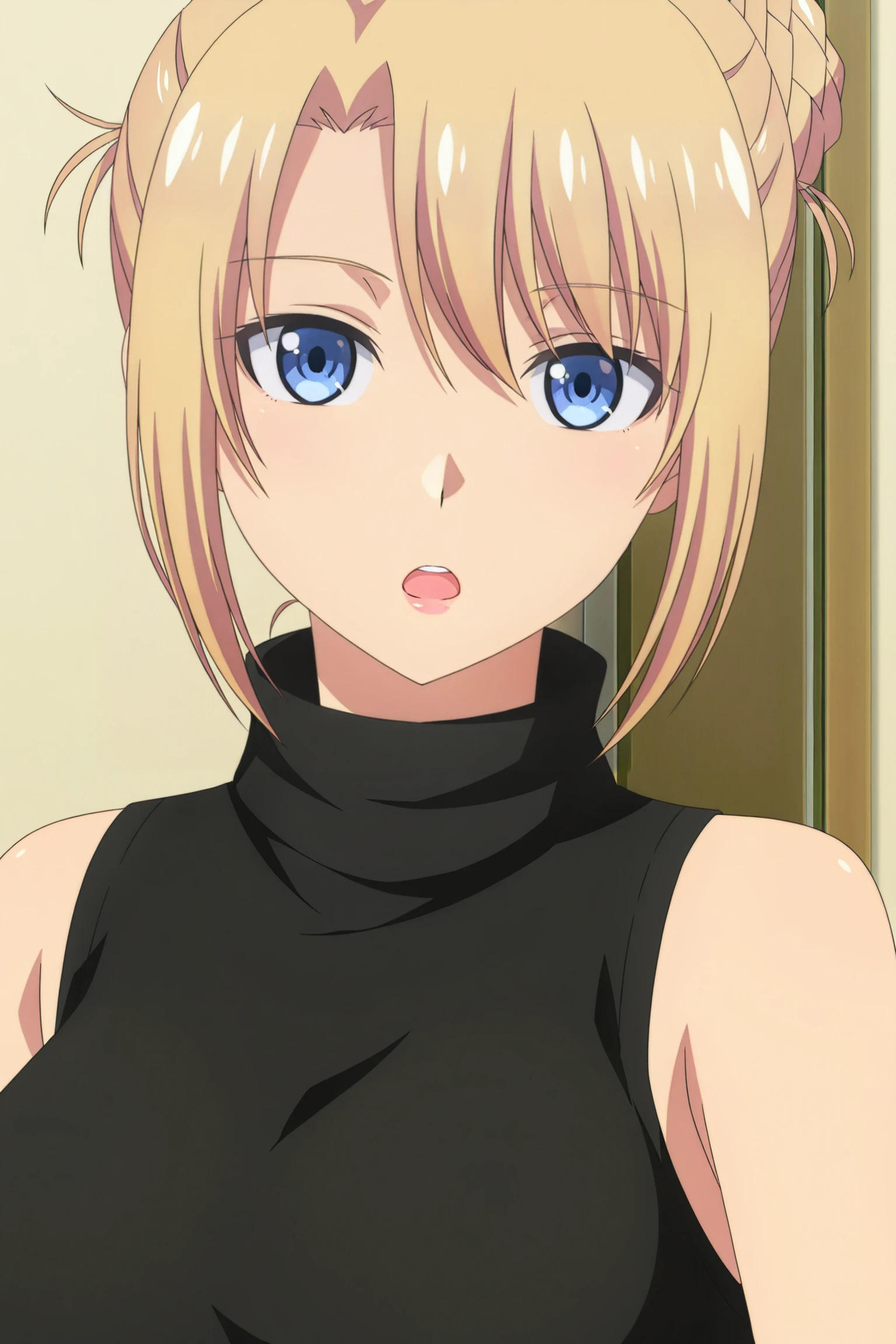 blonde hair,blue eyes,single hair bun,Clothes(服装):