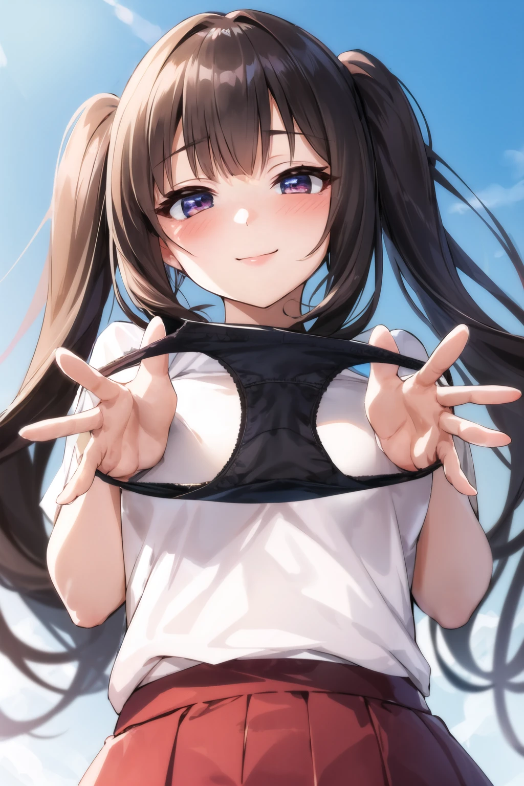 Prompt: masterpiece, best quality,1girl,<lora:presentingpanties-10:0.8>,prensentingpanties,panties, holding,holding panties, upper body,from below