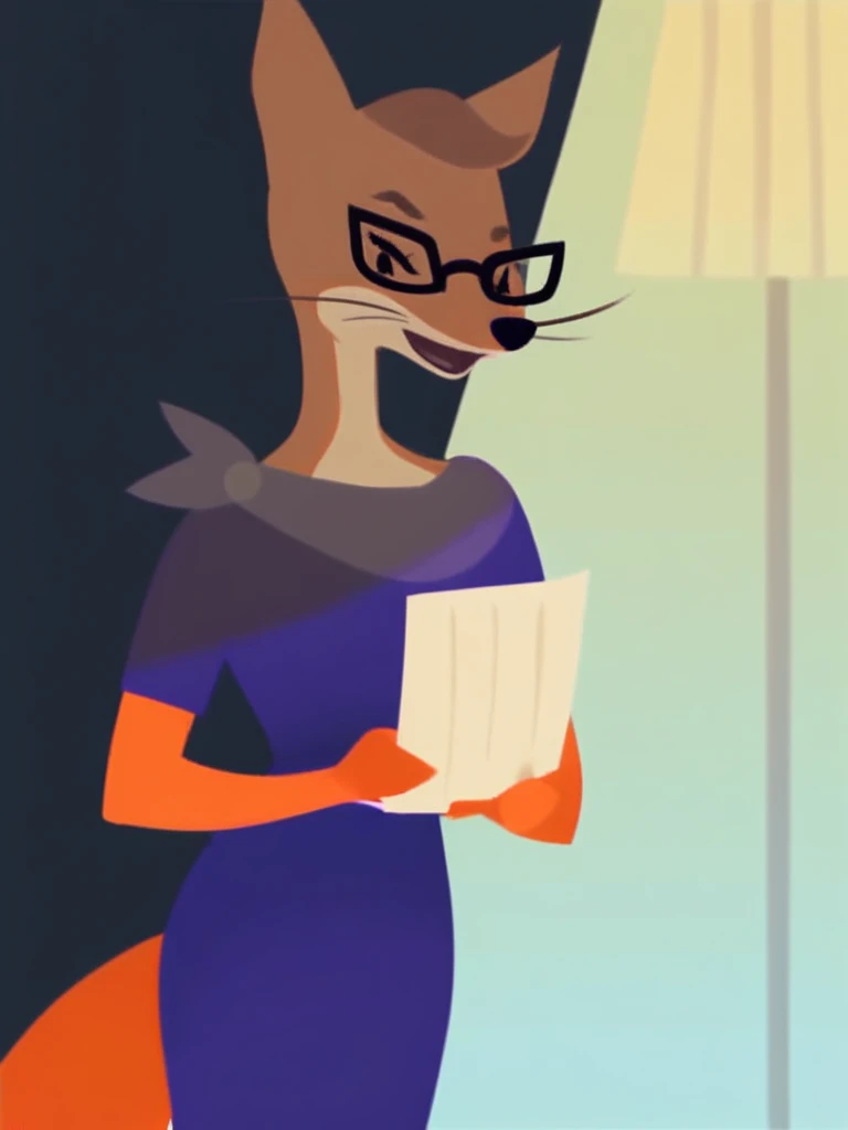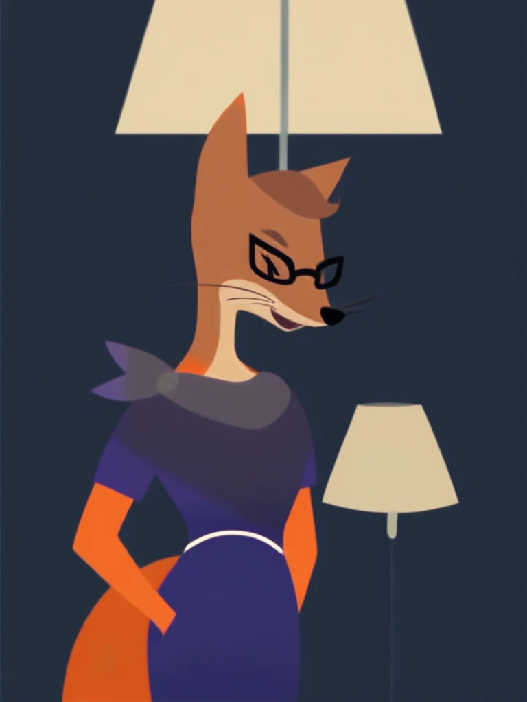 Helper tags: fluffy detailed orange fur, black rectangular eyewear, black eyes, short hair, brown hair, whiskers