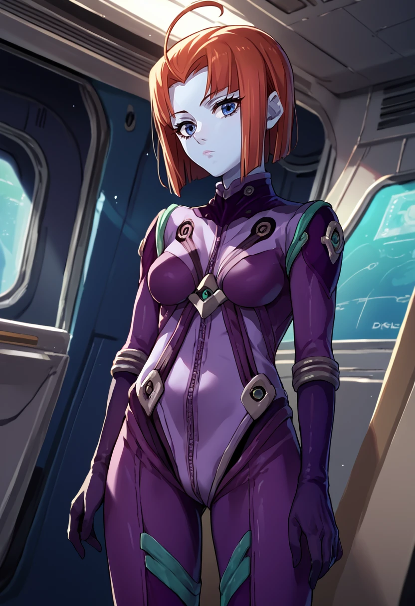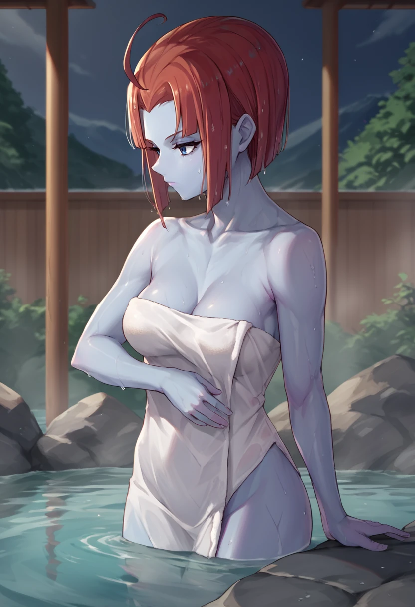 Trigger + Appearance: melda deitz, blue skin, ahoge
