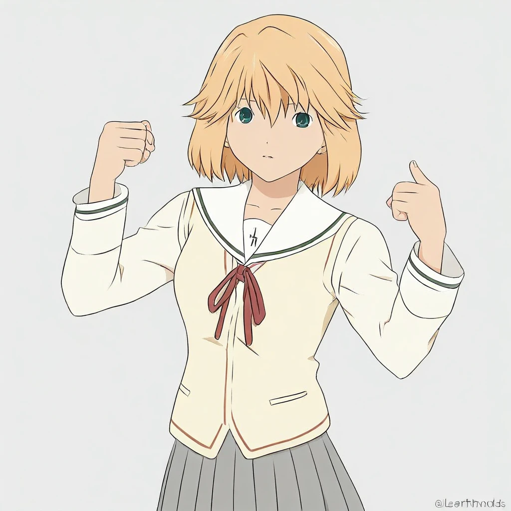 1girl, arihara_ayumi, ayumi eyes, ayumi hair, orange hair, ayumi school uniform, yellow vest