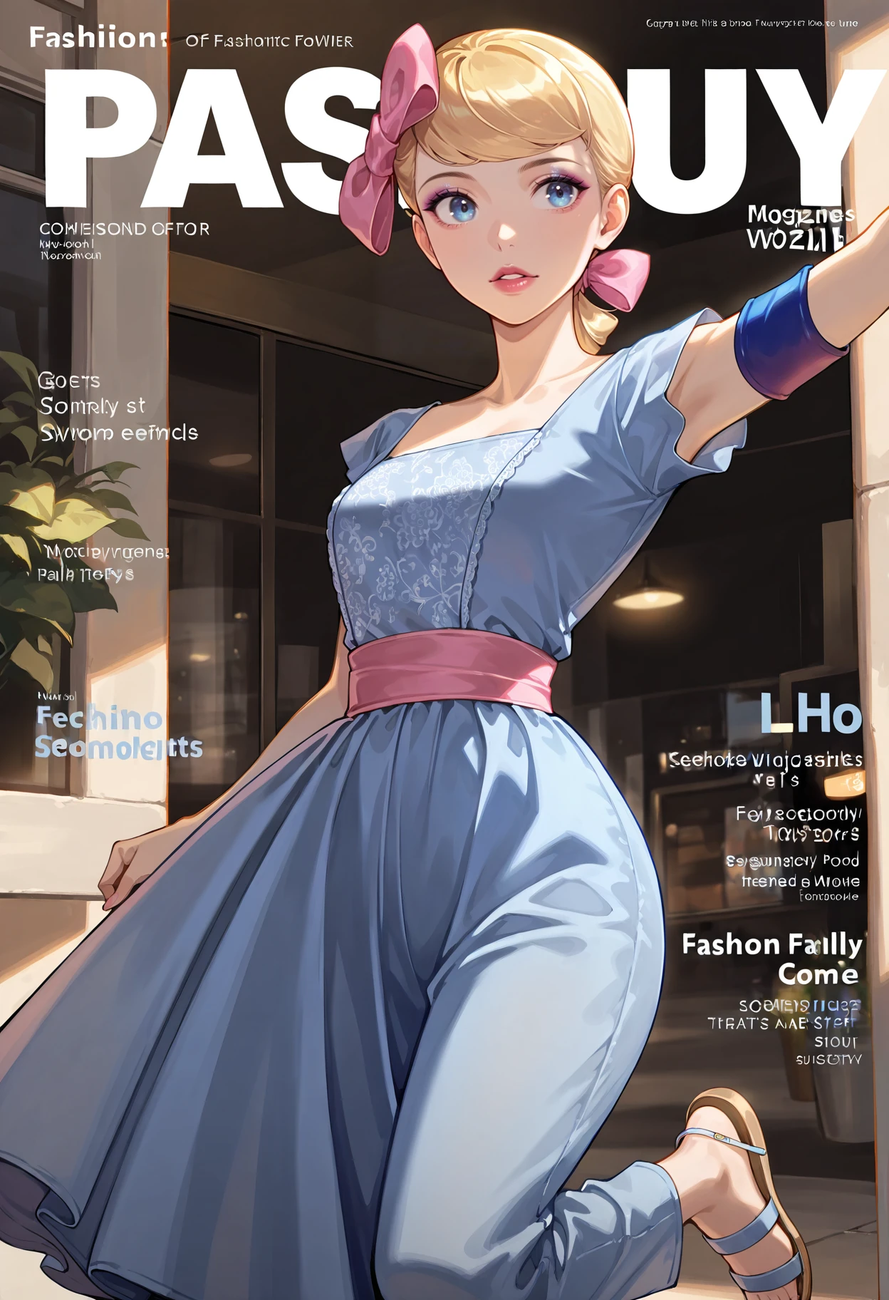 BoP_1,1girl,blue eyes,blonde hair,short hair,long hair,lips,makeup,ponytail