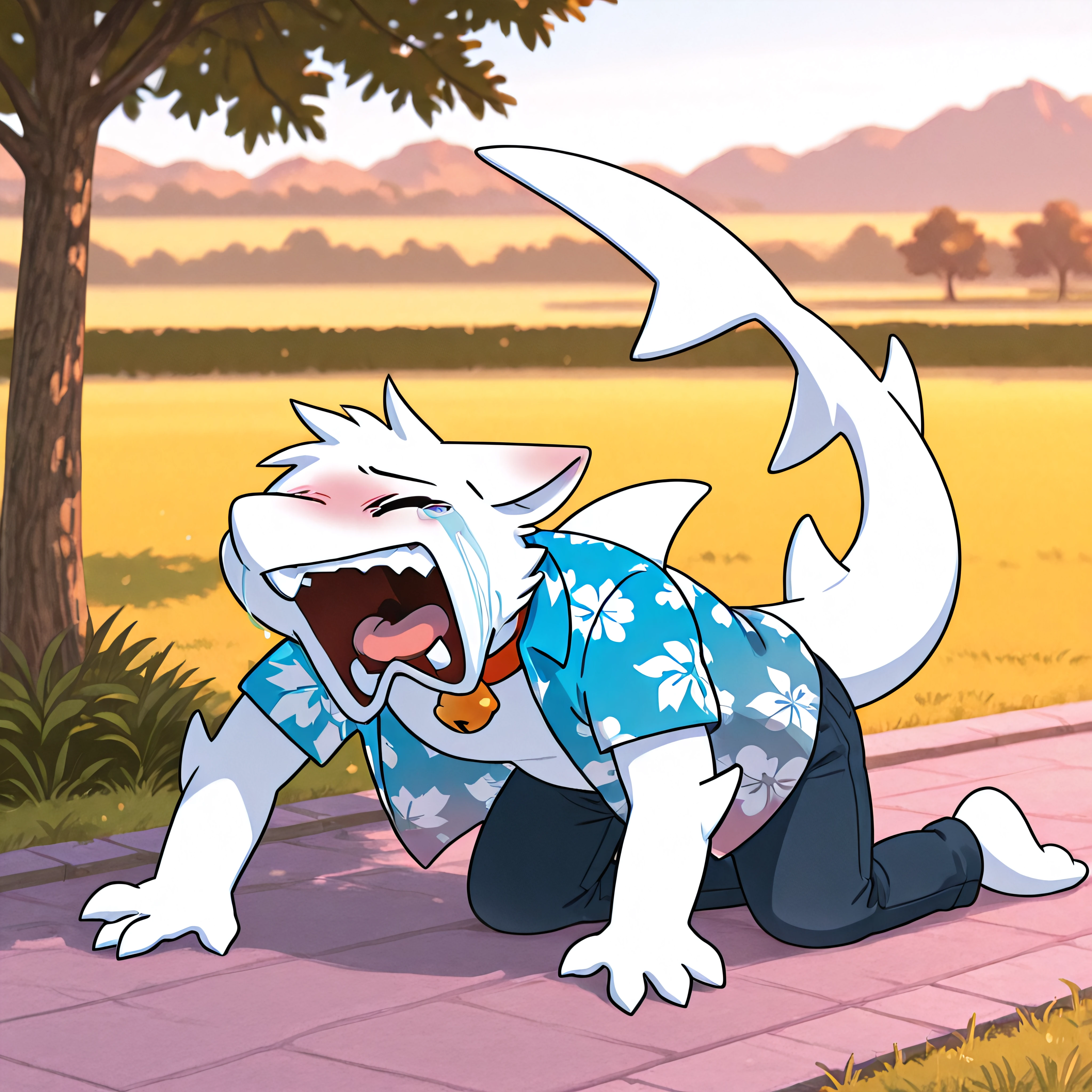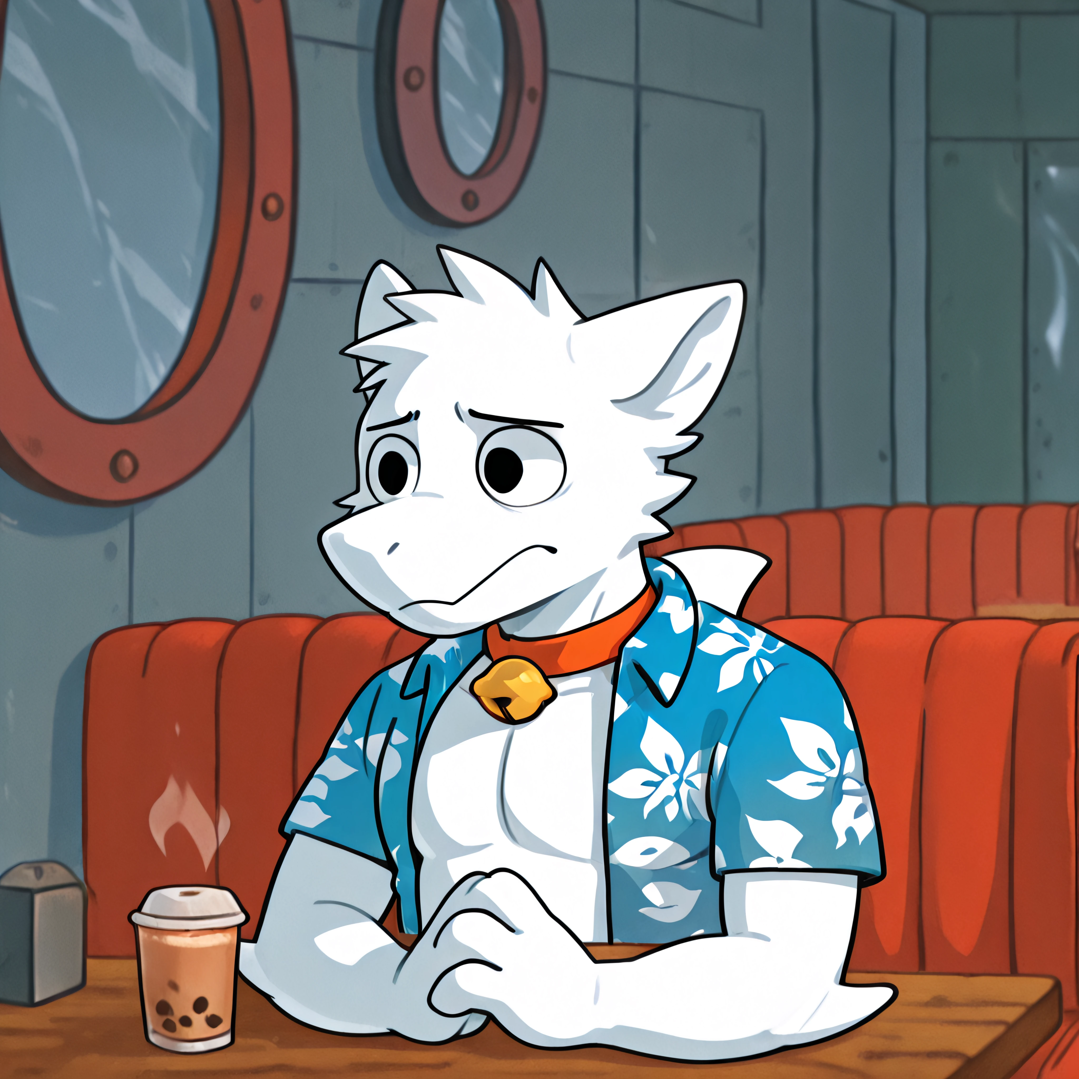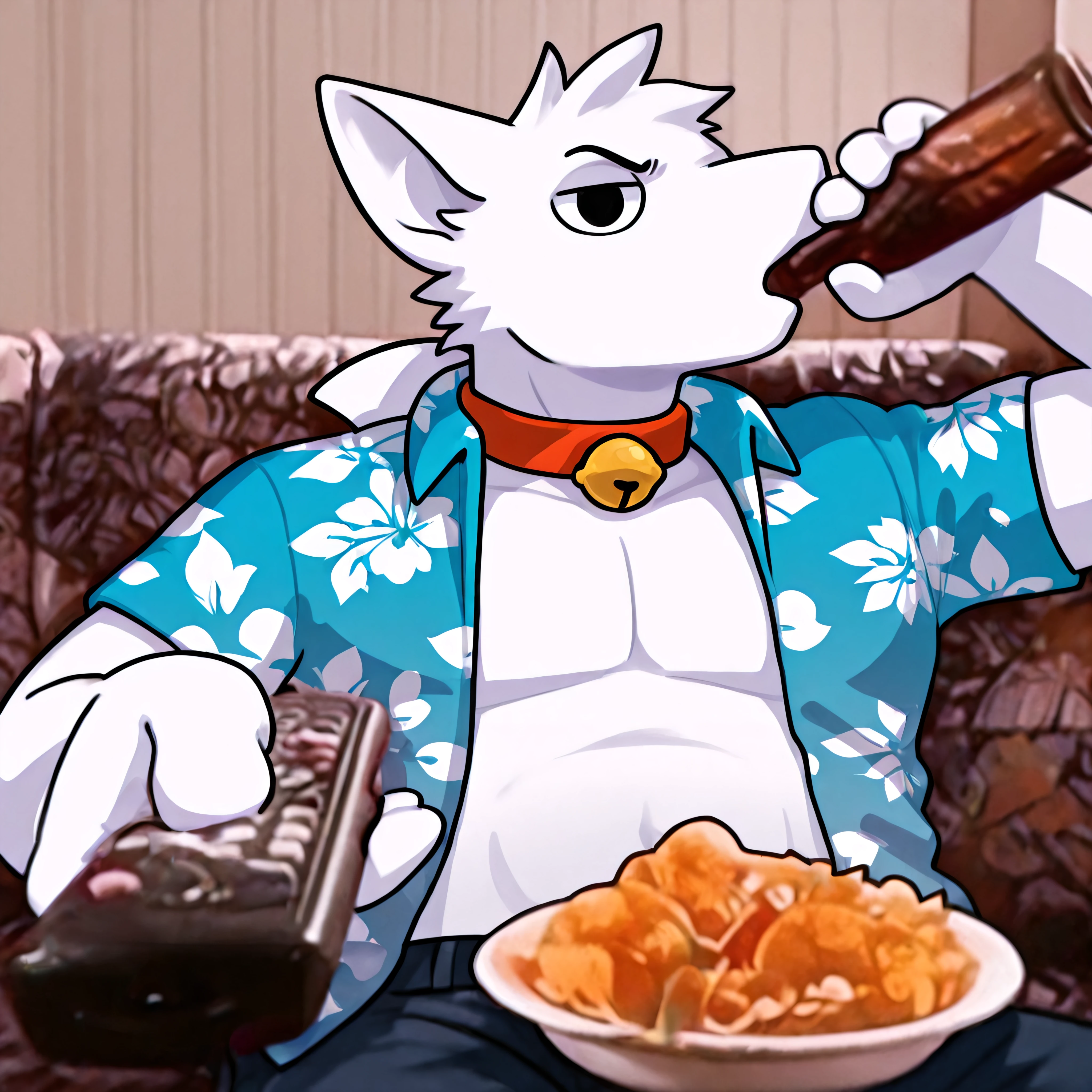 hawaiian shirt, jingle bell, neck bell, furry, furry male, open clothes, collared shirt