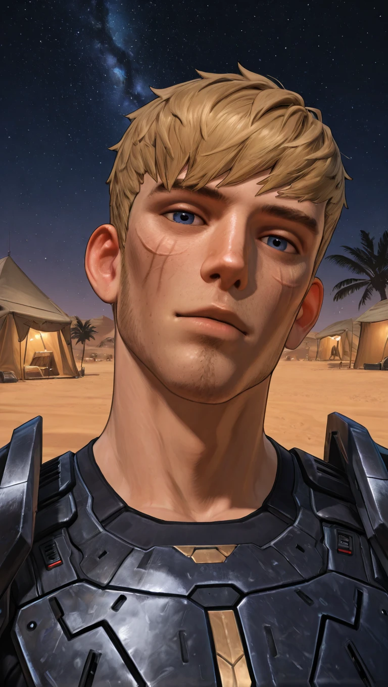 tcadera, 1boy, very short hair, sideburns, goatee, blue eyes, cheek scarsV1 outfit tags are as follows: