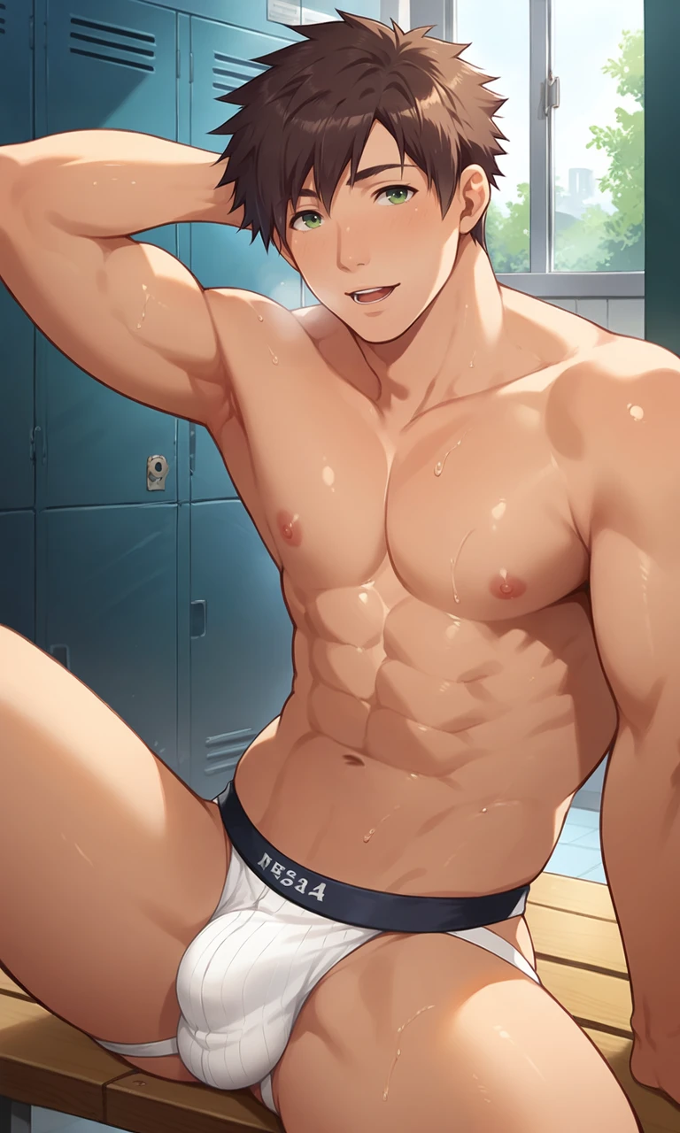 Masaru, brown hair, green eyesFor the baseball uniform: