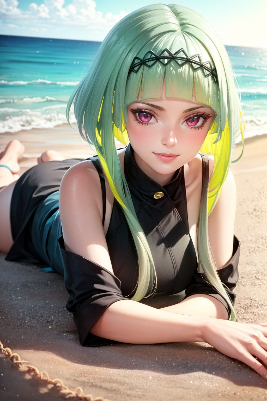 • getting her sidelocks to come out correctly is a bit of gacha(due to the small dataset) using the prompt sidelocks helps increasing intensity helps with backview