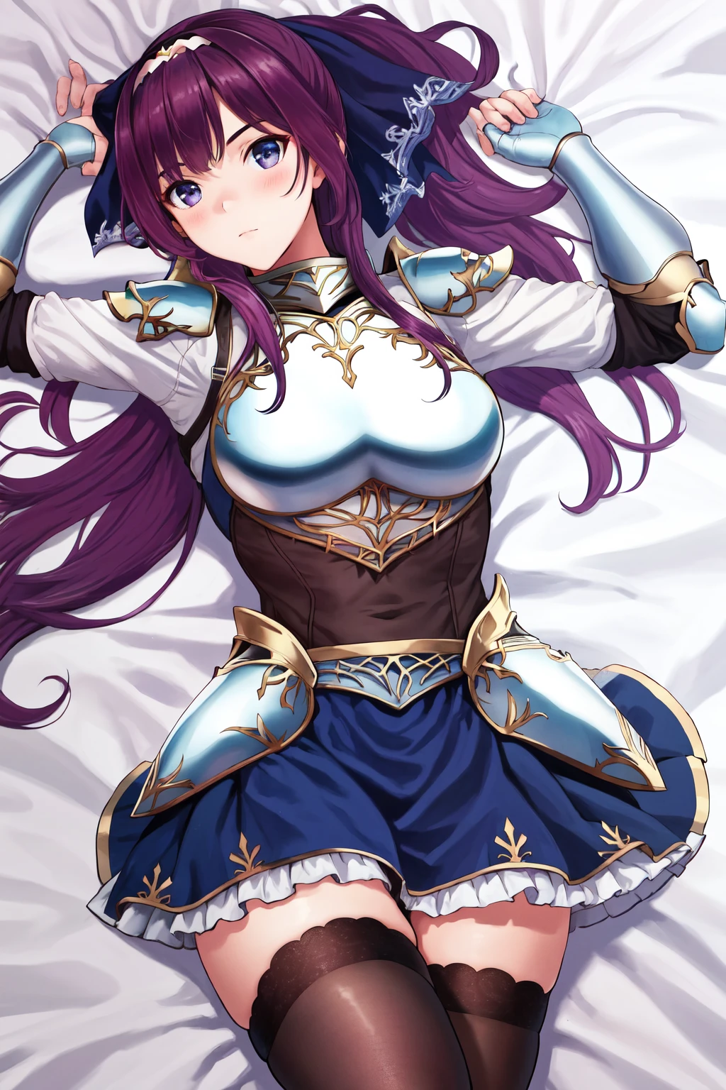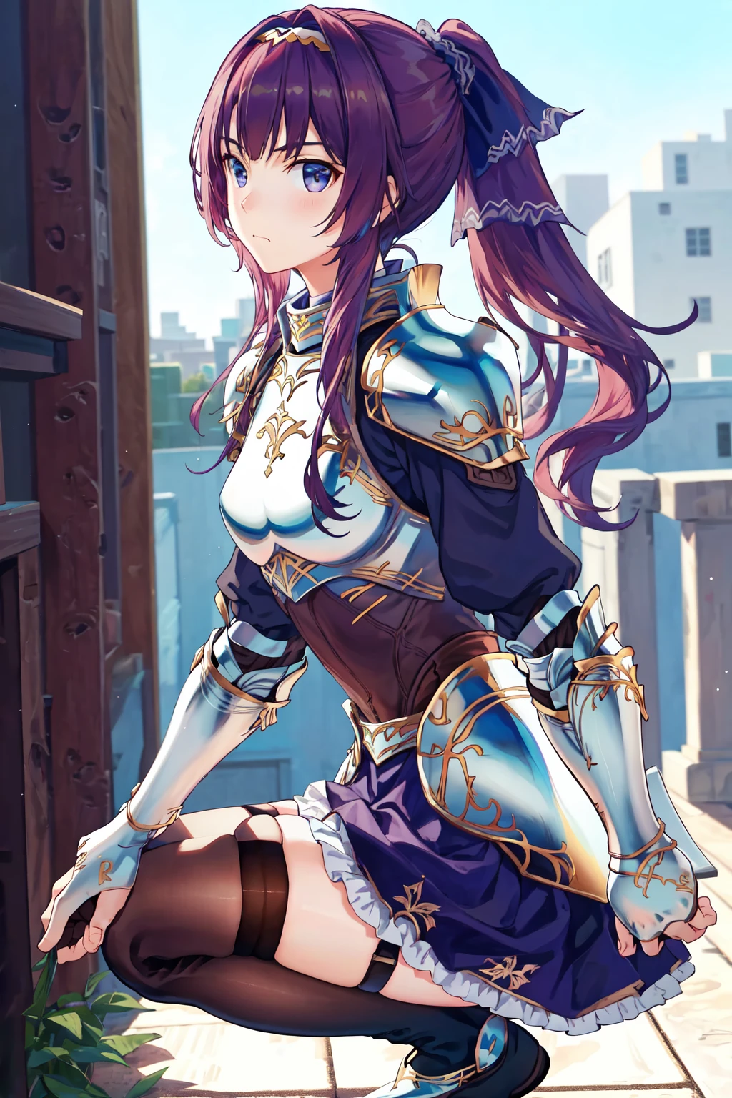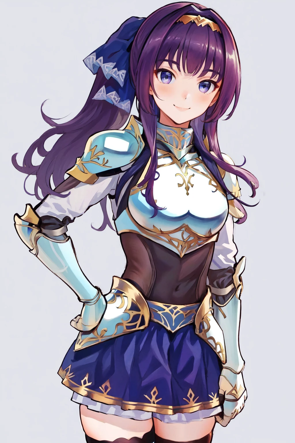 Default outfit: armor frilled skirt blue skirt black thighhighs