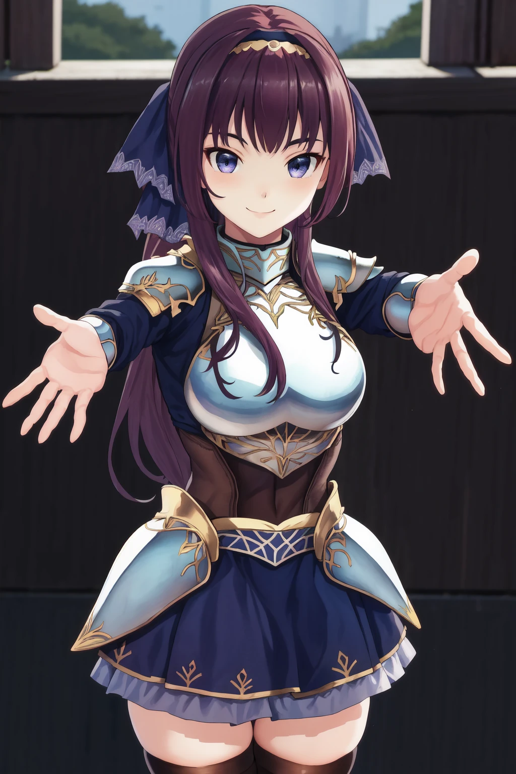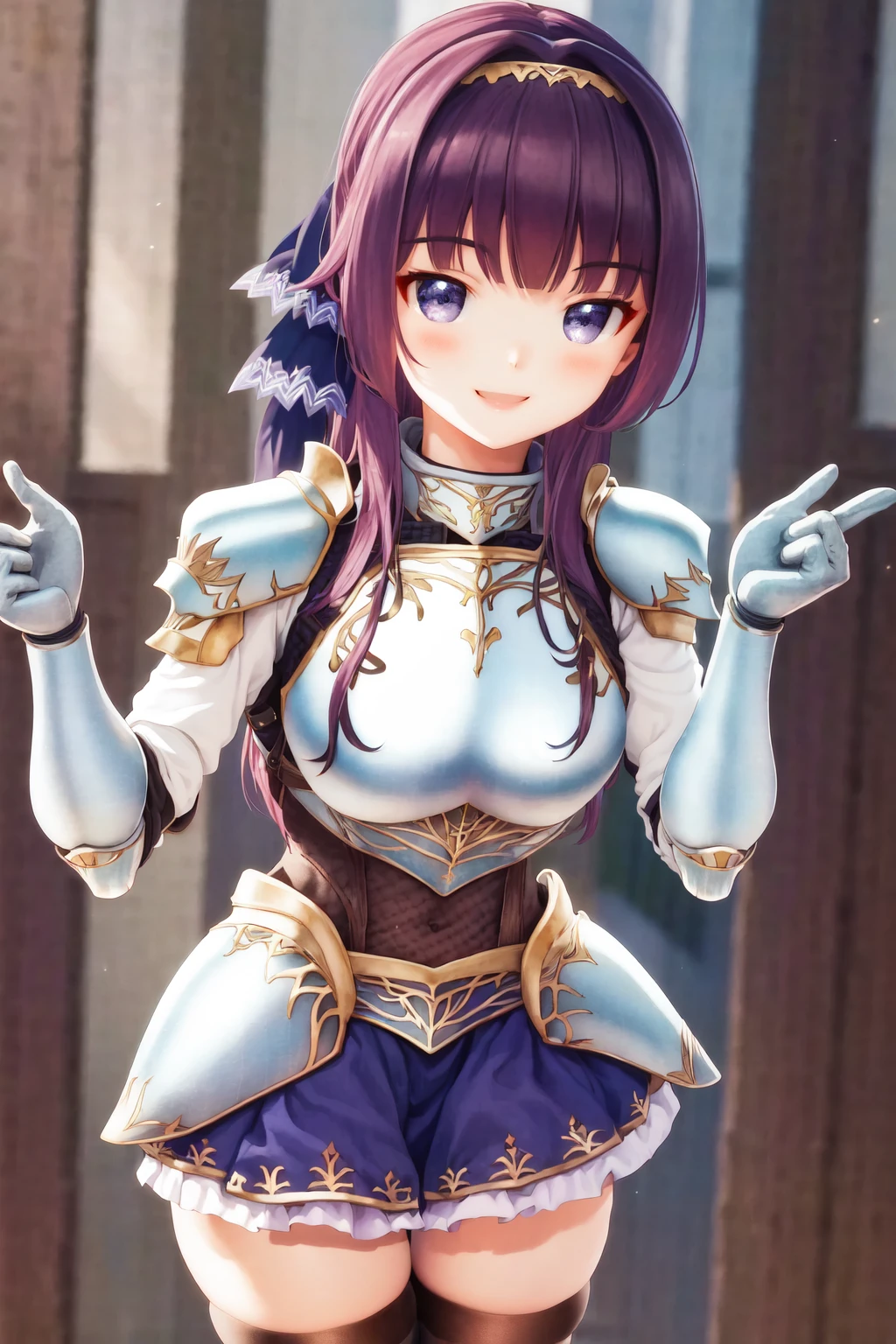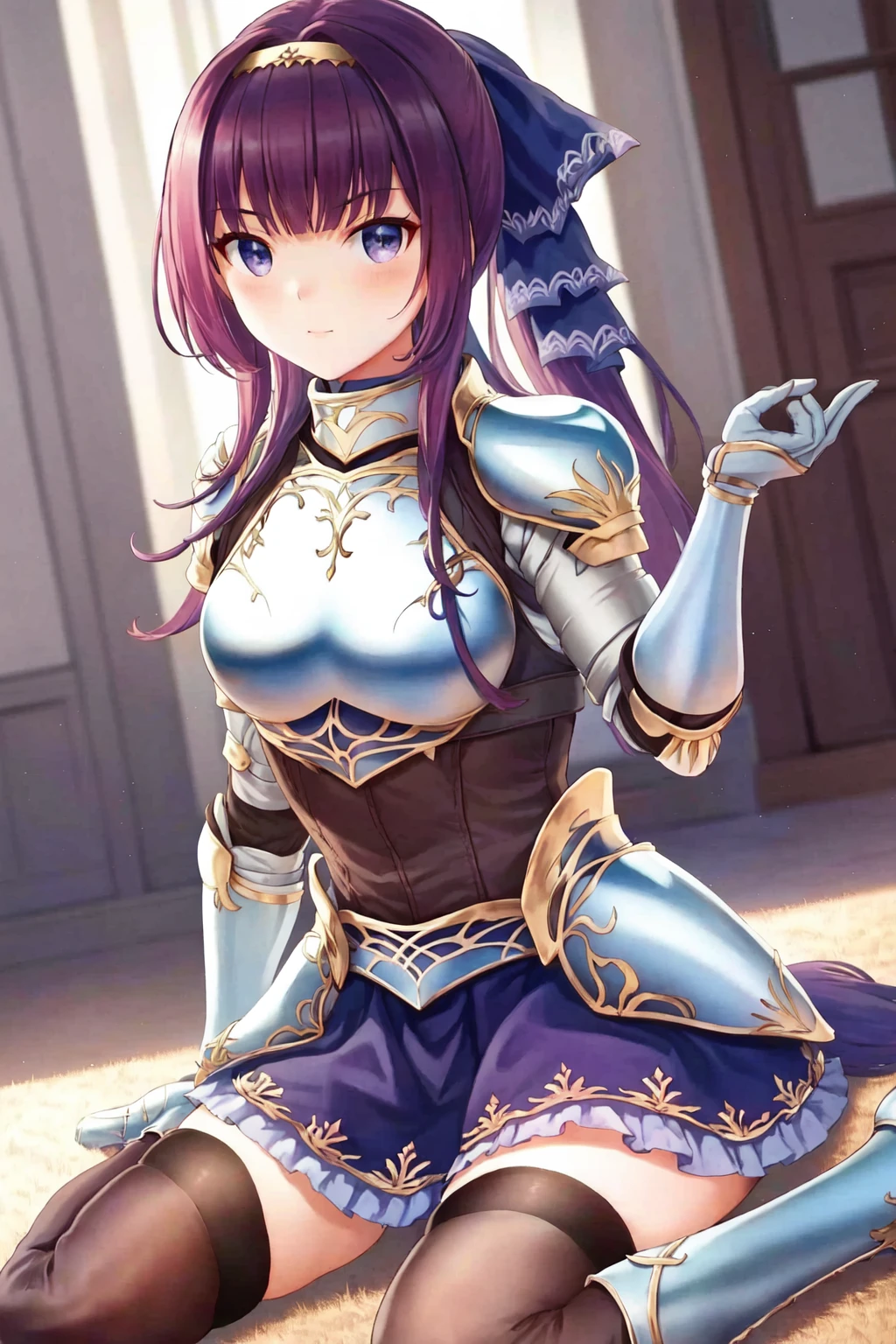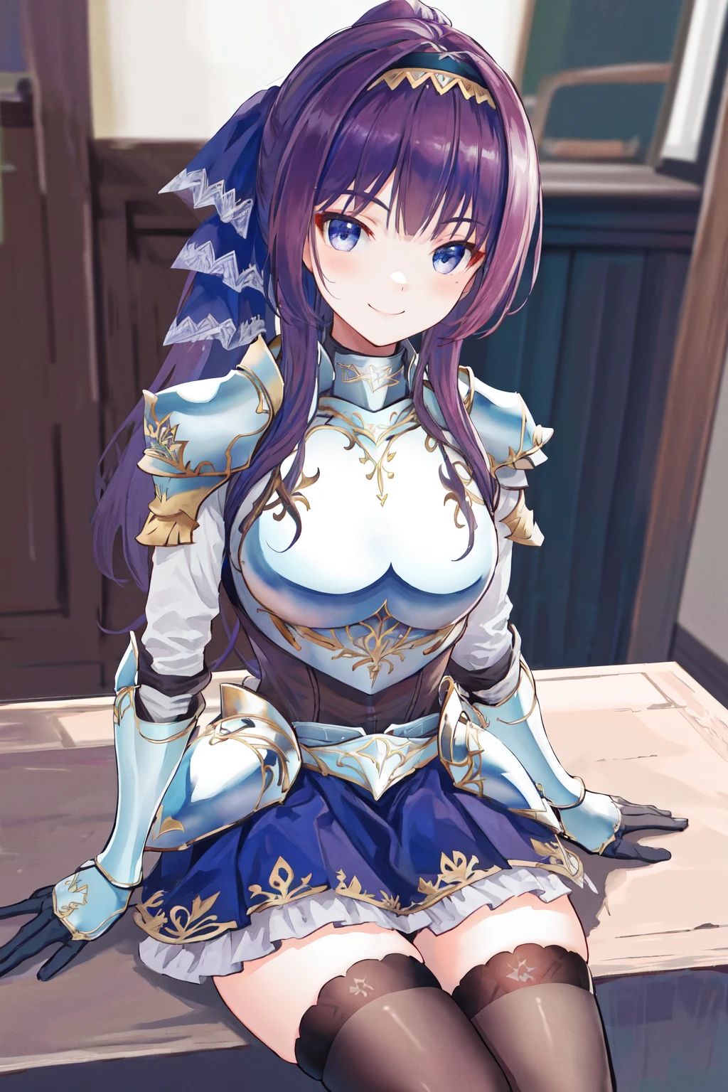 Default outfit: armor frilled skirt blue skirt black thighhighs