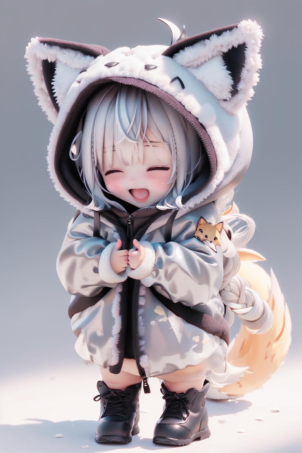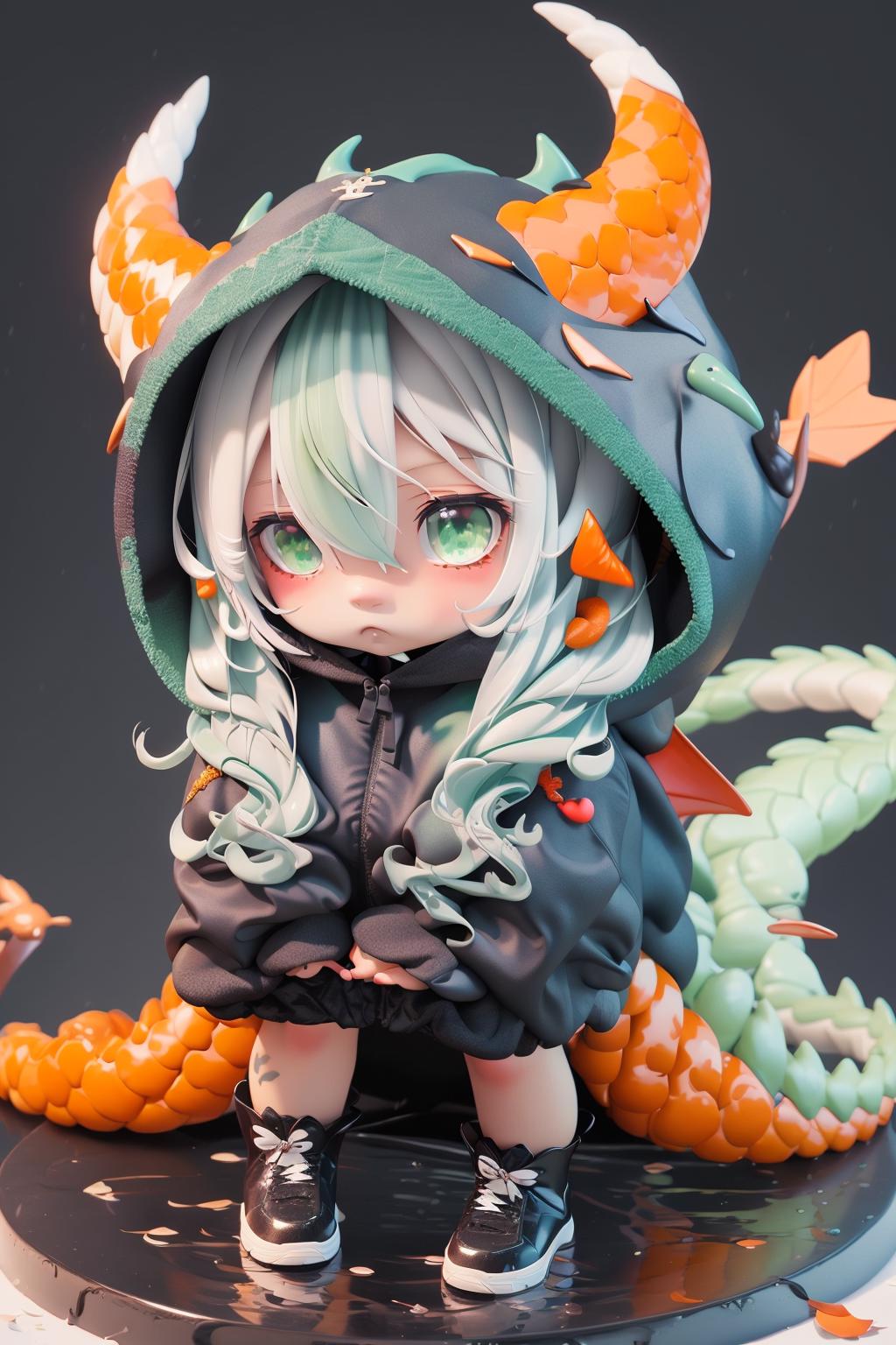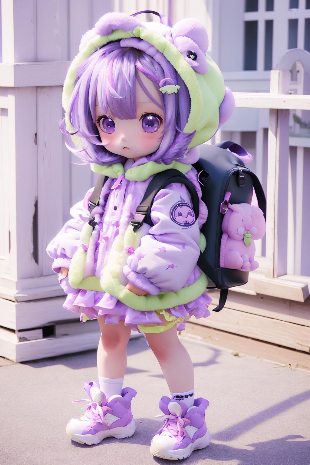 • 可以把生成的形象幼态化,三维渲染风格,饱和度偏高。如果关键词里添加上“chibi”,可以让生成的画面人物更加的幼态。