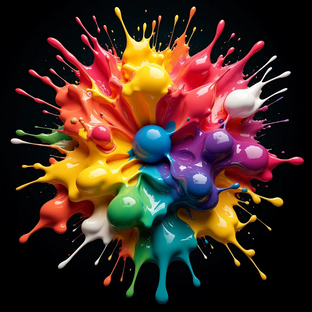 Capturing the essence of glossy explosions, where vibrant colors burst forth in dynamic and eye-catching displays.