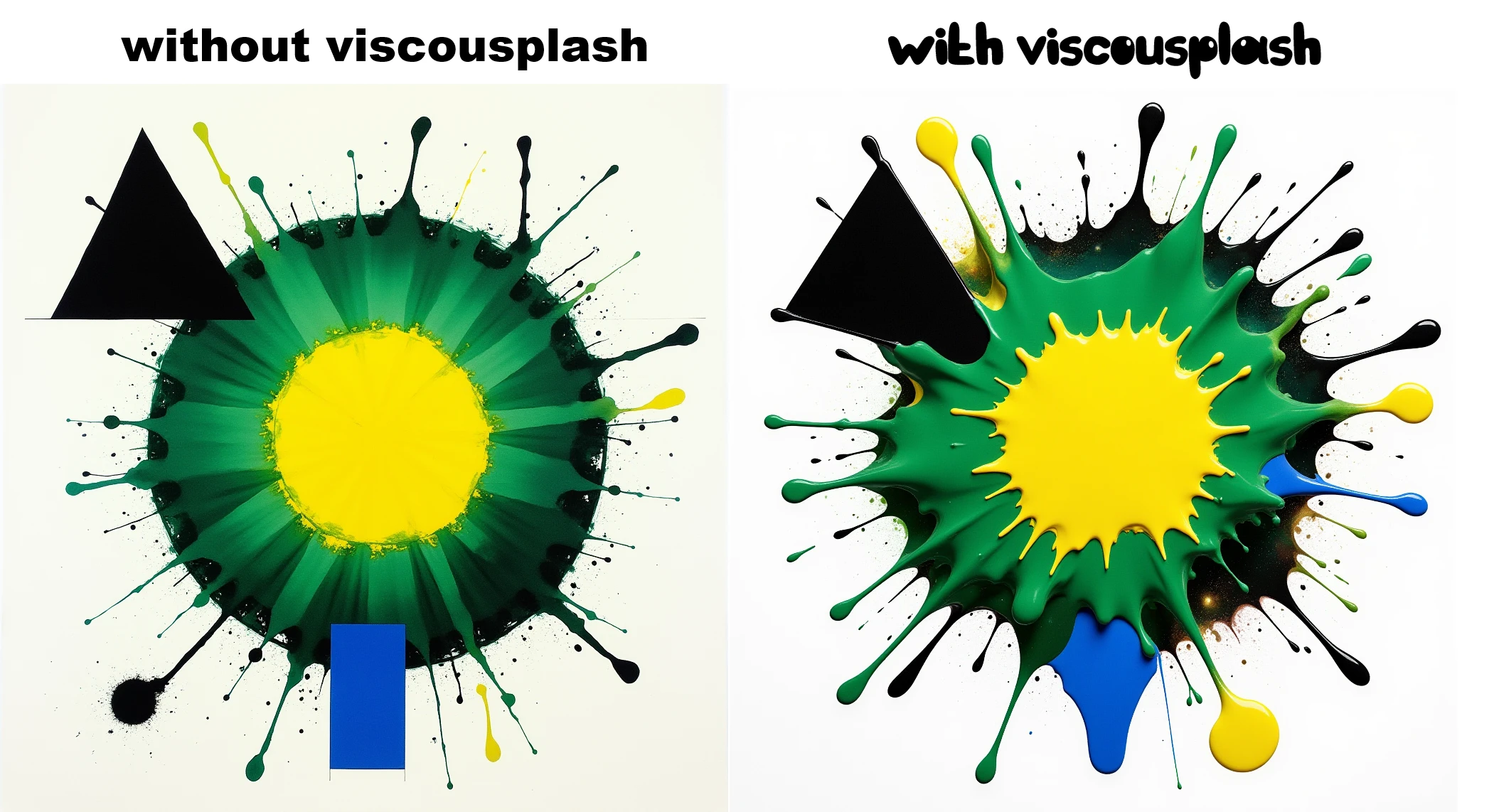 viscousplash is designed to create visually stunning images featuring dramatic color splashes and splatters, reminiscent of thick fluid paint in motion.