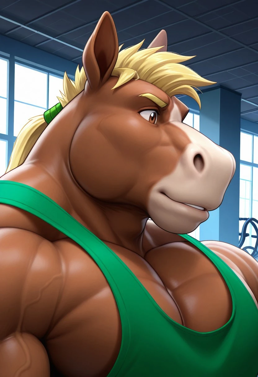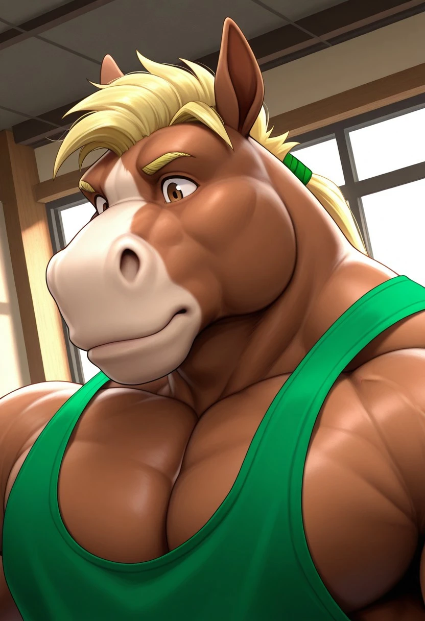 Reinforcement Prompts: "furry, horse, tail, blonde hair, brown eyes, muscular, manly, bara, large pectorals"