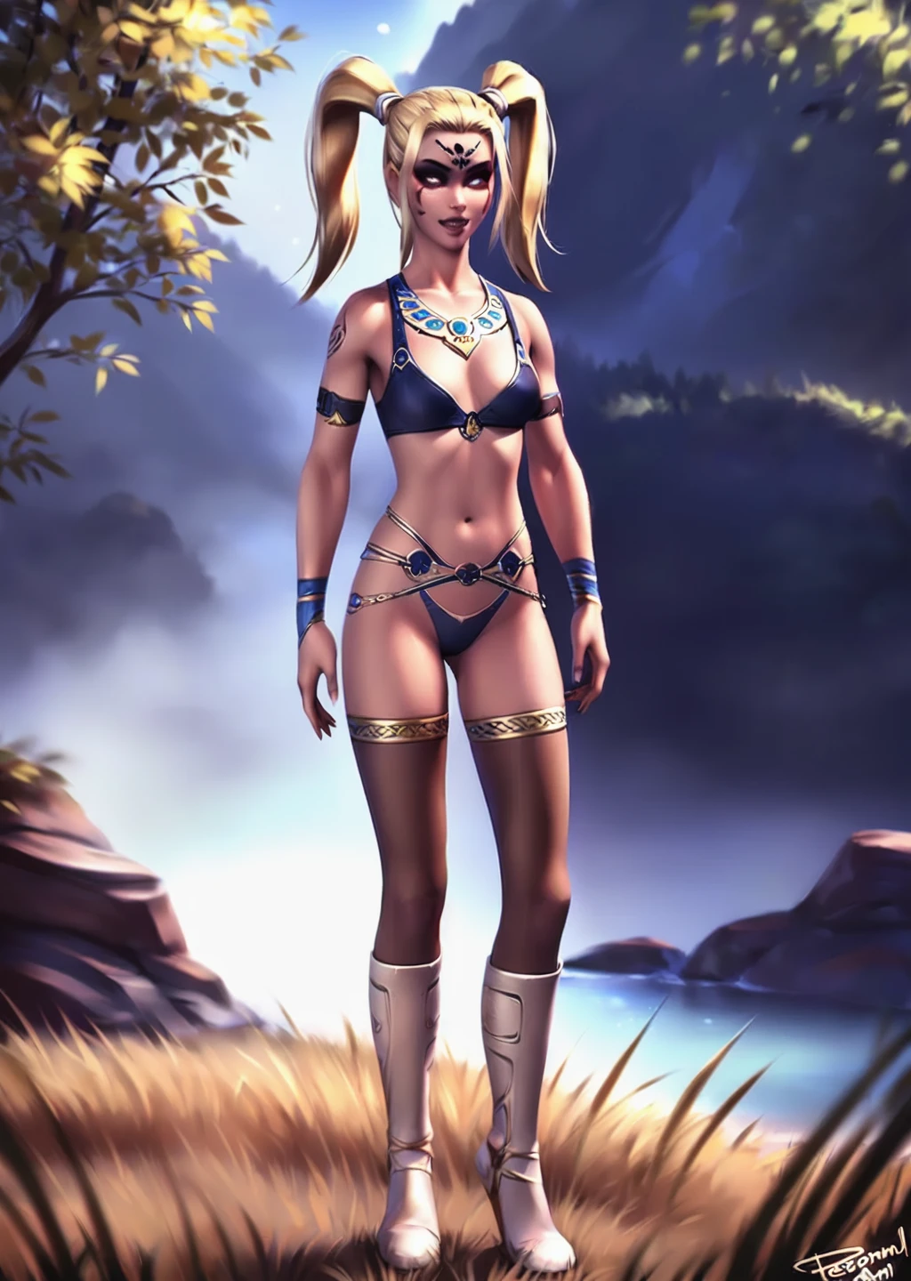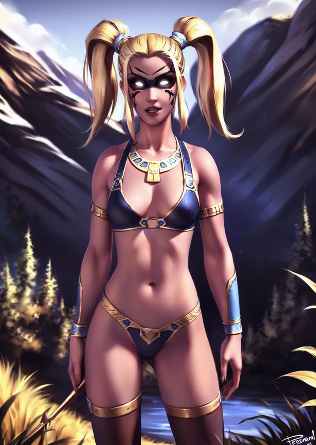 Reinforcement Tags: human,empty white eyes,glowing eyes,blonde hair,twintails,bra,panties,brown legwear
