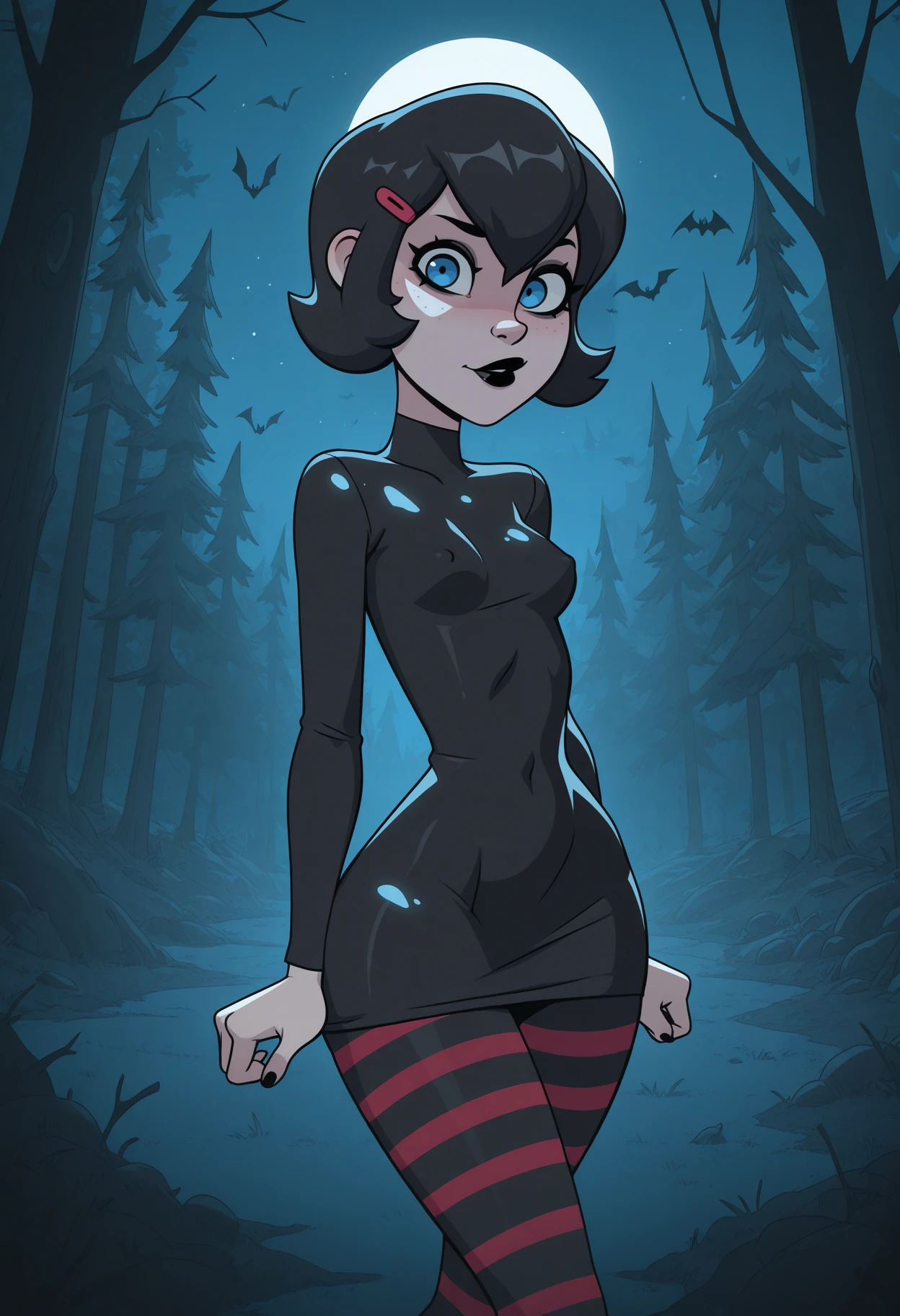 A Lora of Mavis Dracula-Loughran, from Camp Pinewood visual novel created by VaultMan and Hotel Transylvania a series of animated films produced by Sony Pictures Animation and distributed by Columbia Pictures.