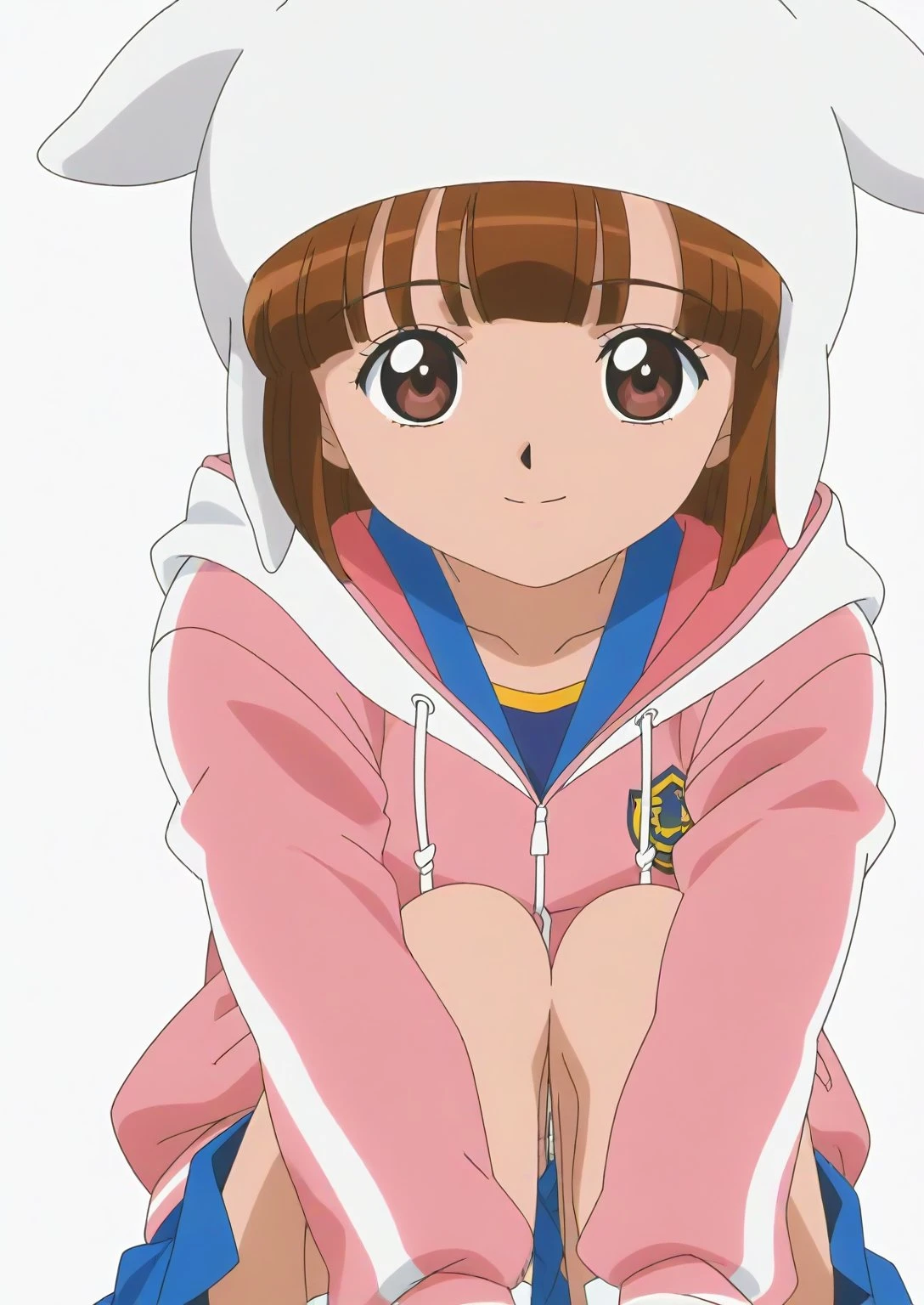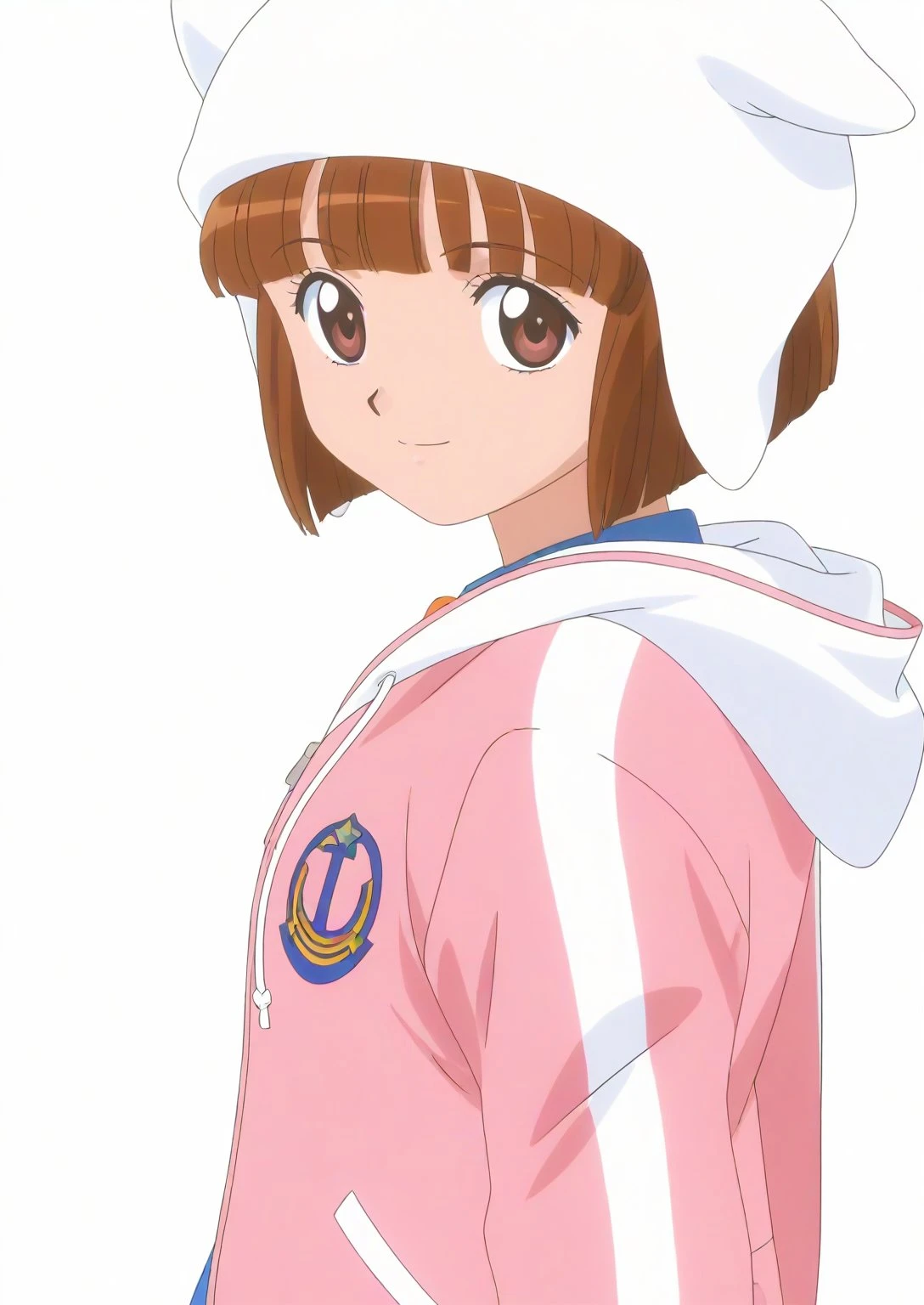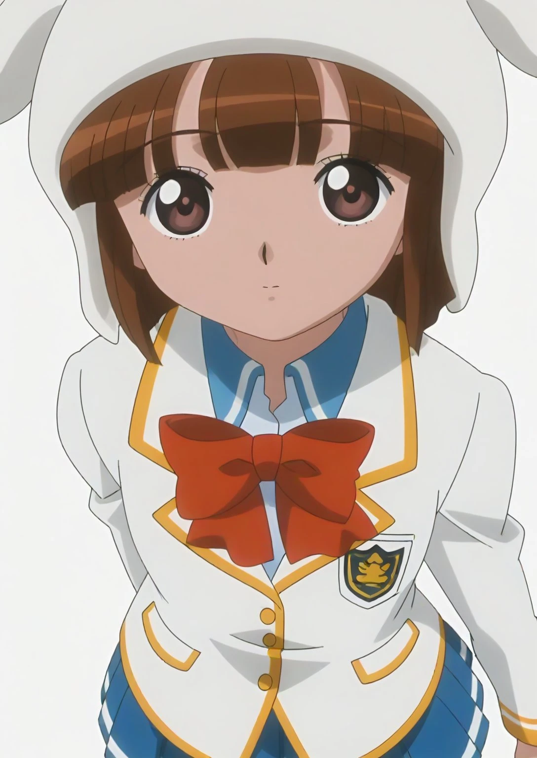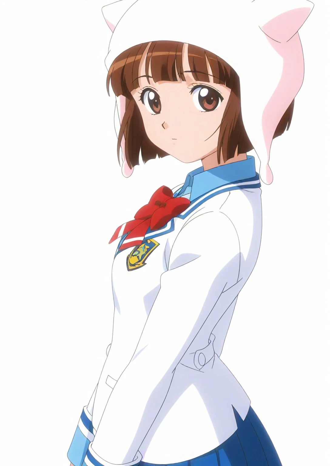 Appearance: sdxl-ai-hoshimiya, brown hair, white hat, short hair, brown eyes, bob cut, animal hat, blunt bangs, fake animal ears
