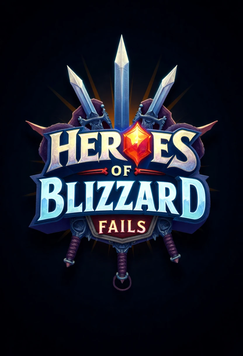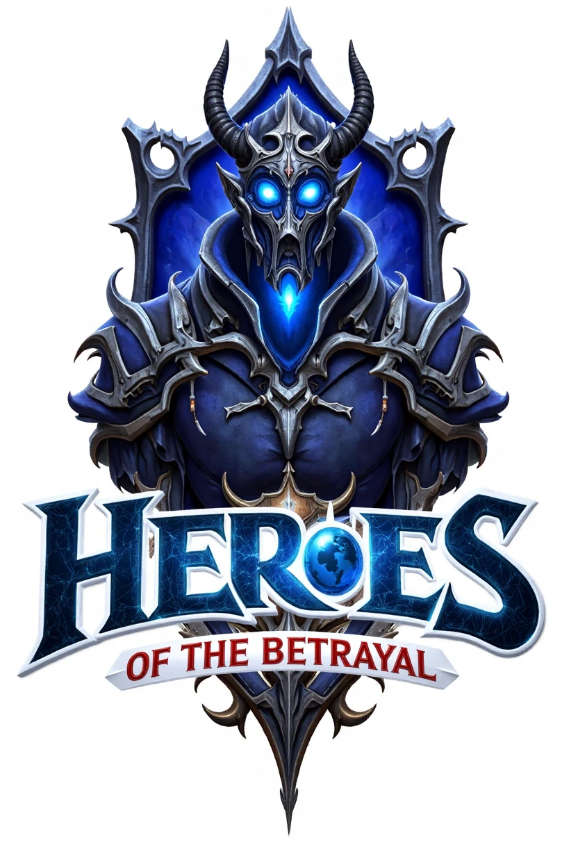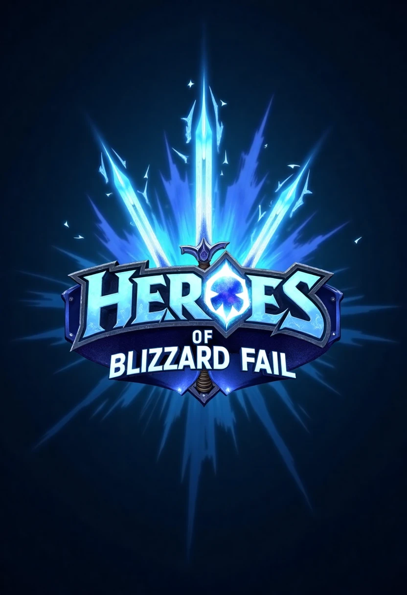 the logo for the game "Heroes ****" is prominently displayed in the center of the image. The logo is a cube-shaped object with a shield in the middle of it. The text, "Heroes ****" is written in a bold, neon blue font. fantasy.
