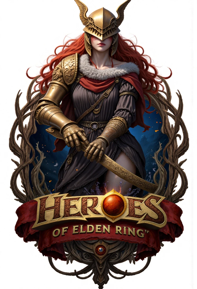 text "Heroes of the ****" logo, best quality. logo of woman in armor.