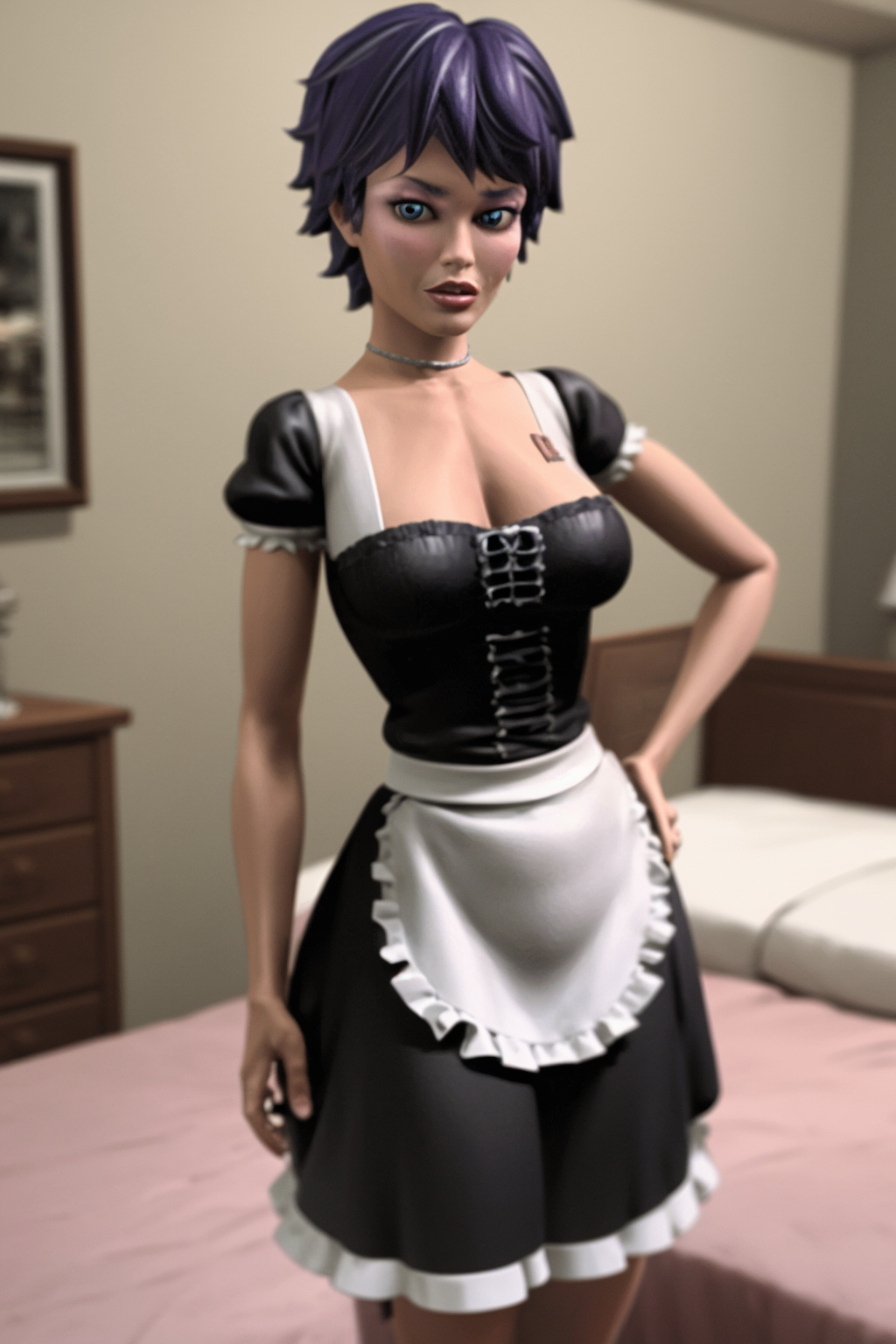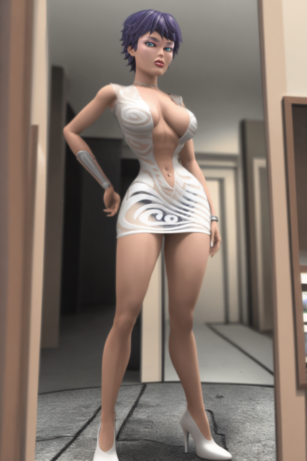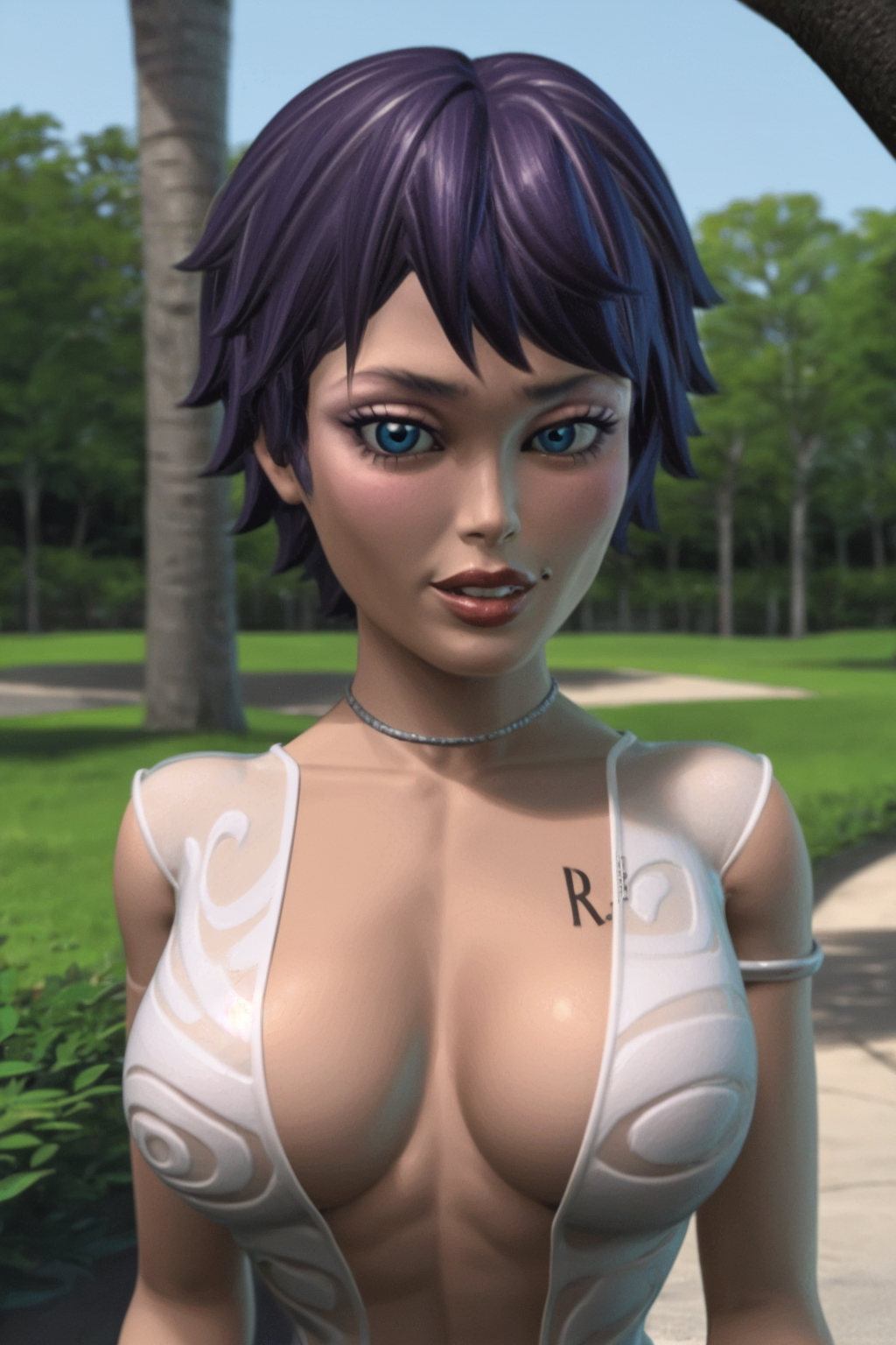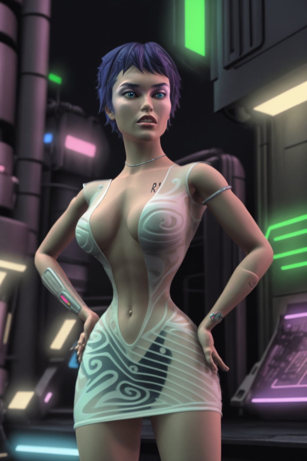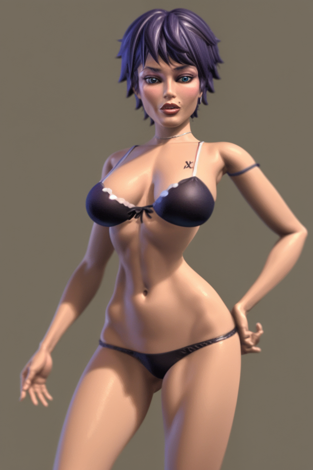 Basic prompts : 1girl, purple hair, short hair, blue eyes, tattoo