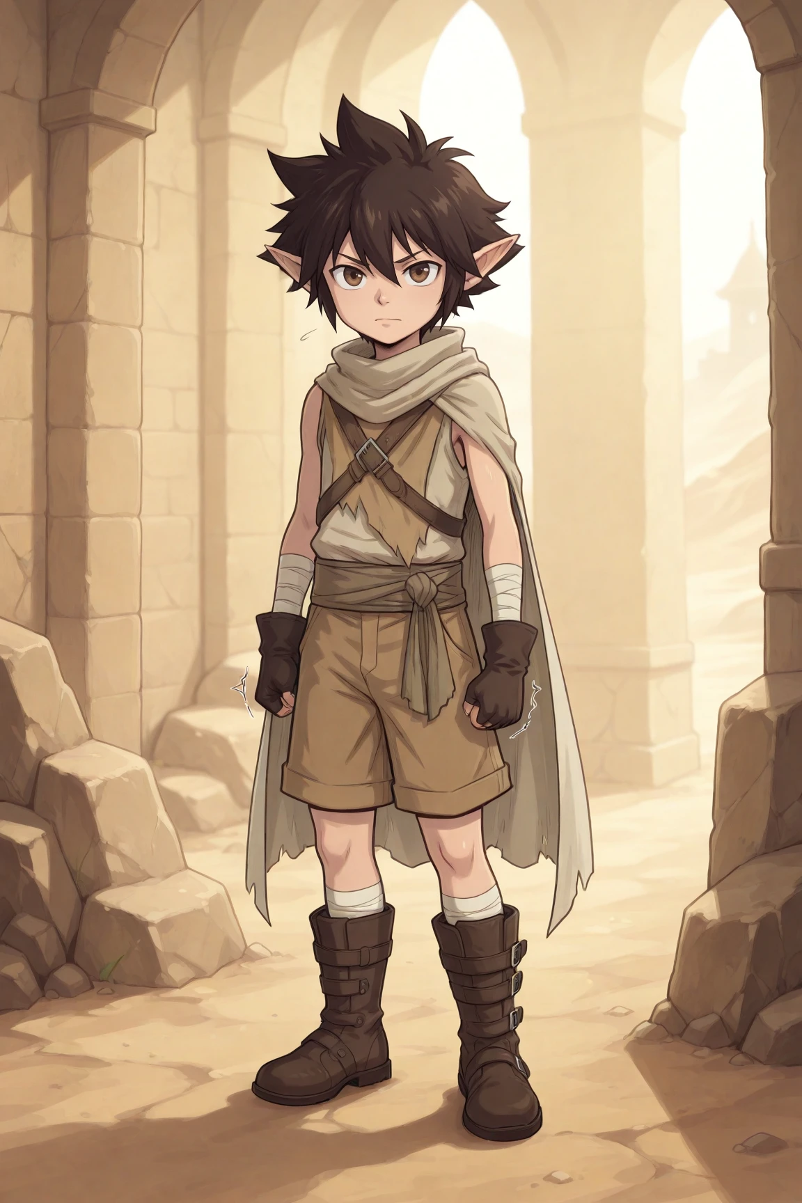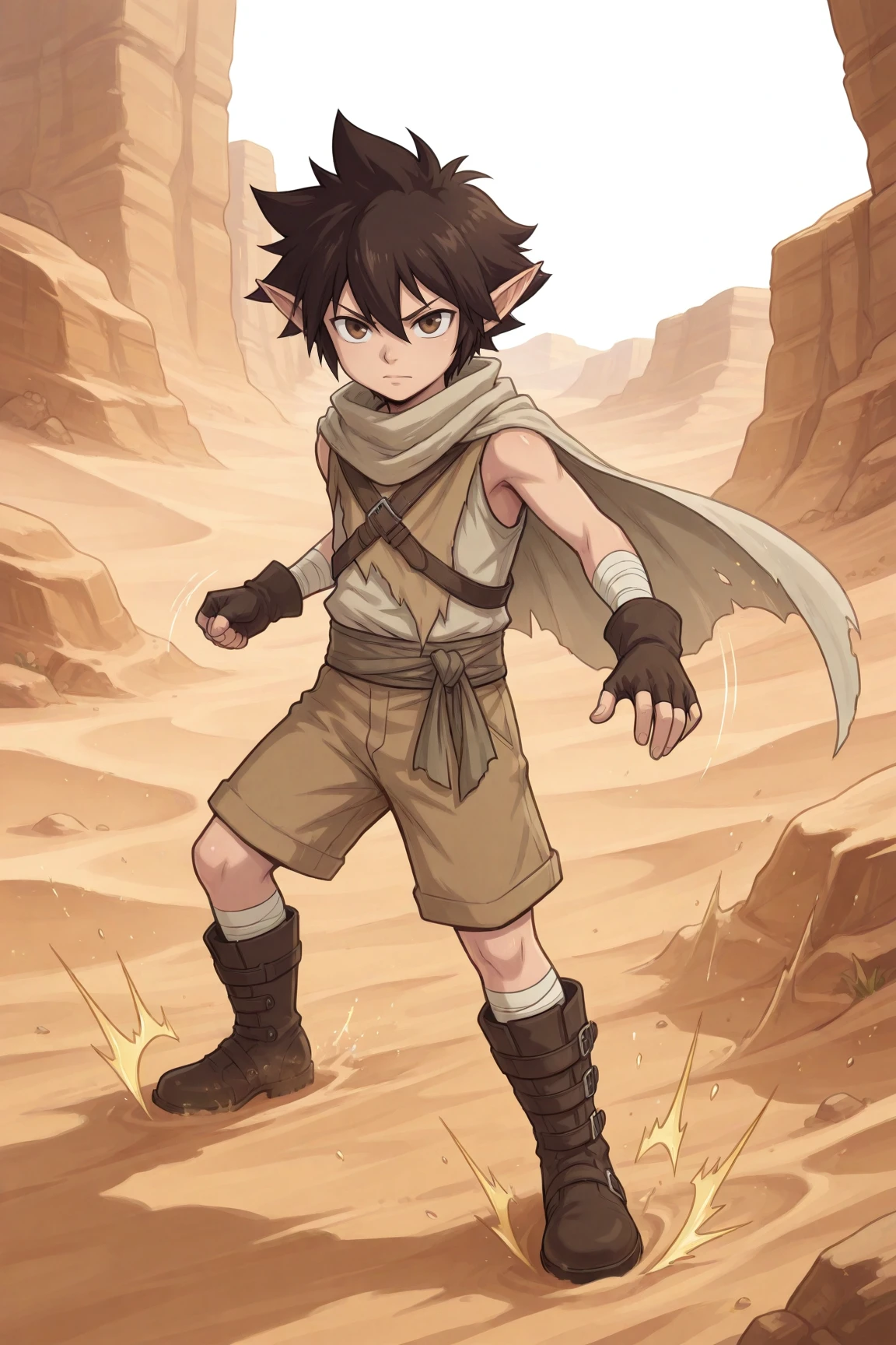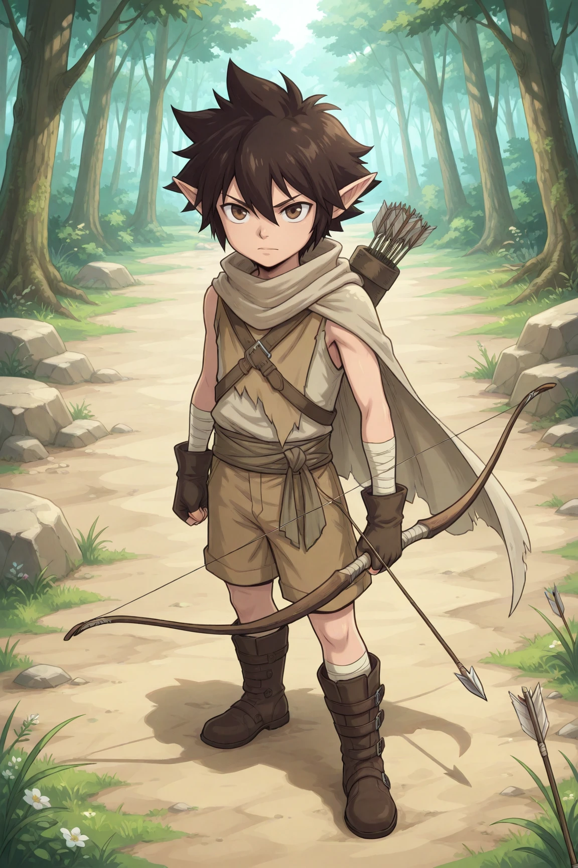 aya, brown hair, brown eyes, pointy ears,