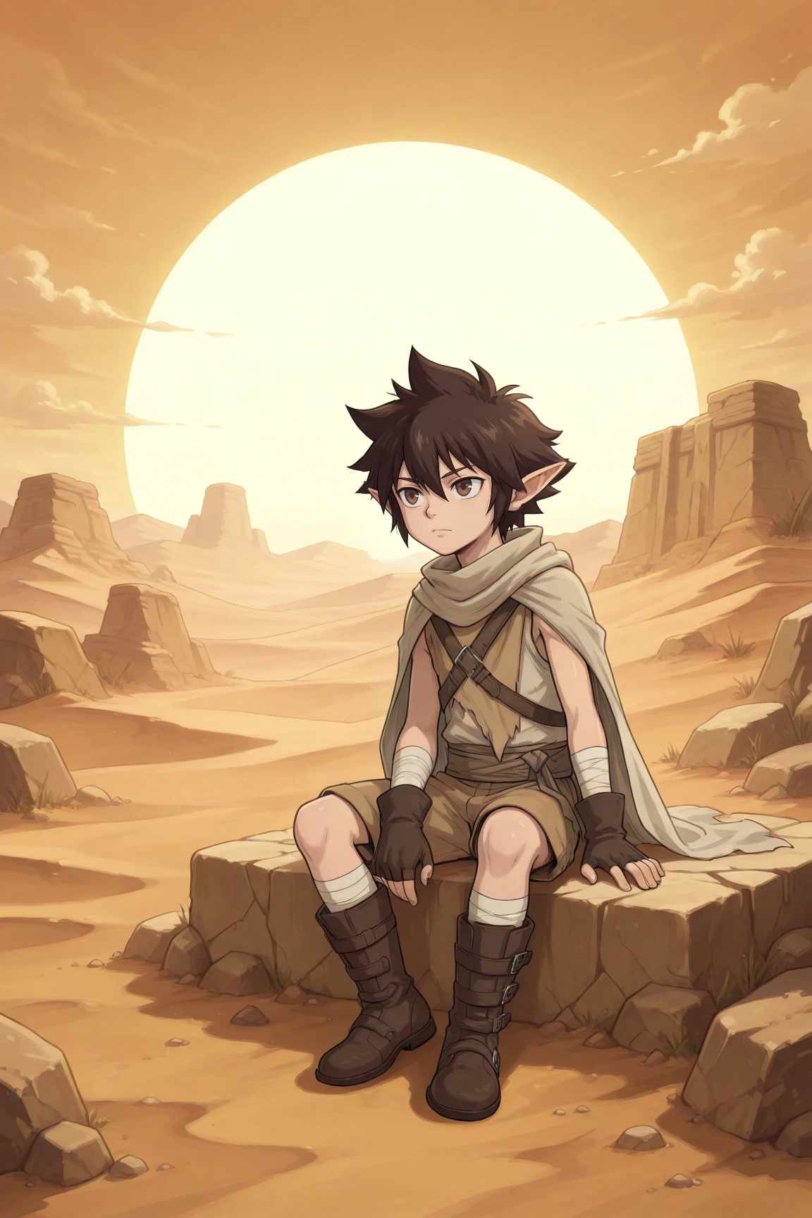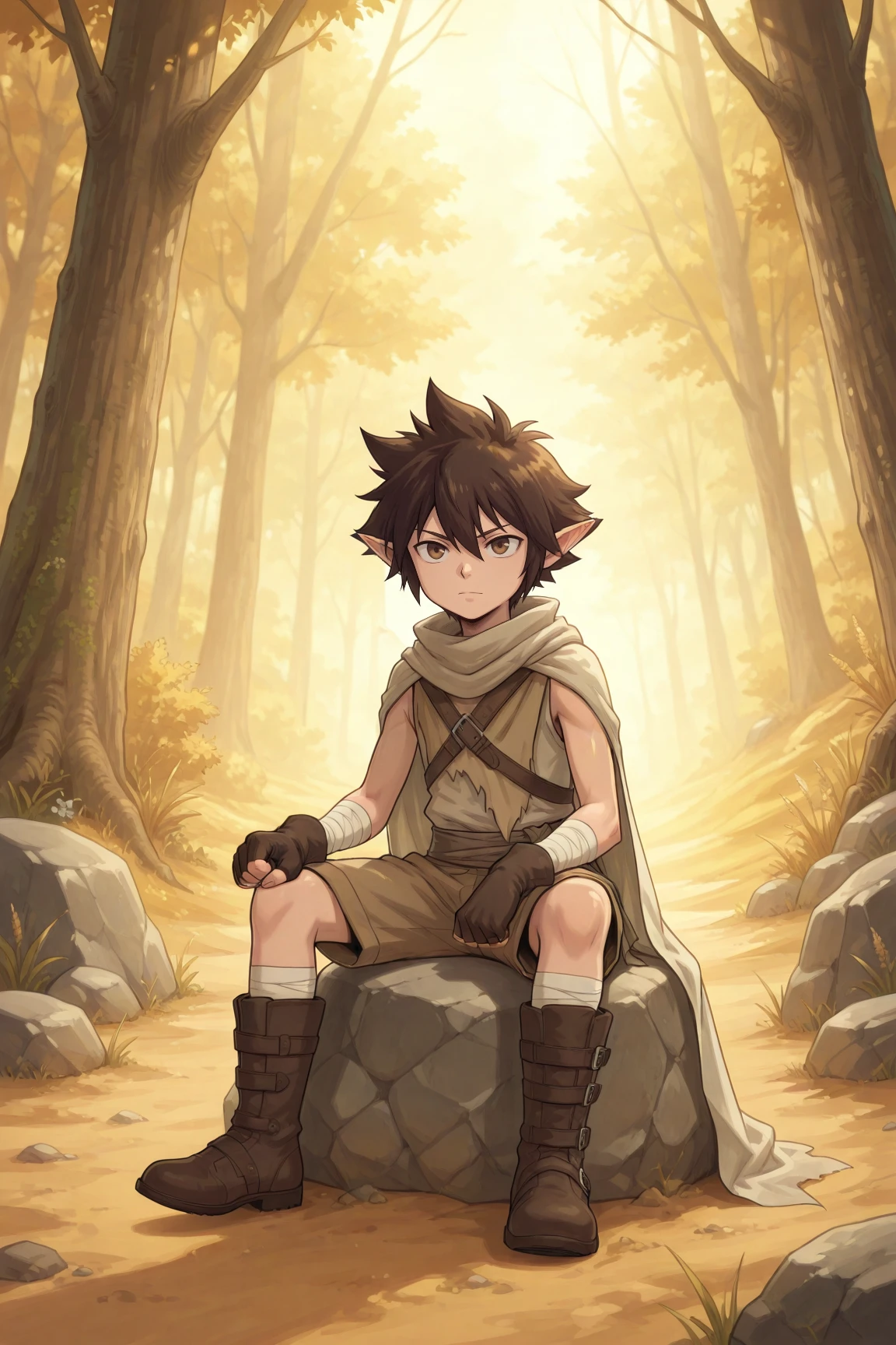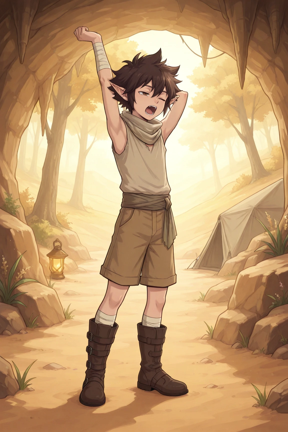 aya, brown hair, brown eyes, pointy ears,