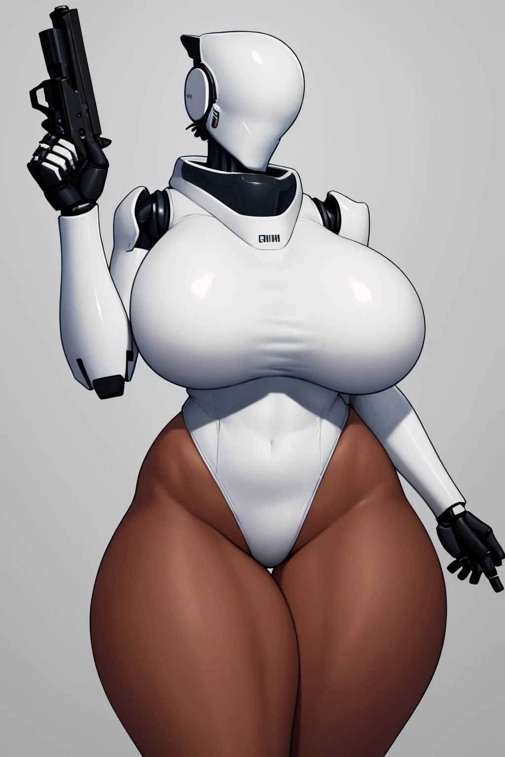 haydee, white leotard, huge breasts, thick thighs, curvy, robot joints