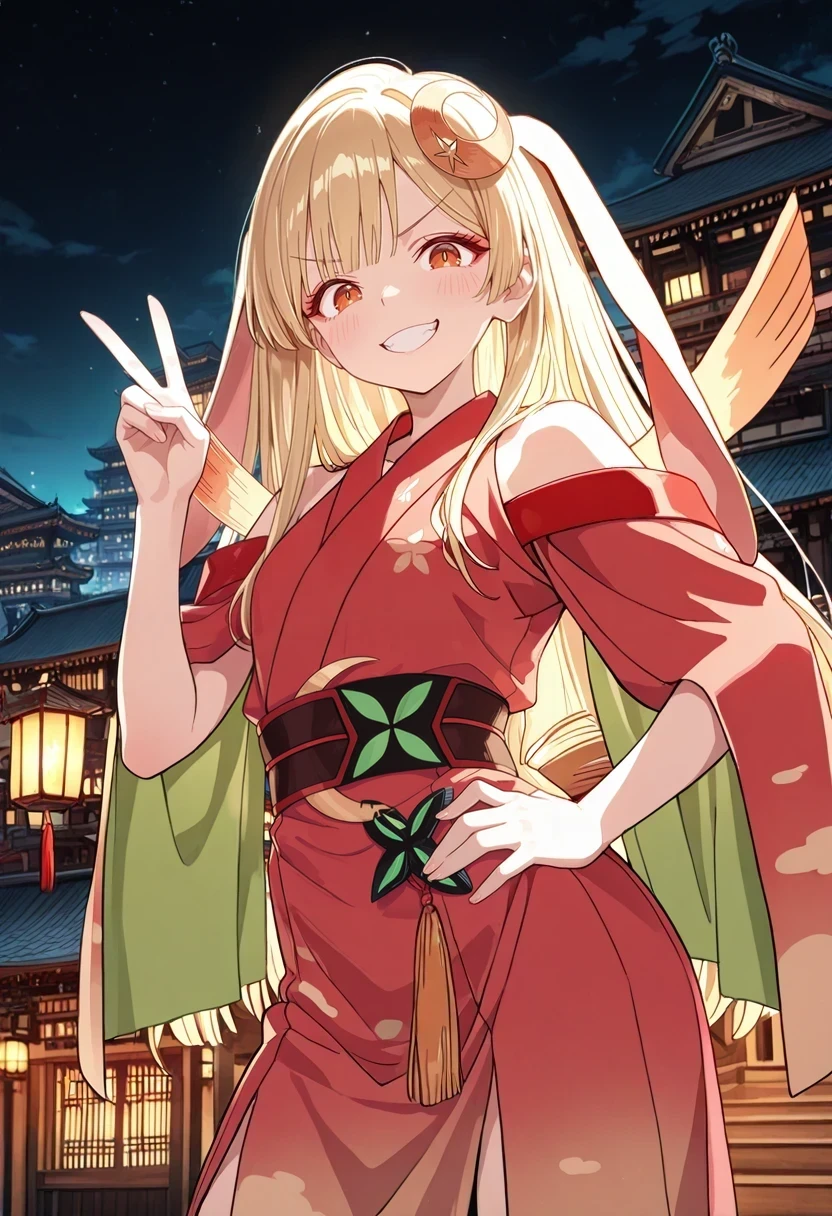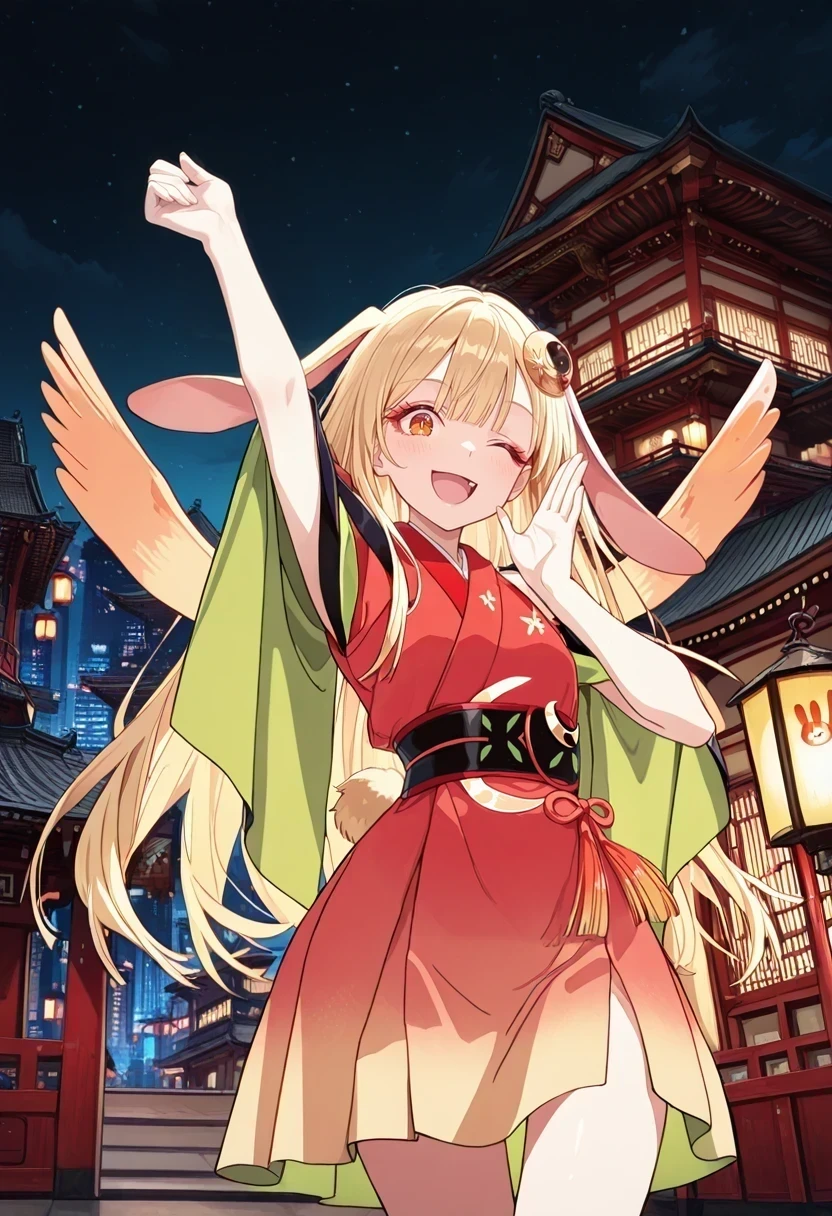 blonde hair,orange eyes,rabbit ears,wings,brown hair form: