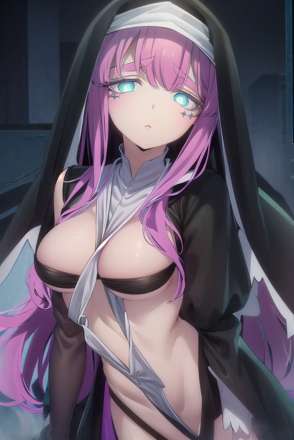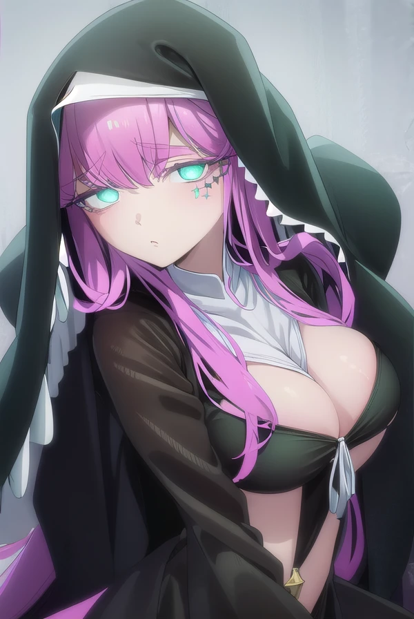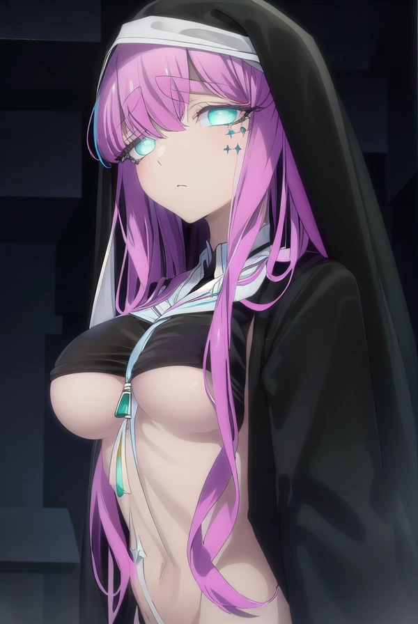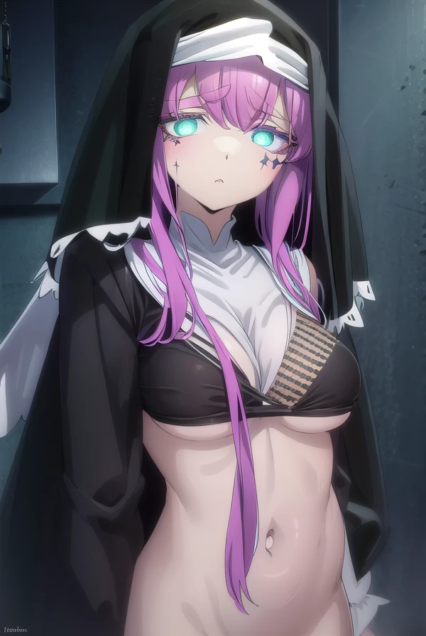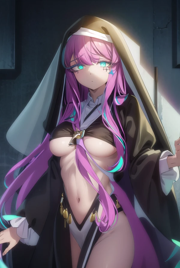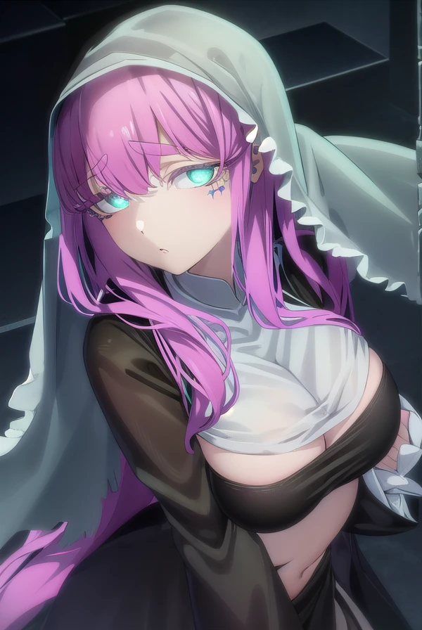 long sleeves, dress, black dress, underboob, veil, nun, habit,